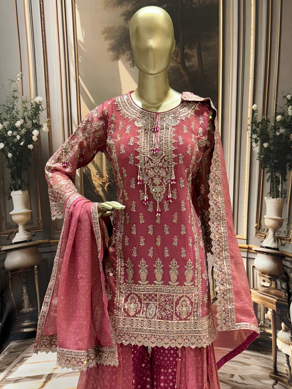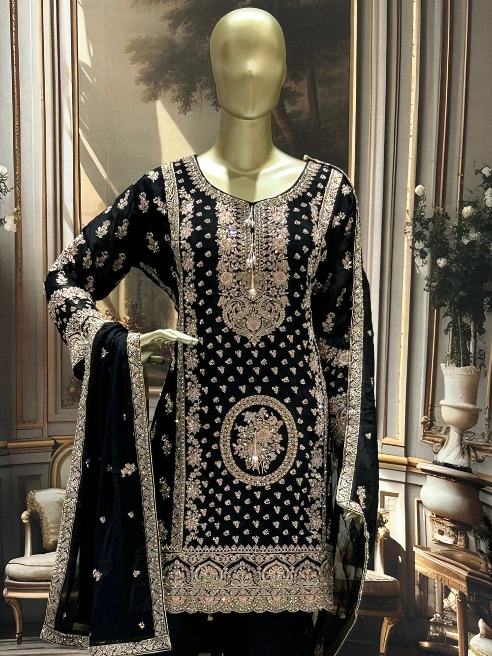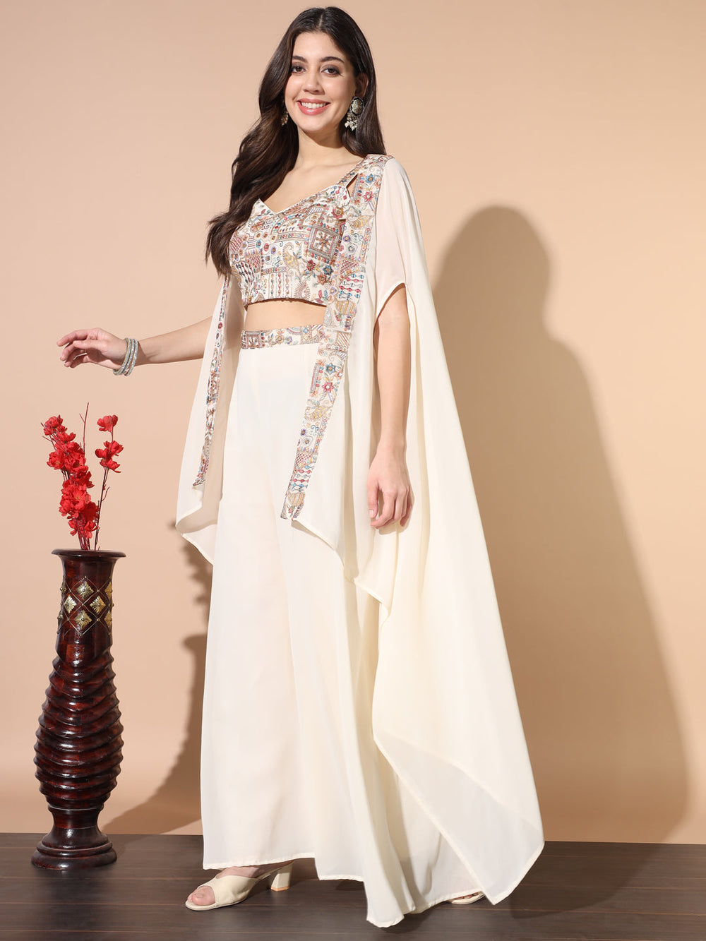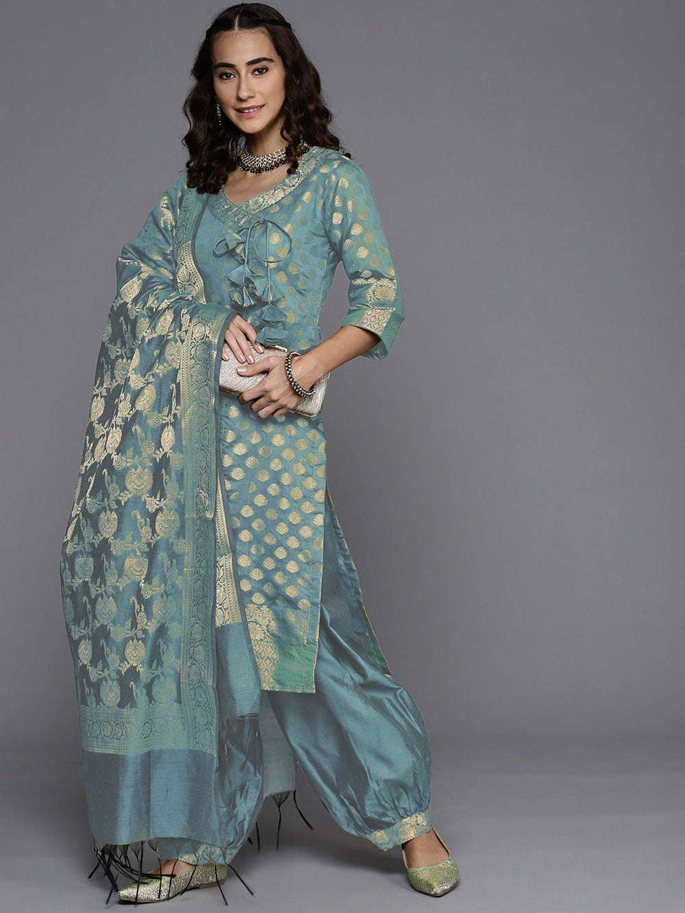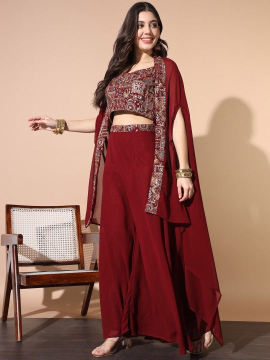 Pattern Type: Digital printed ethnic motifs with heavy embellished geometric borders.