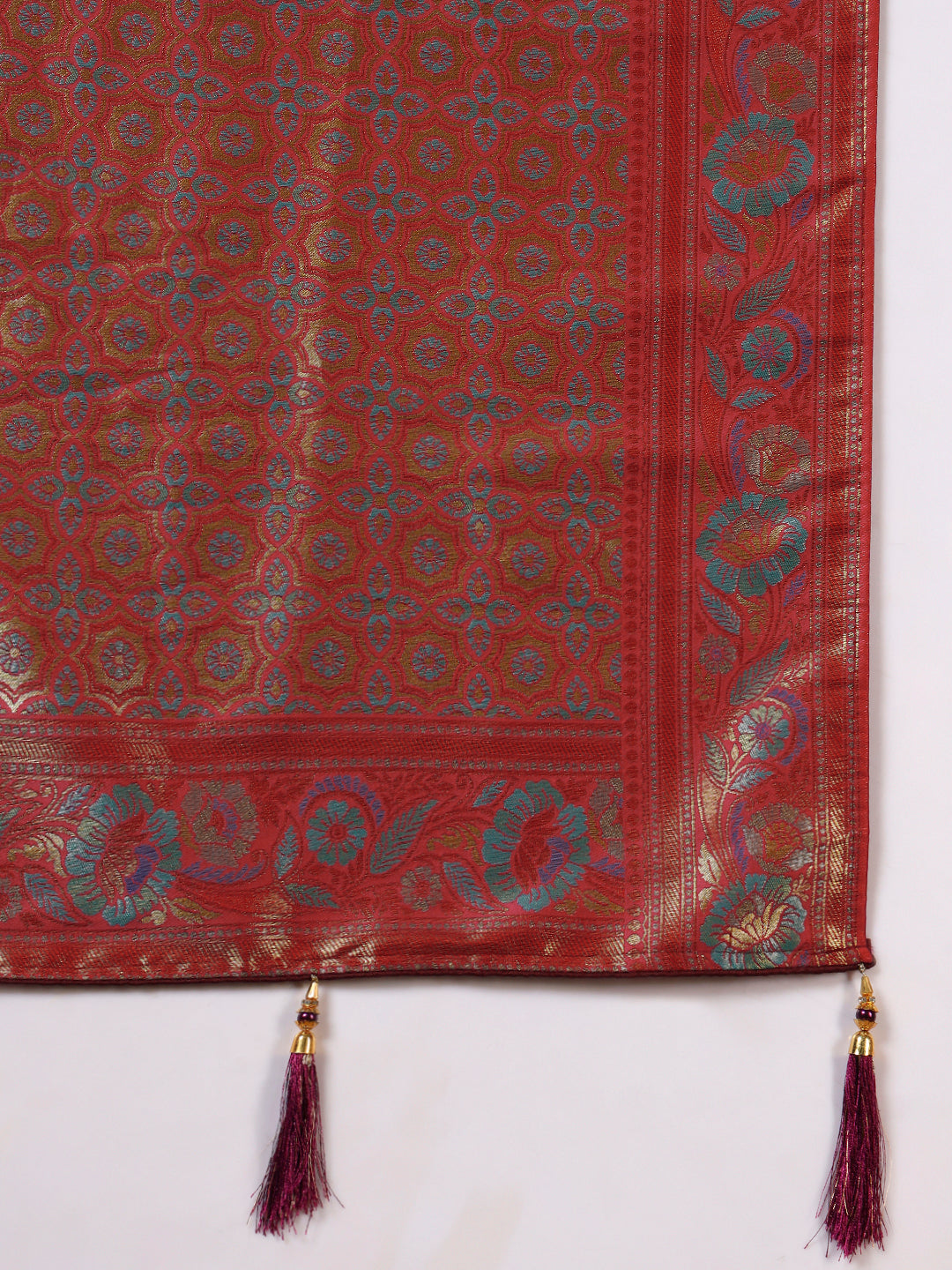 Pattern Type: Woven floral brocade with traditional paisley border.