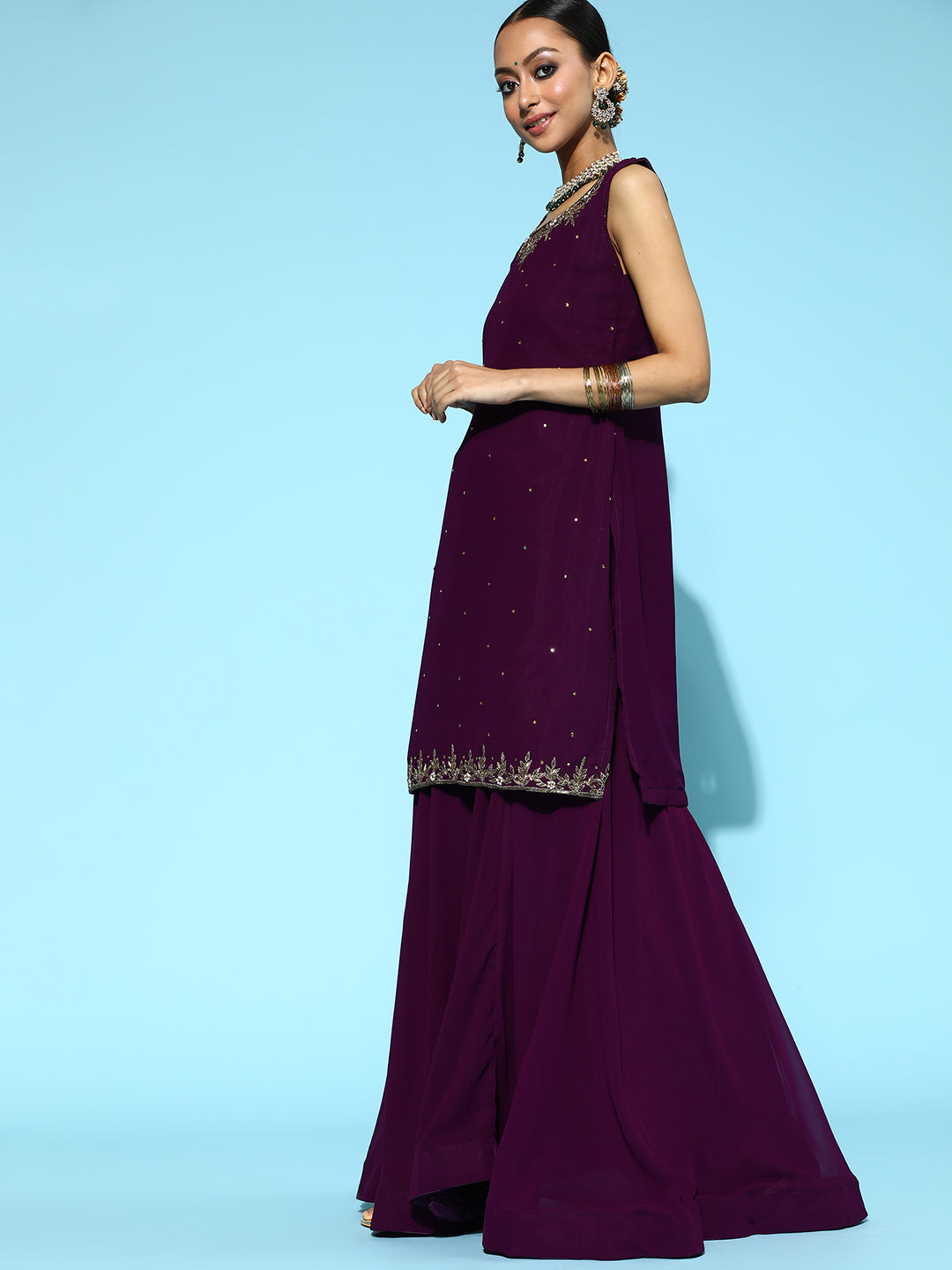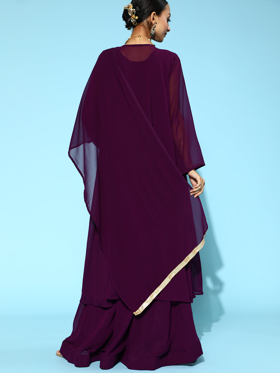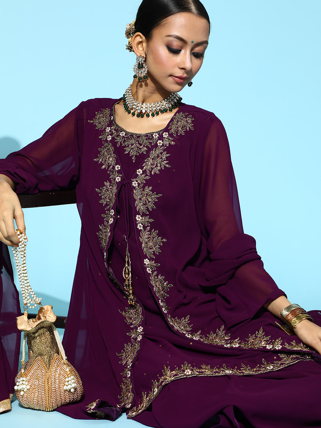 Georgette Jacket style Lehanga Set with Kasab and Kundan Embroidery