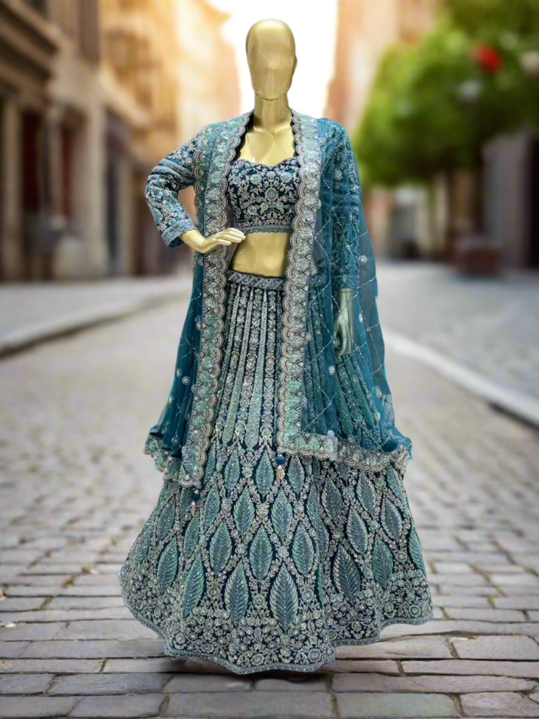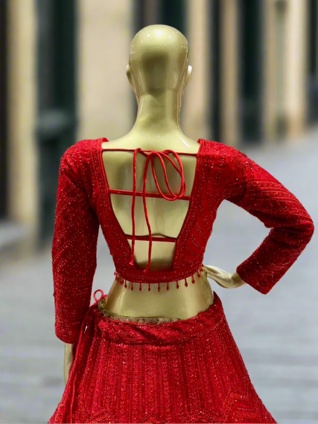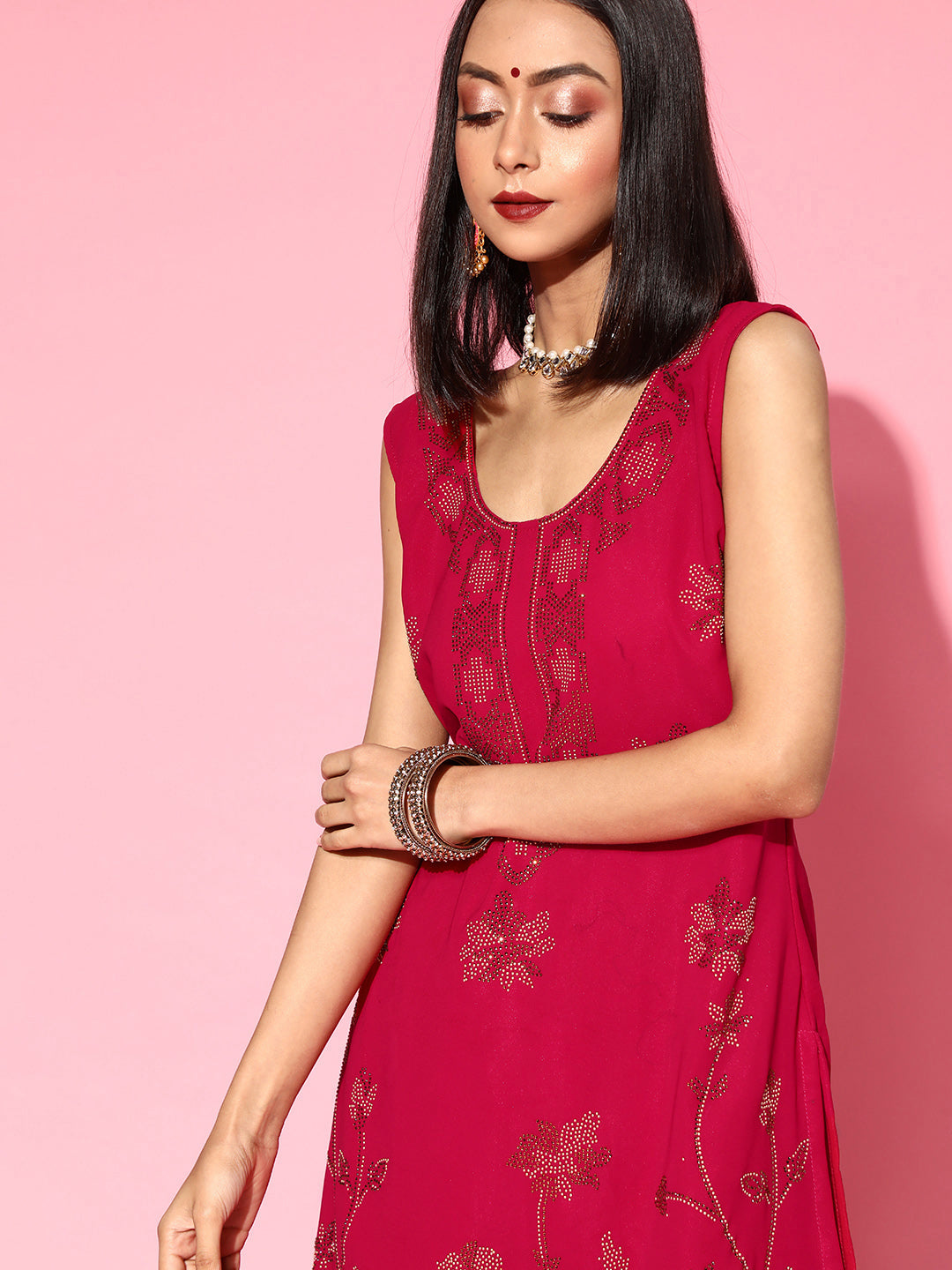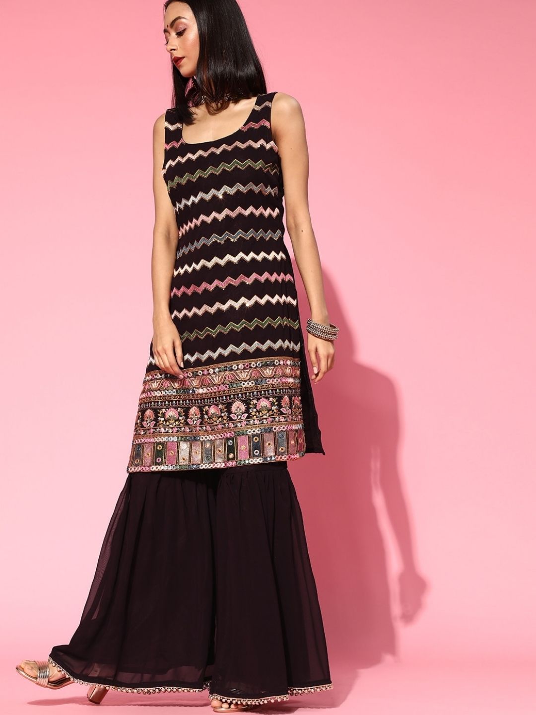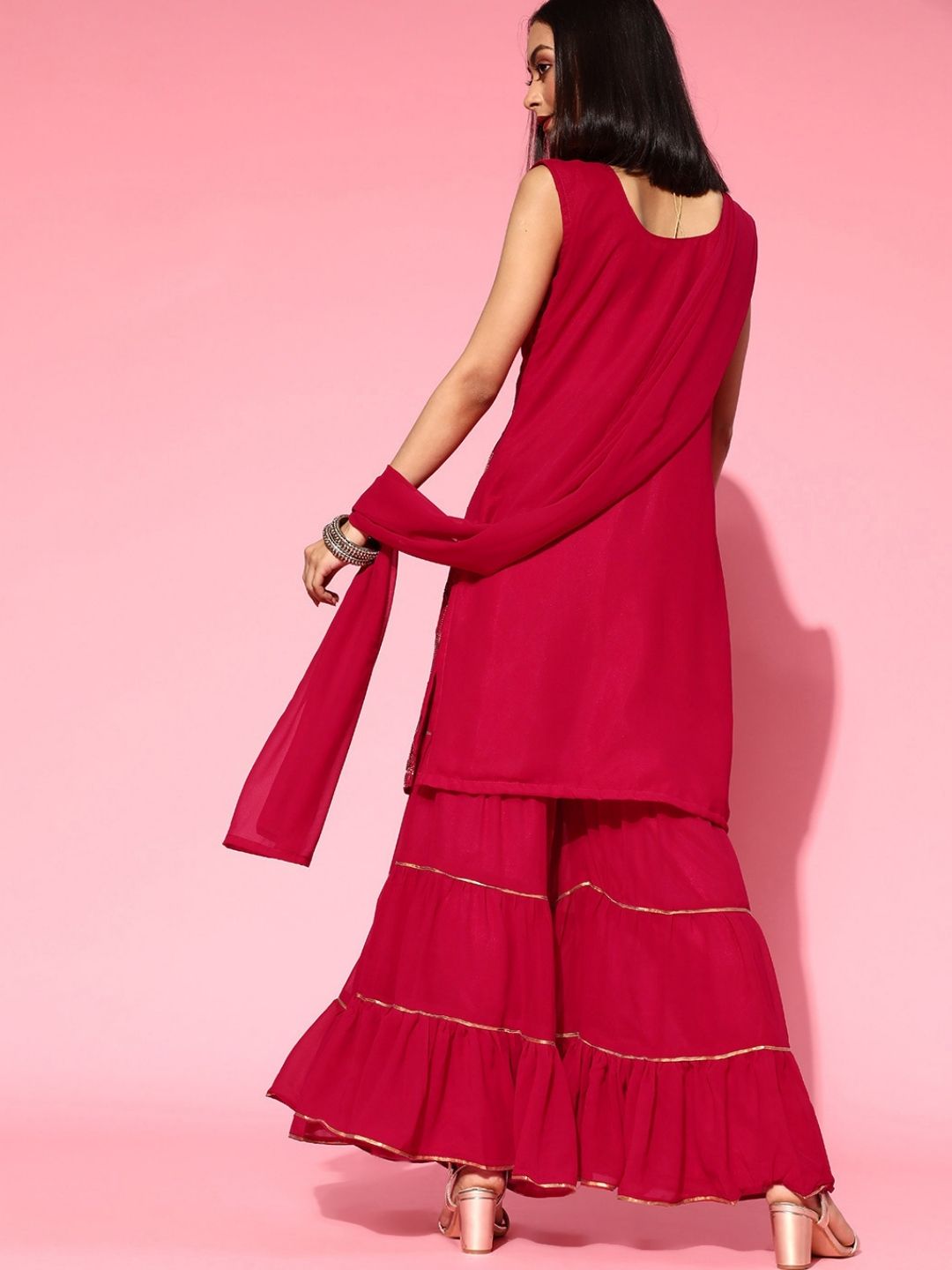 Chhabra 555 Made to Measure Resham Mirror Embroidery Sharara Suit Set & Beads Embellished Dupatta