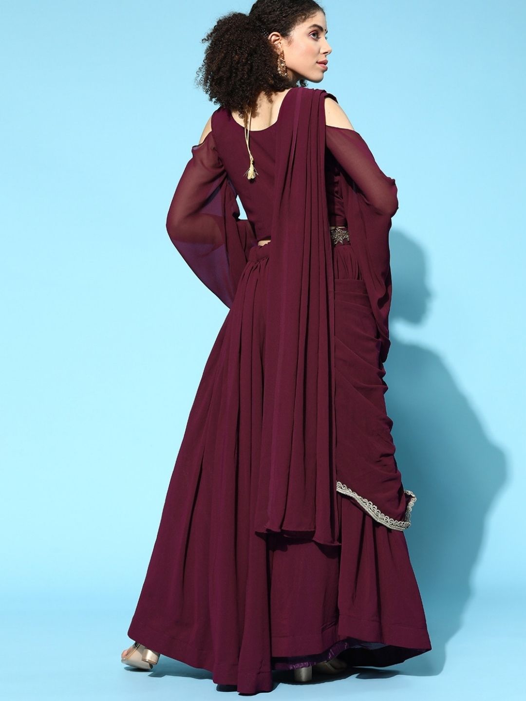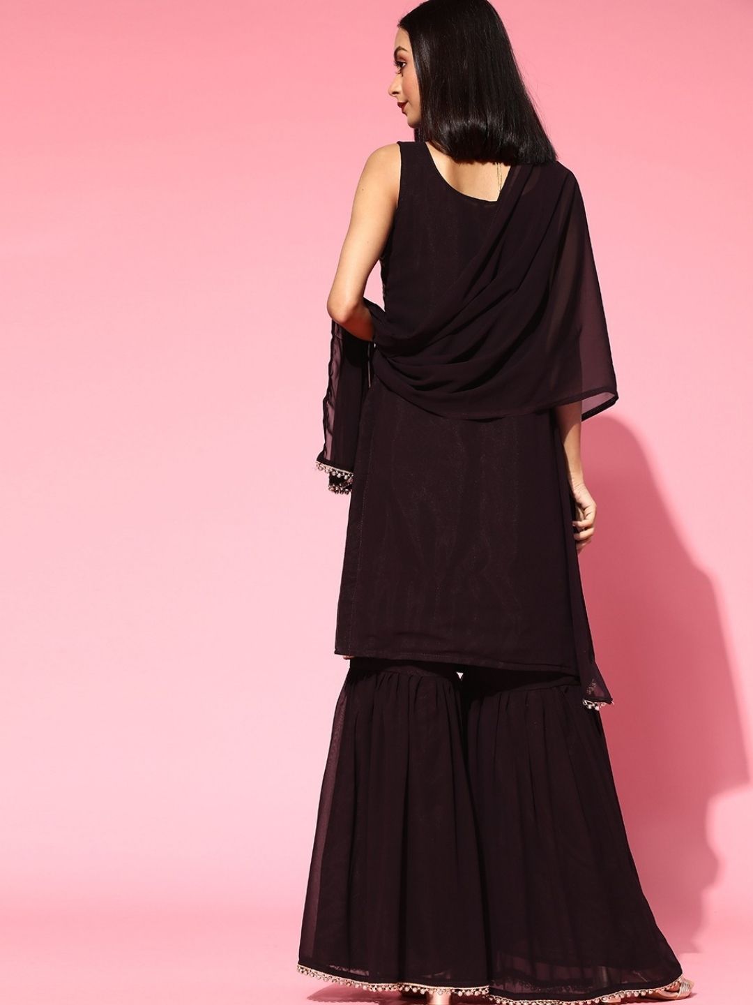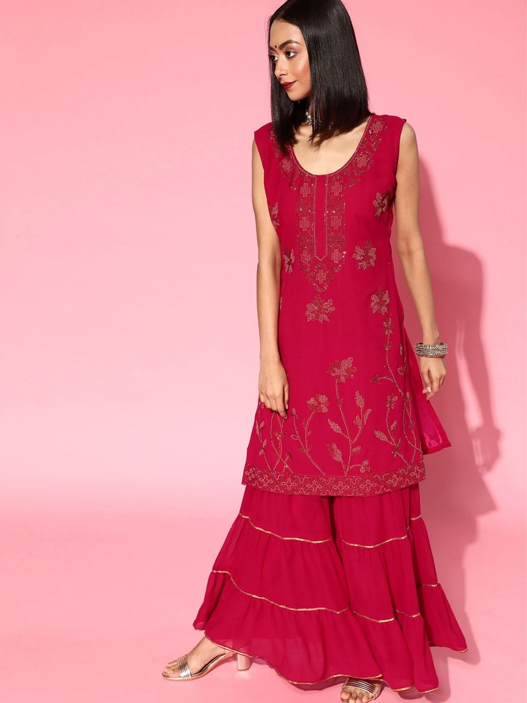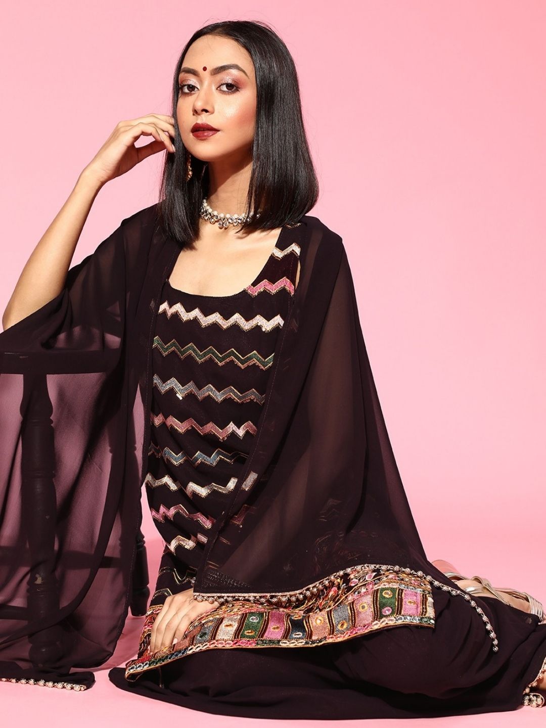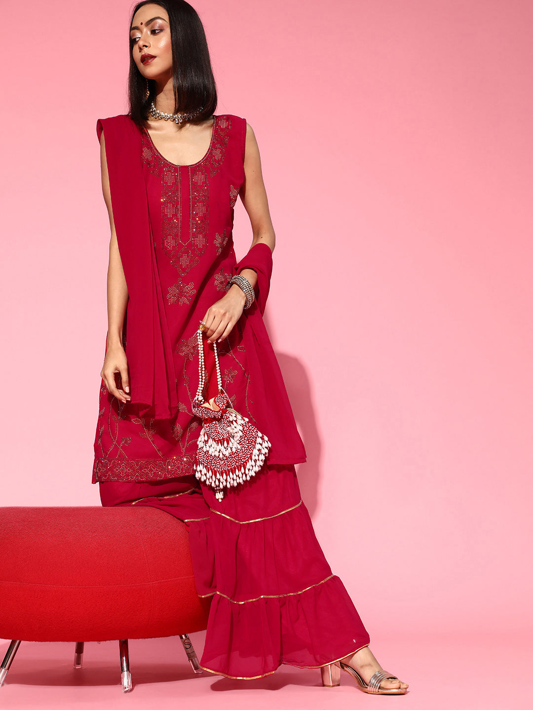 Made to Measure Resham Mirror Embroidery Sharara Suit Set & Beads Embellished Dupatta