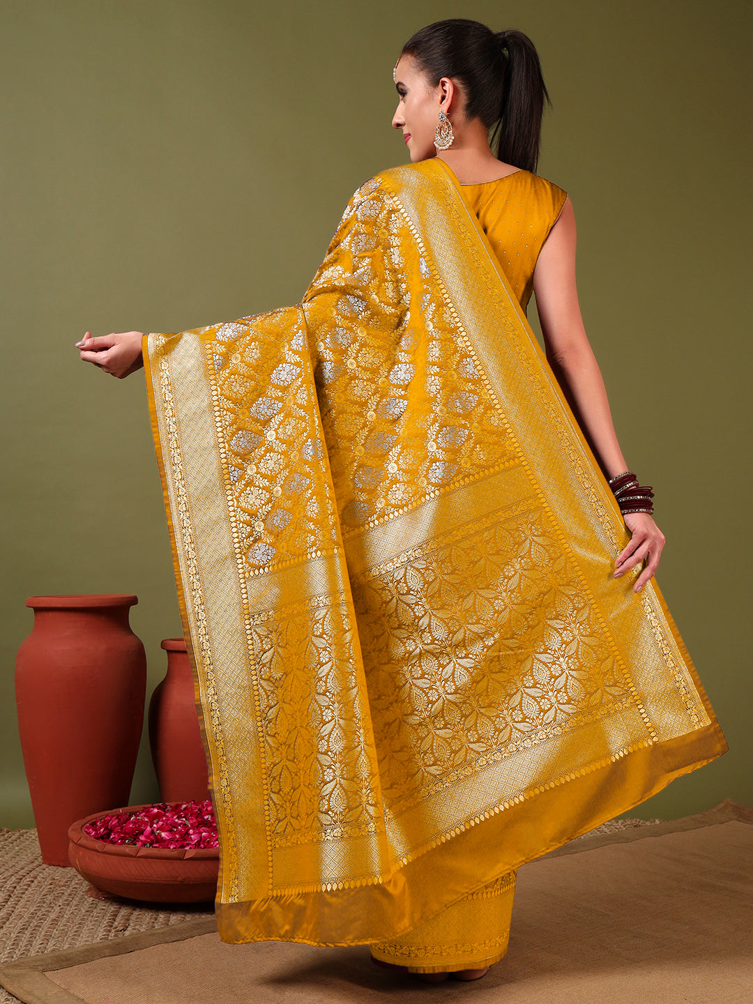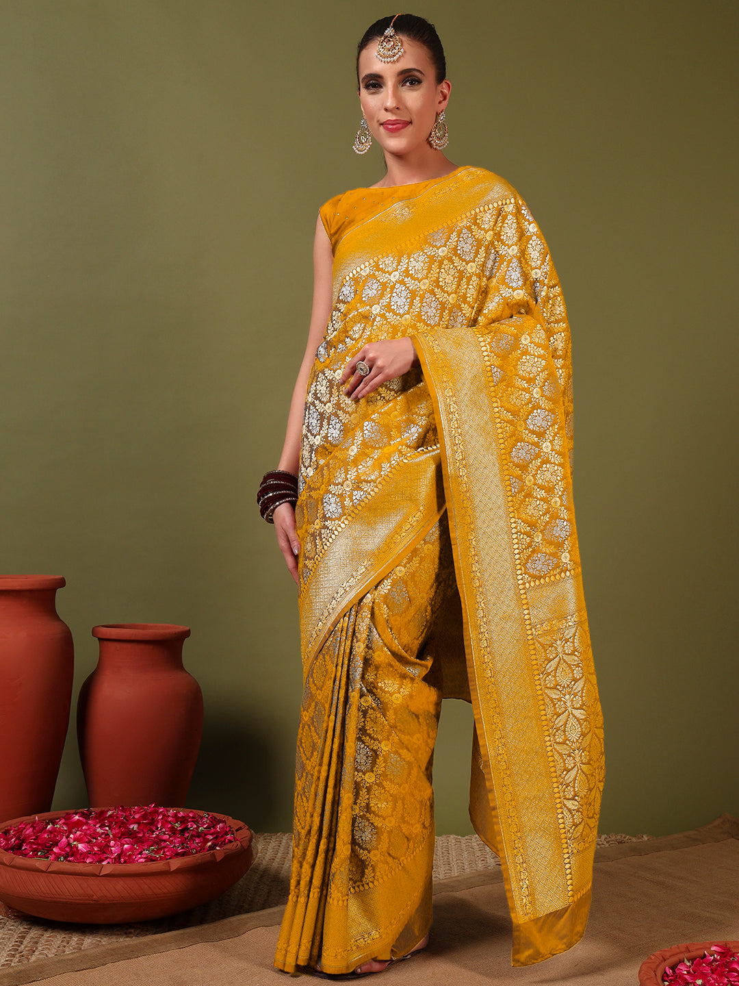 Chhabra 555 Orange & Green Banarasi Art Silk Saree