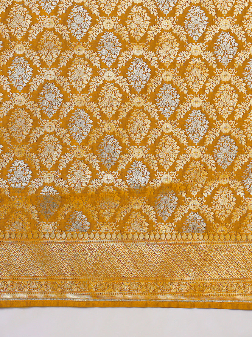 Orange & Green Banarasi Silk Narayan Pet Traditional Saree