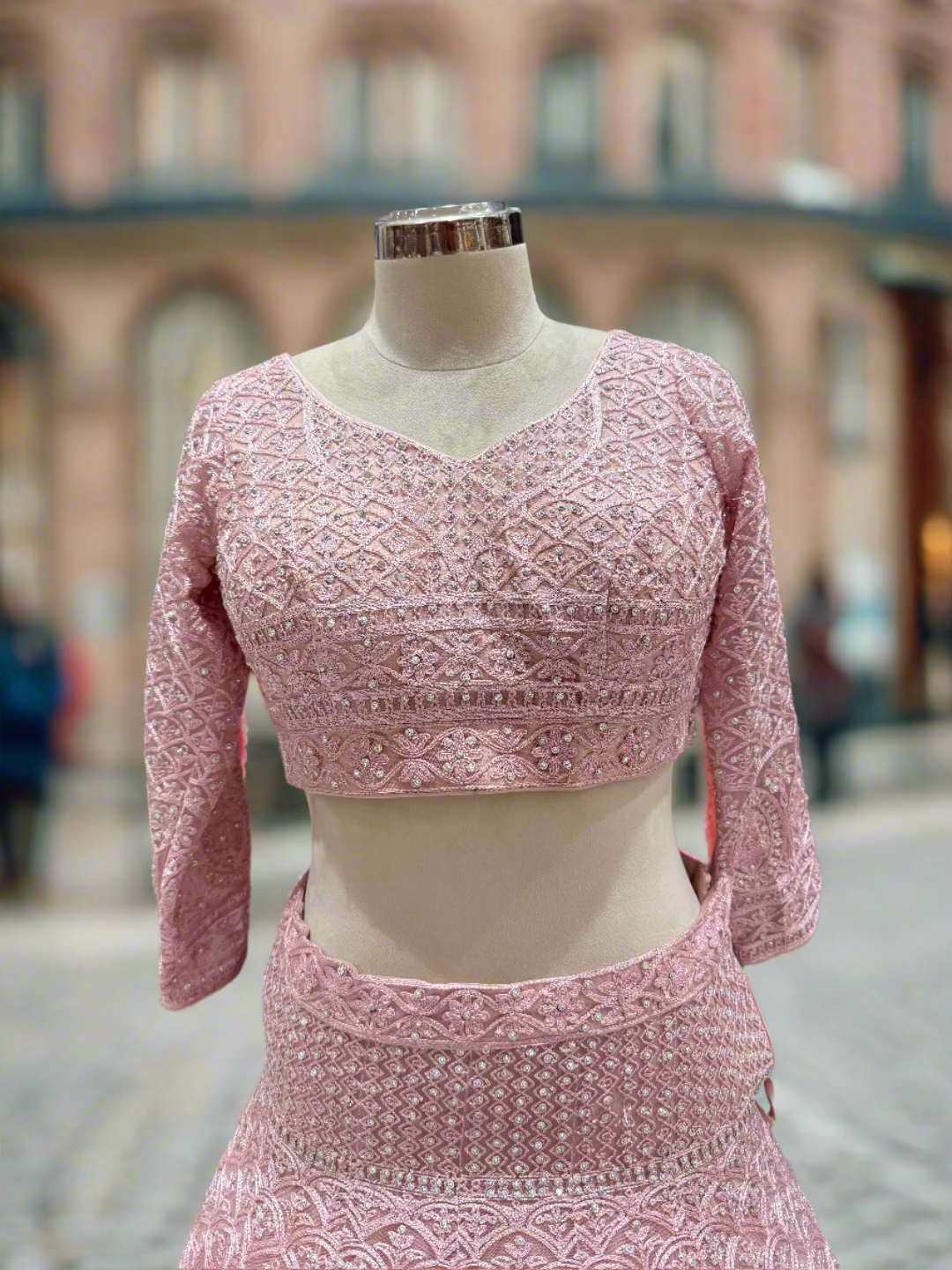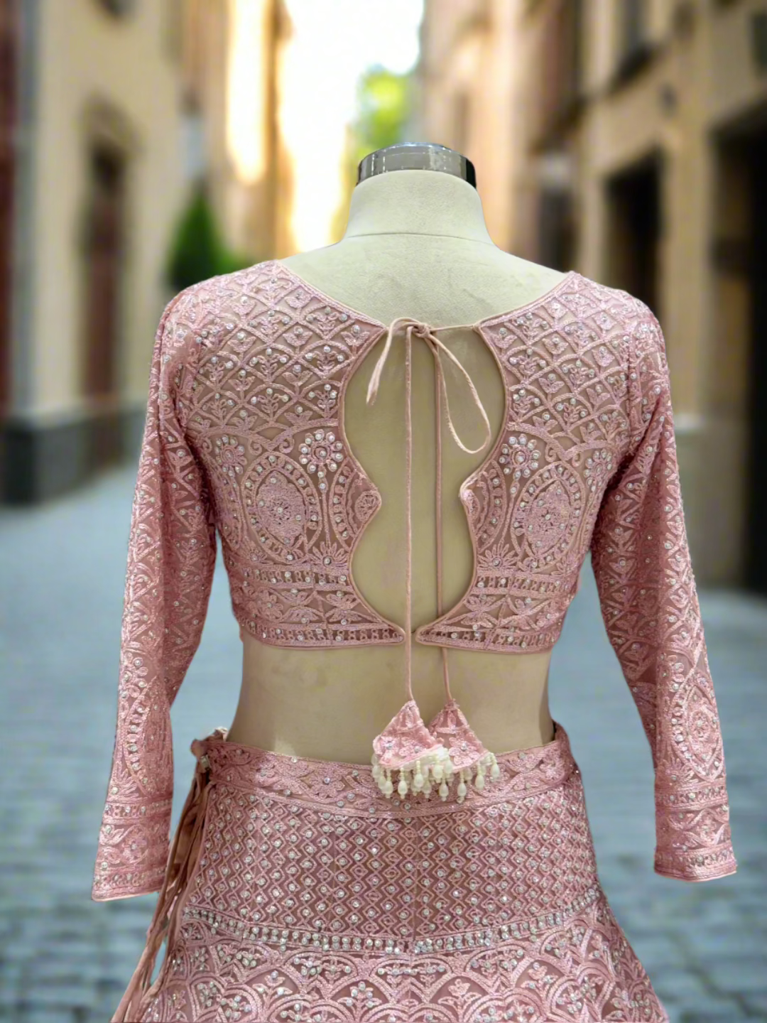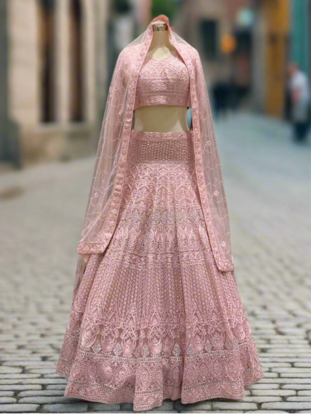 Blush Pink Embroidered Net Lehenga
