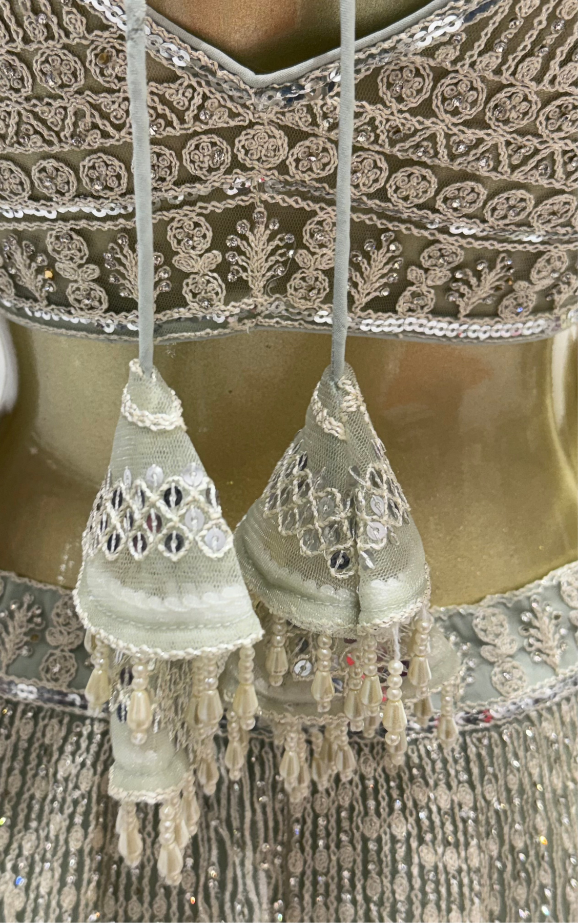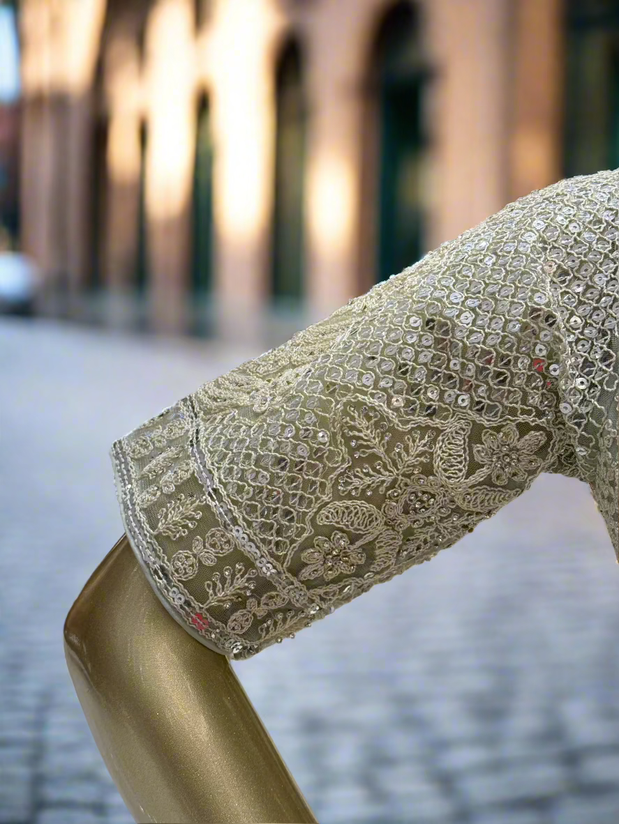 Sage Green Embroidered Readymade Lehenga