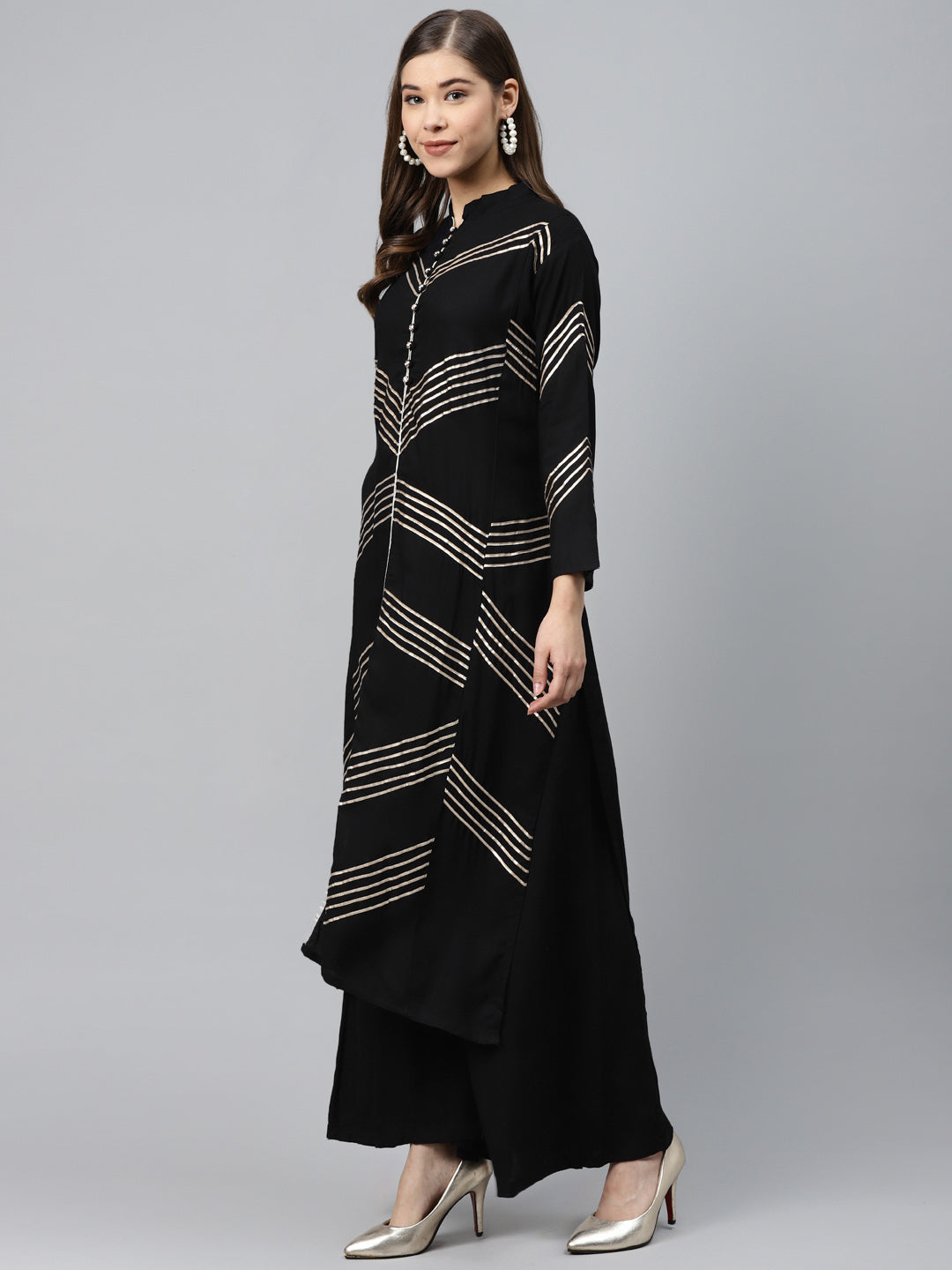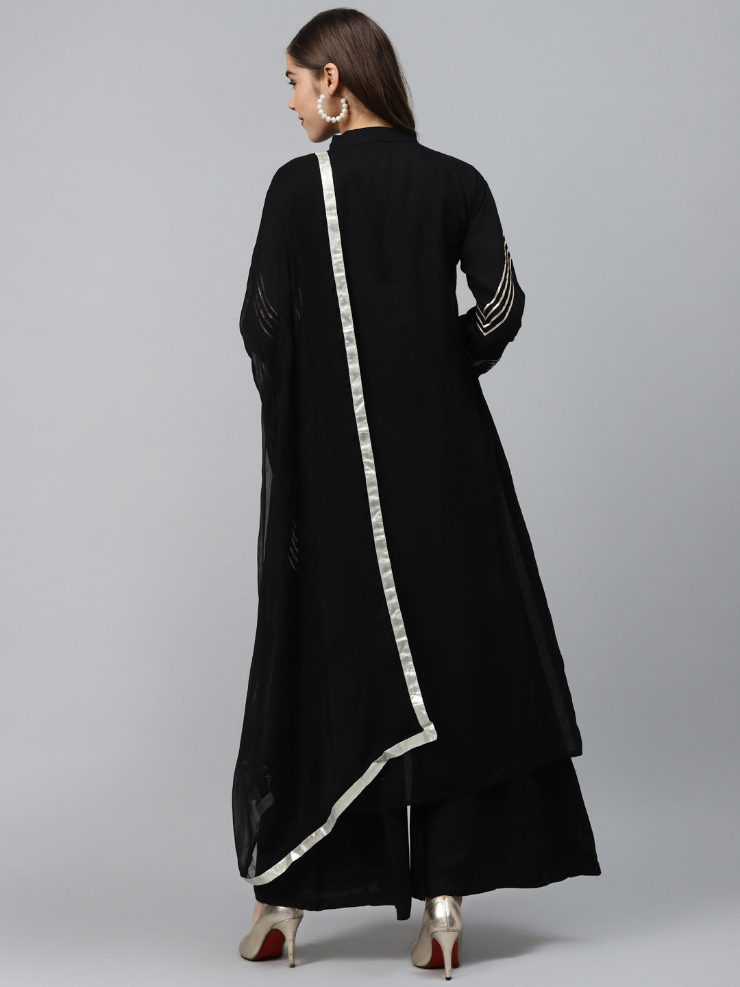Made to Measure Black Kurta Pallazo Set with Gotta Patti Embroidery & Chiffon Dupatta