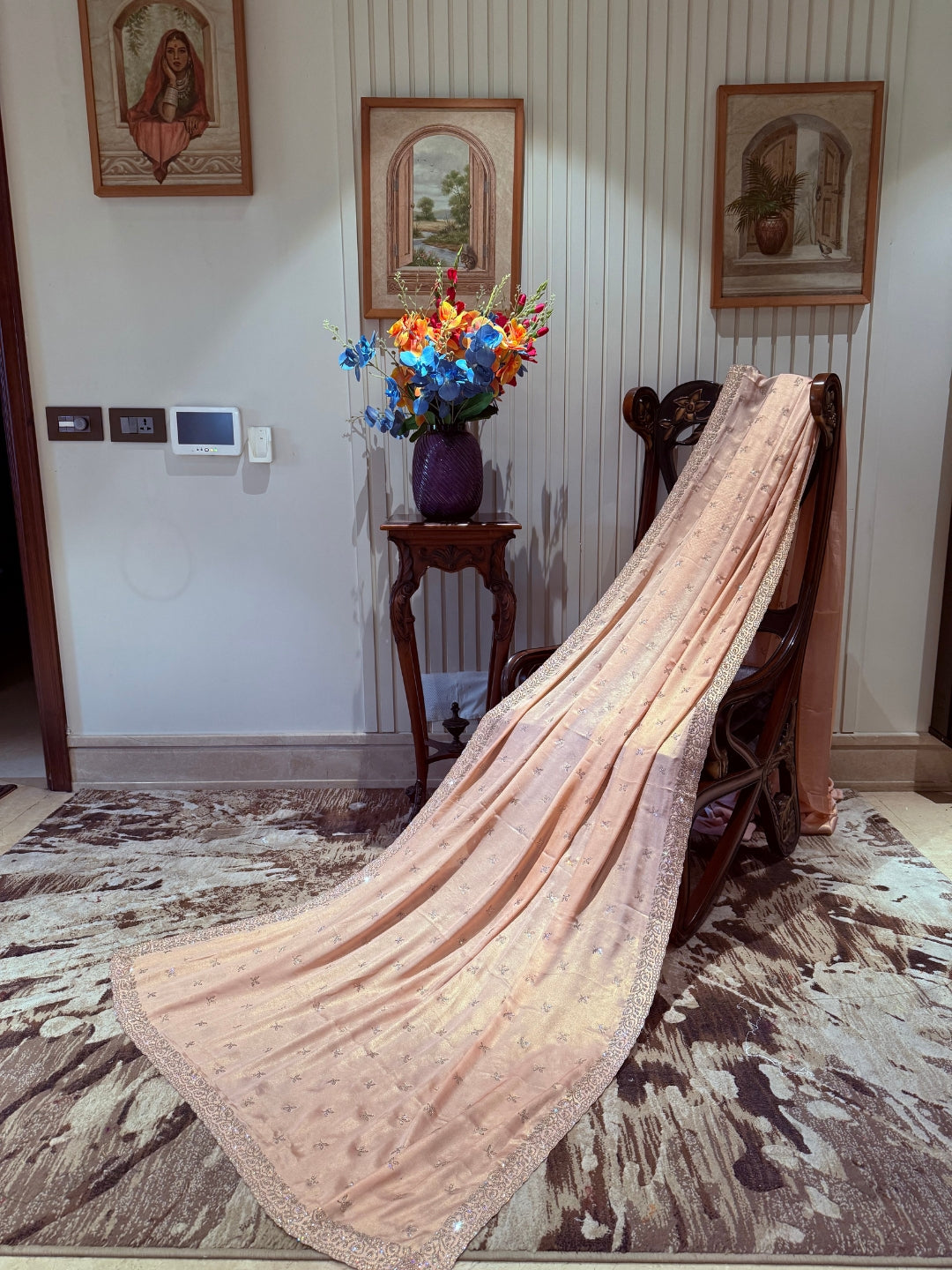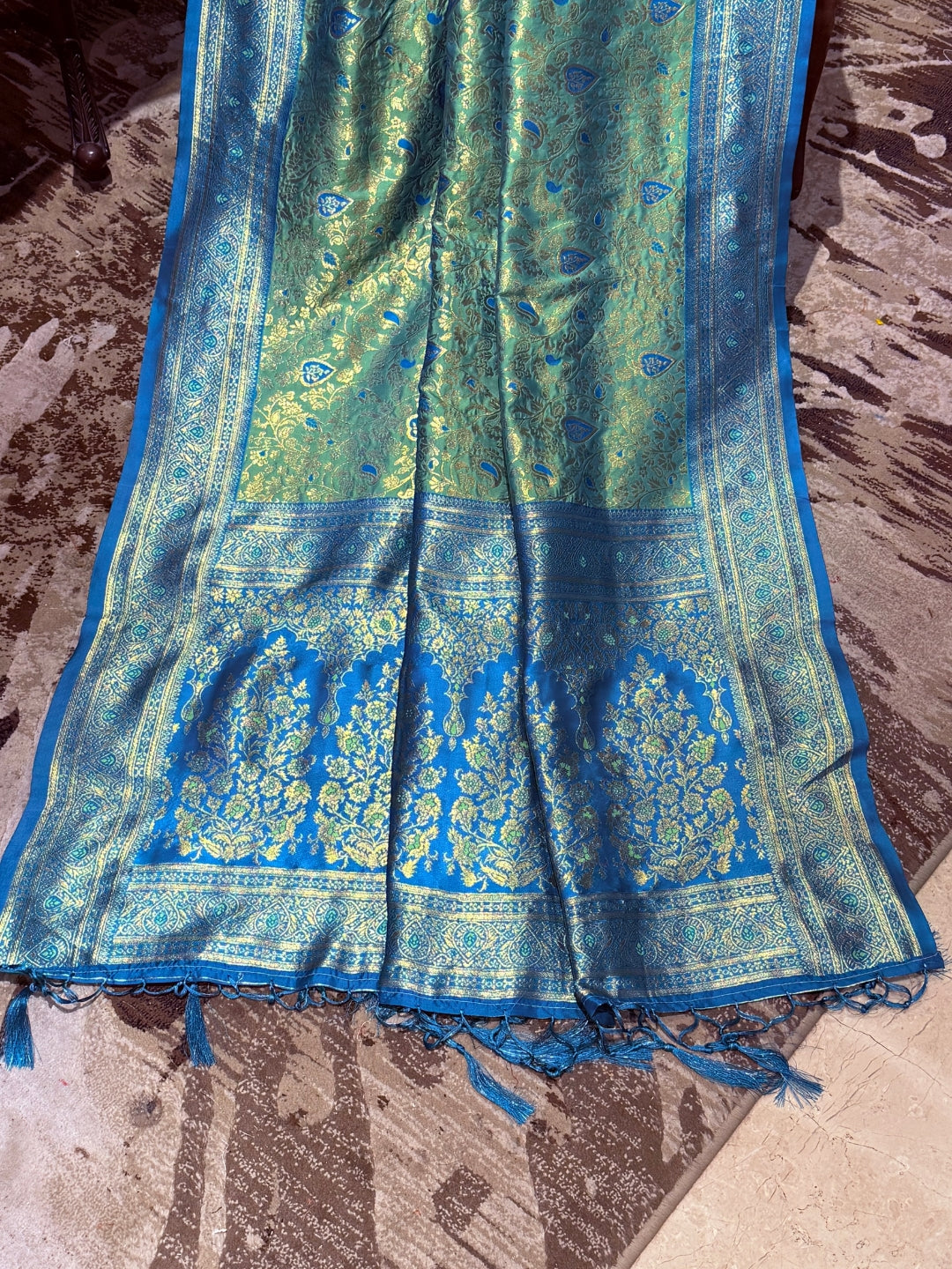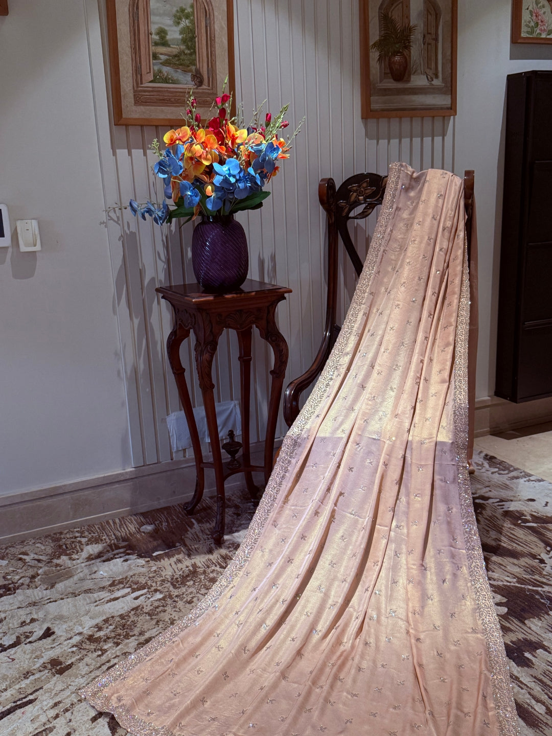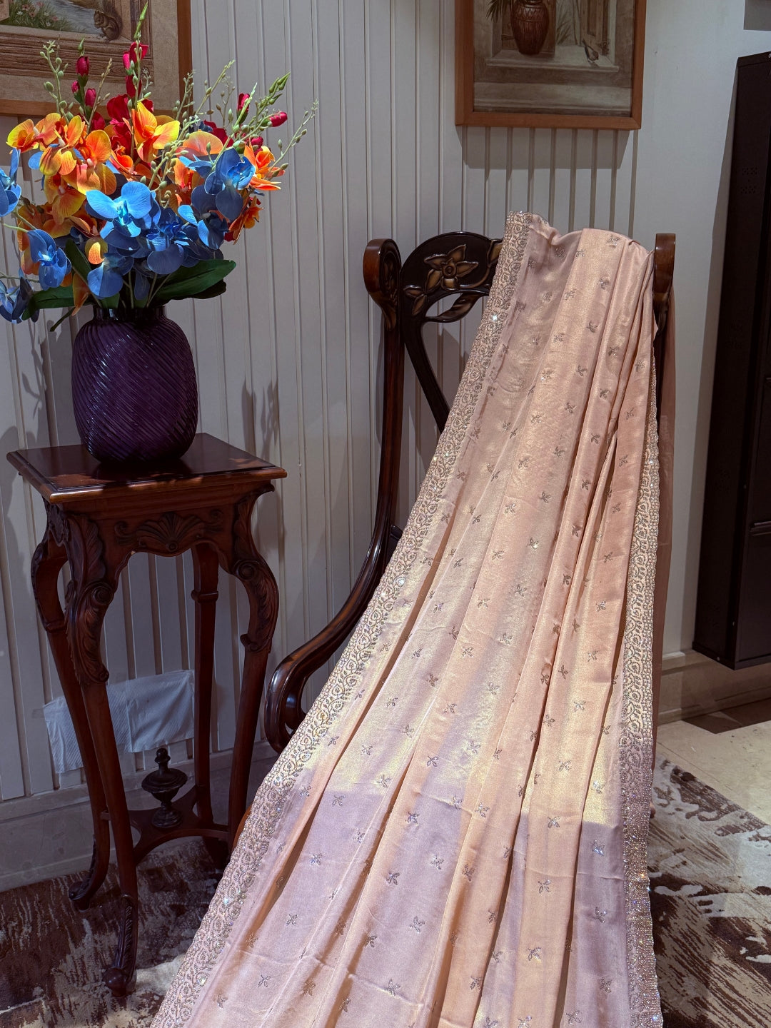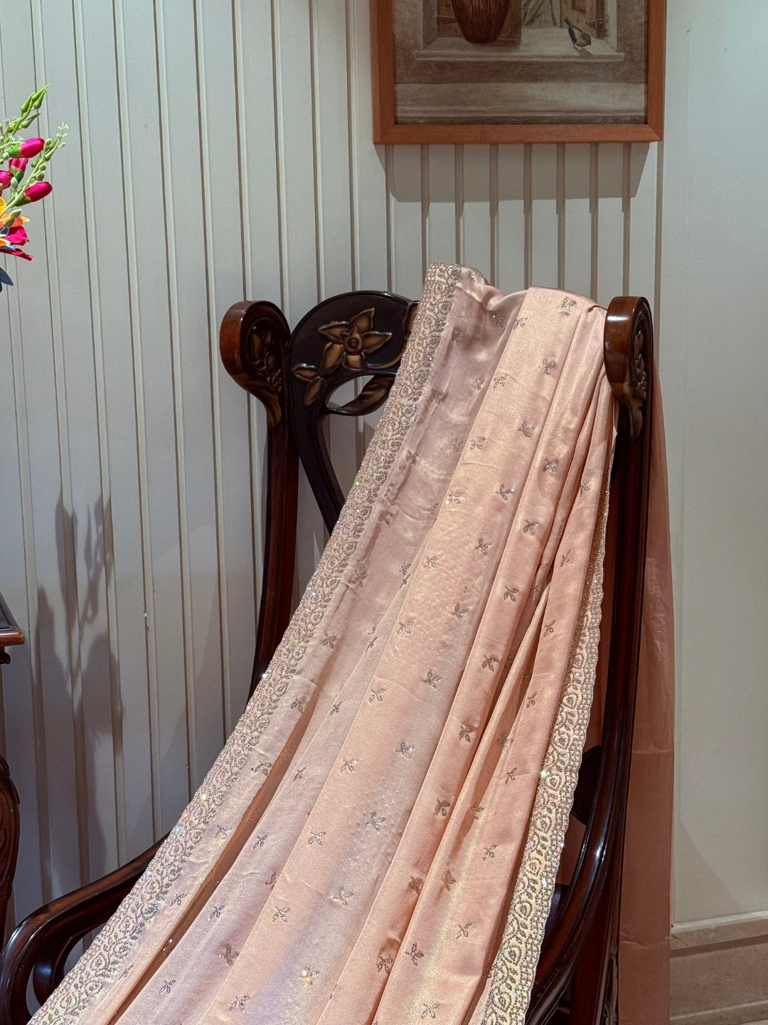 Jacquard Saree with Heavy Zardozi Sequin Peacock Floral Border & Embroidered Blouse