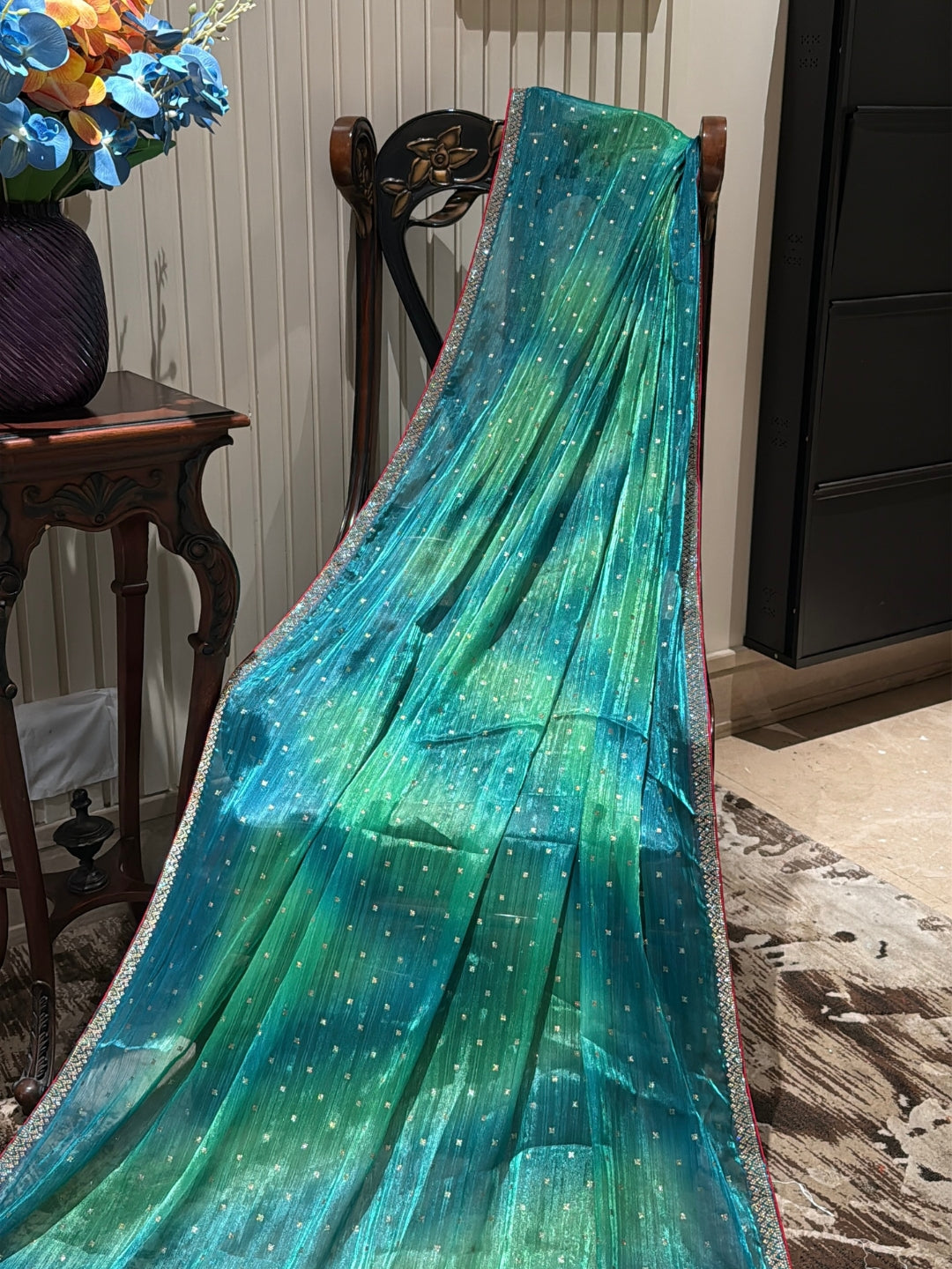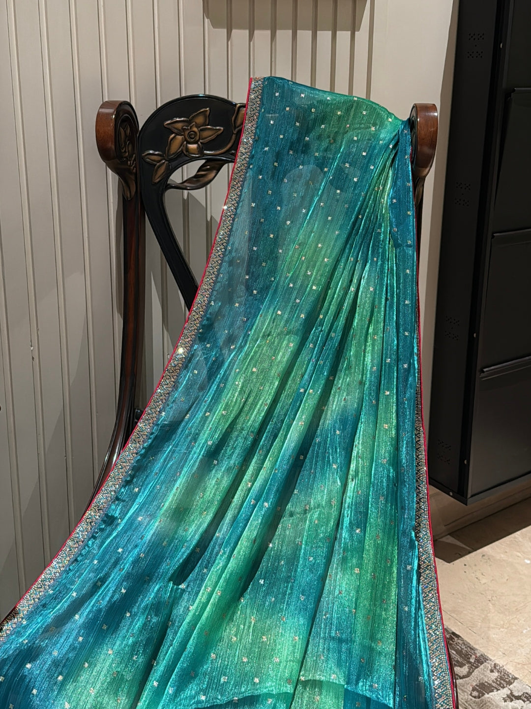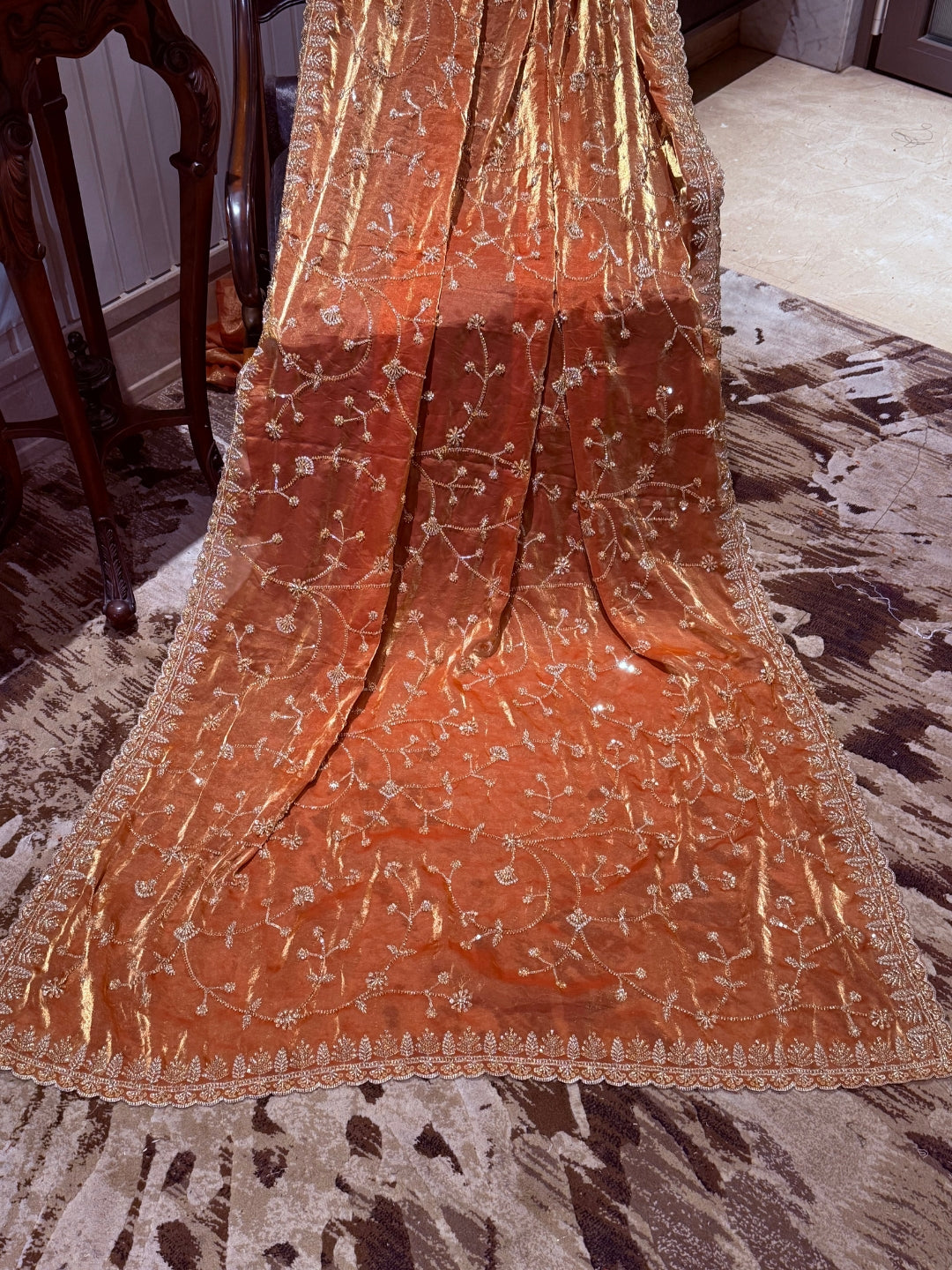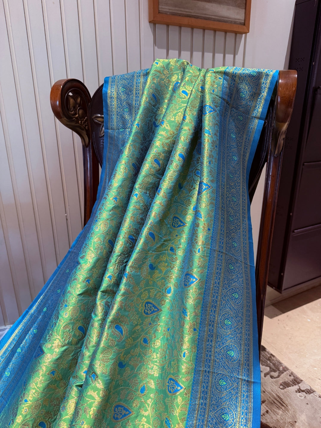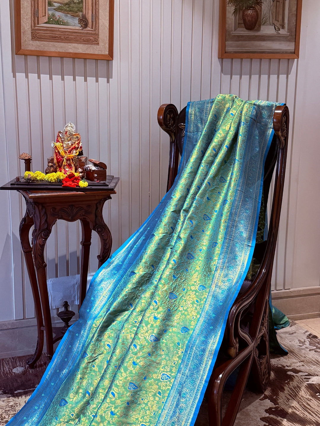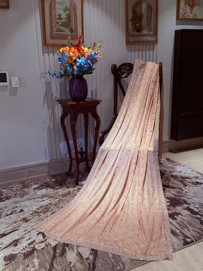Jacquard Saree with Heavy Zardozi Sequin Peacock Floral Border & Embroidered Blouse