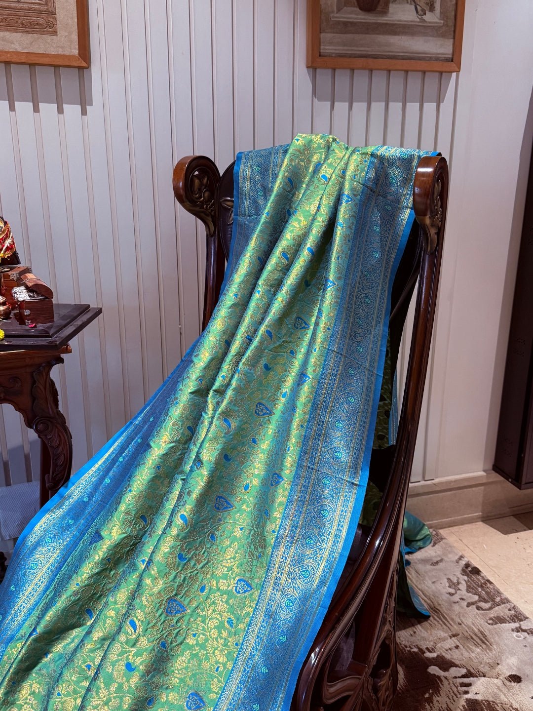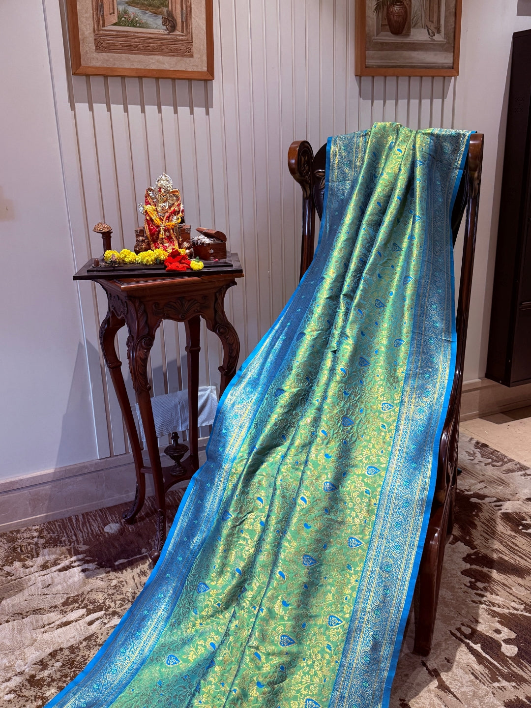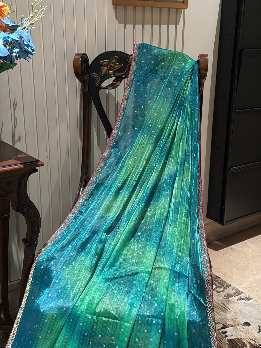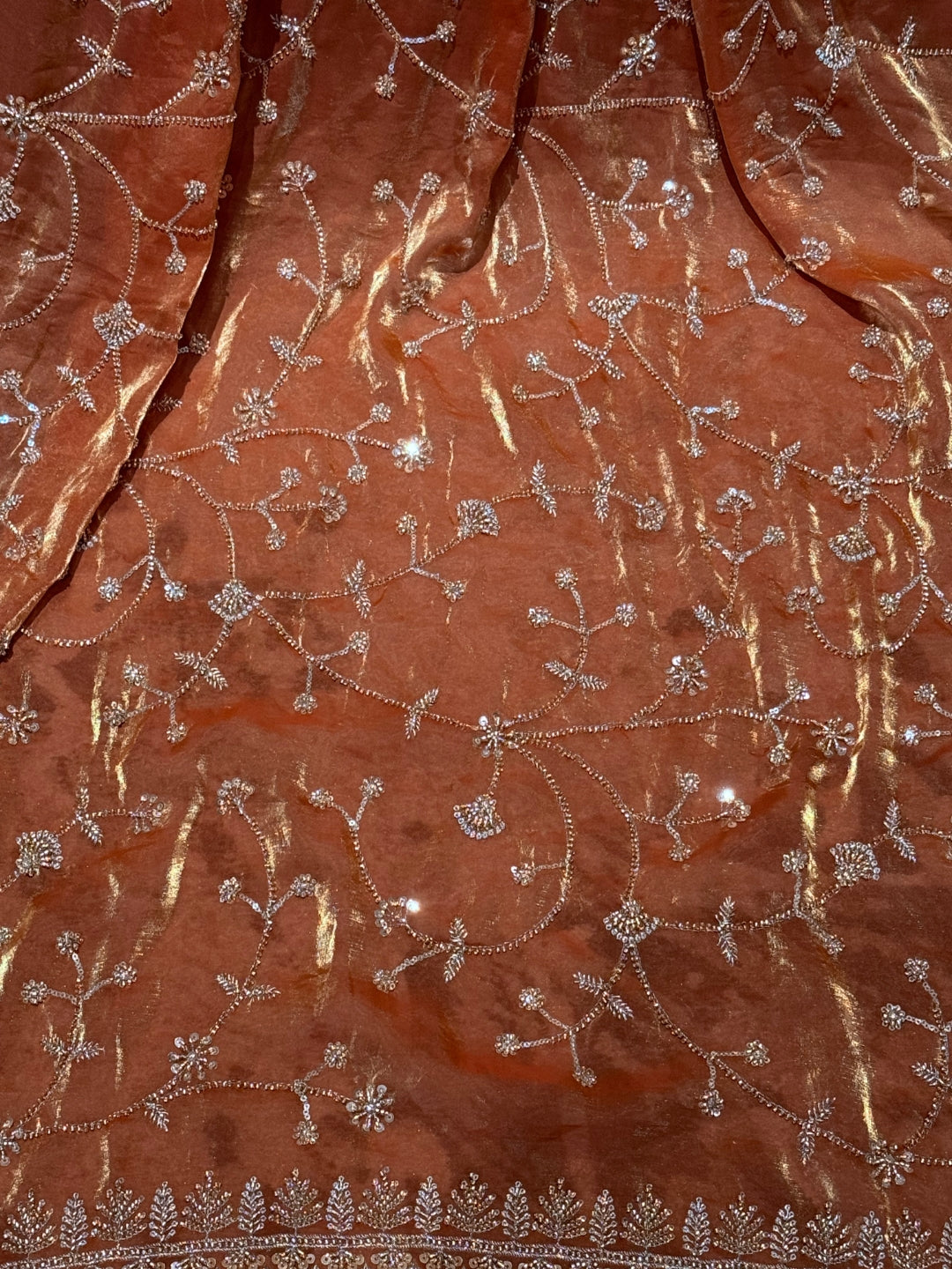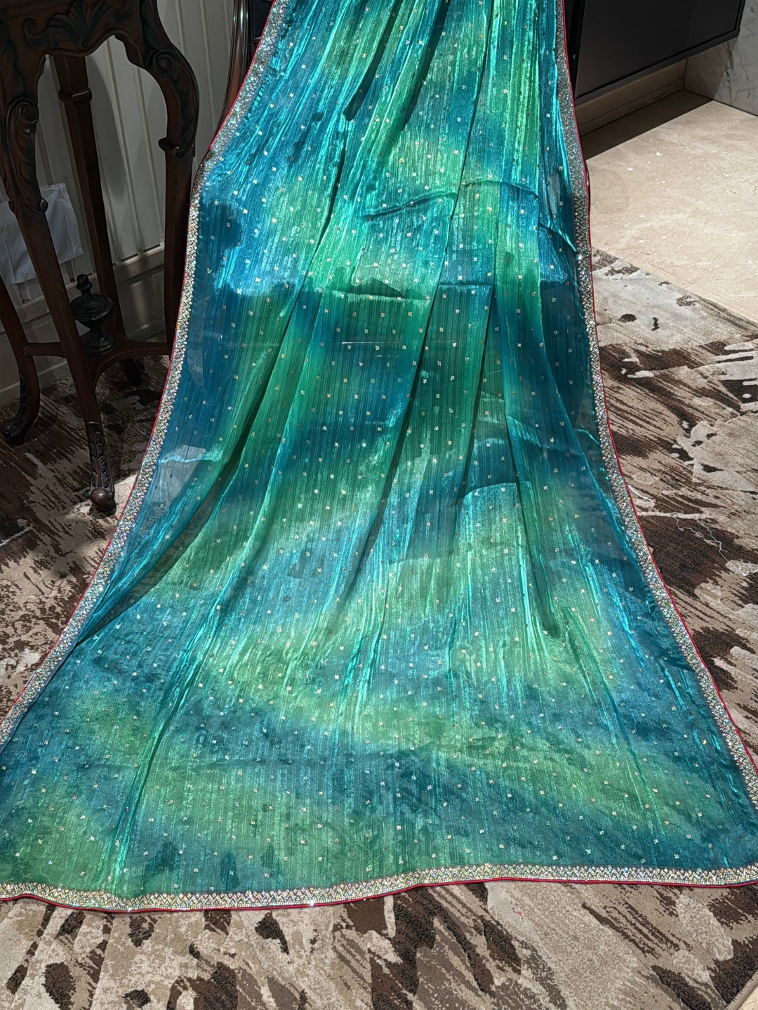 Jacquard Saree with Heavy Zardozi Sequin Peacock Floral Border & Embroidered Blouse