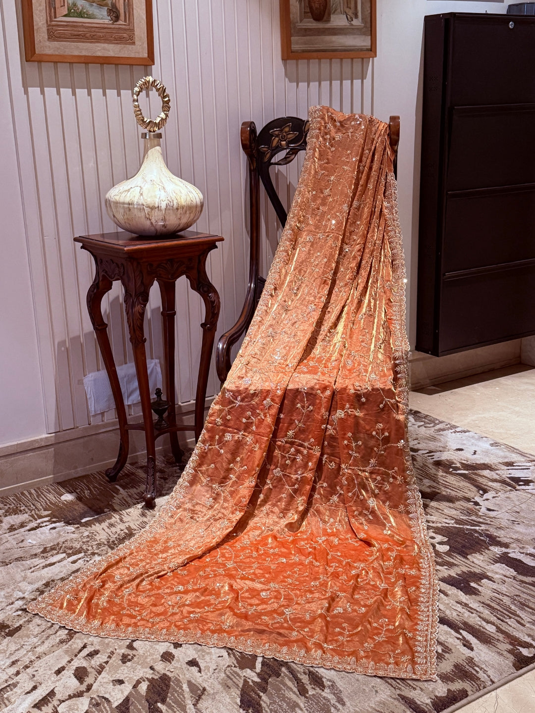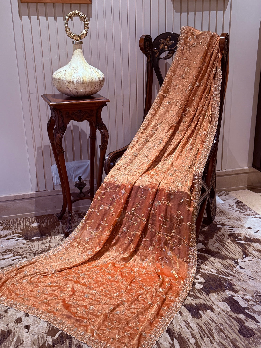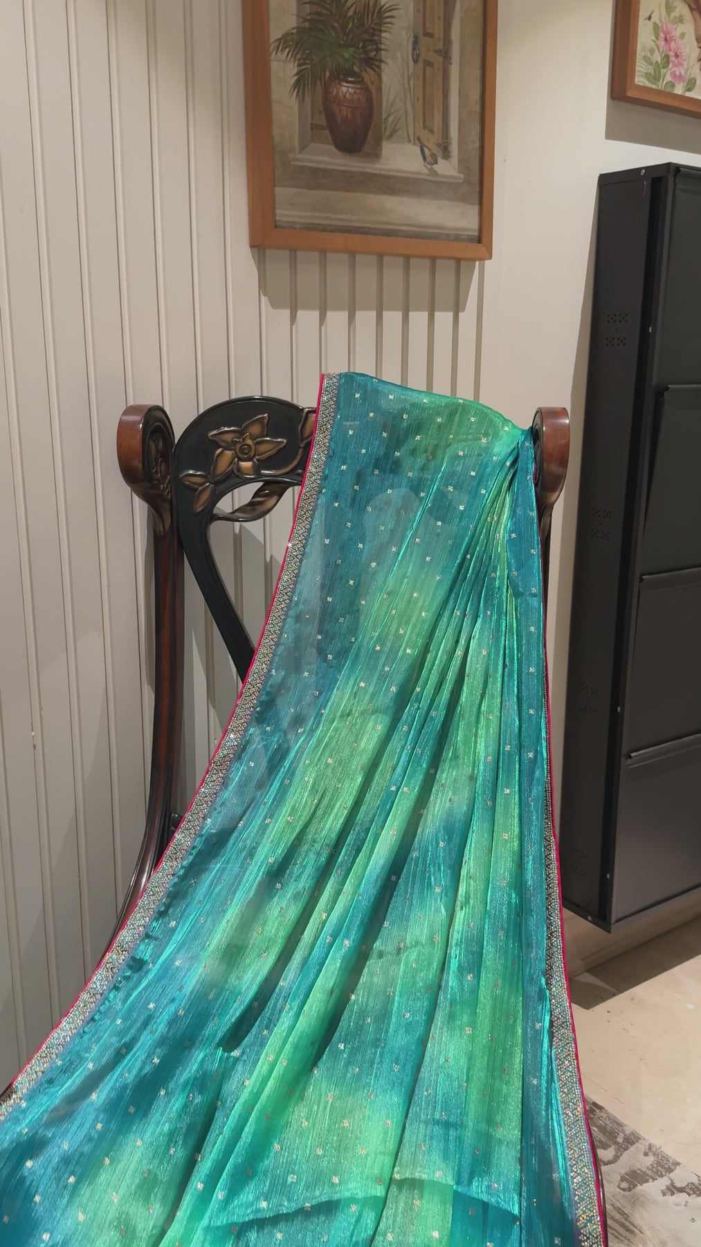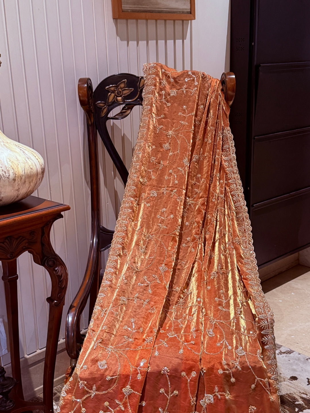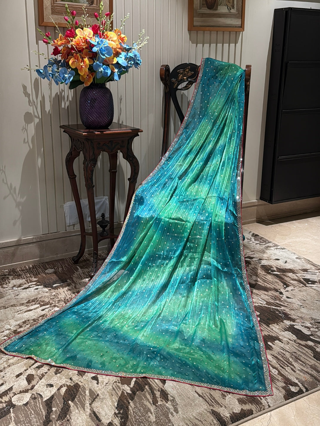 Jacquard Saree with Heavy Zardozi Sequin Peacock Floral Border & Embroidered Blouse