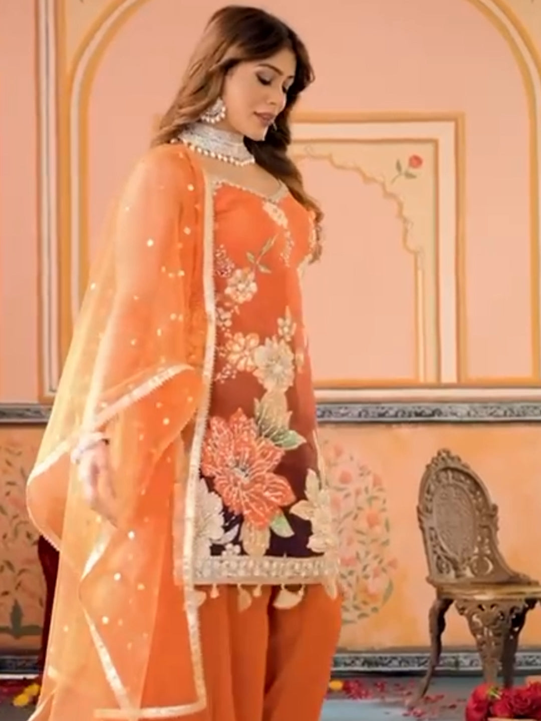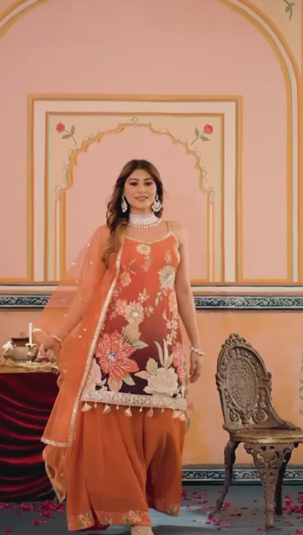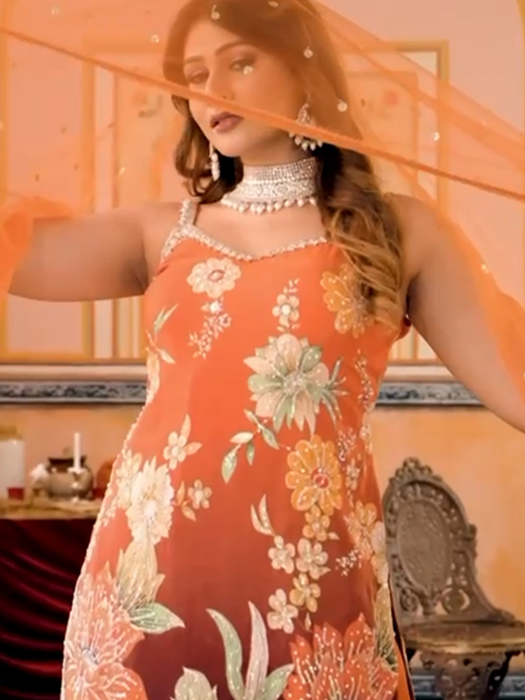 Ornamentation: Zardozi, sequins, pearls, resham, zari, and thread embroidery (floral and peacock motifs).