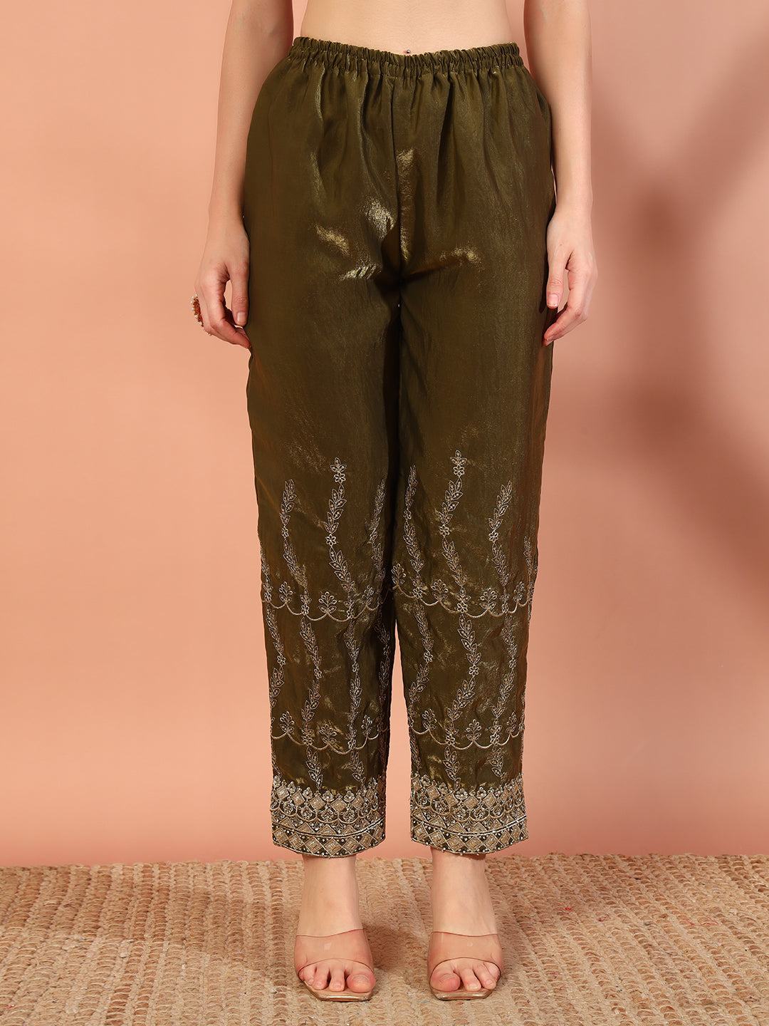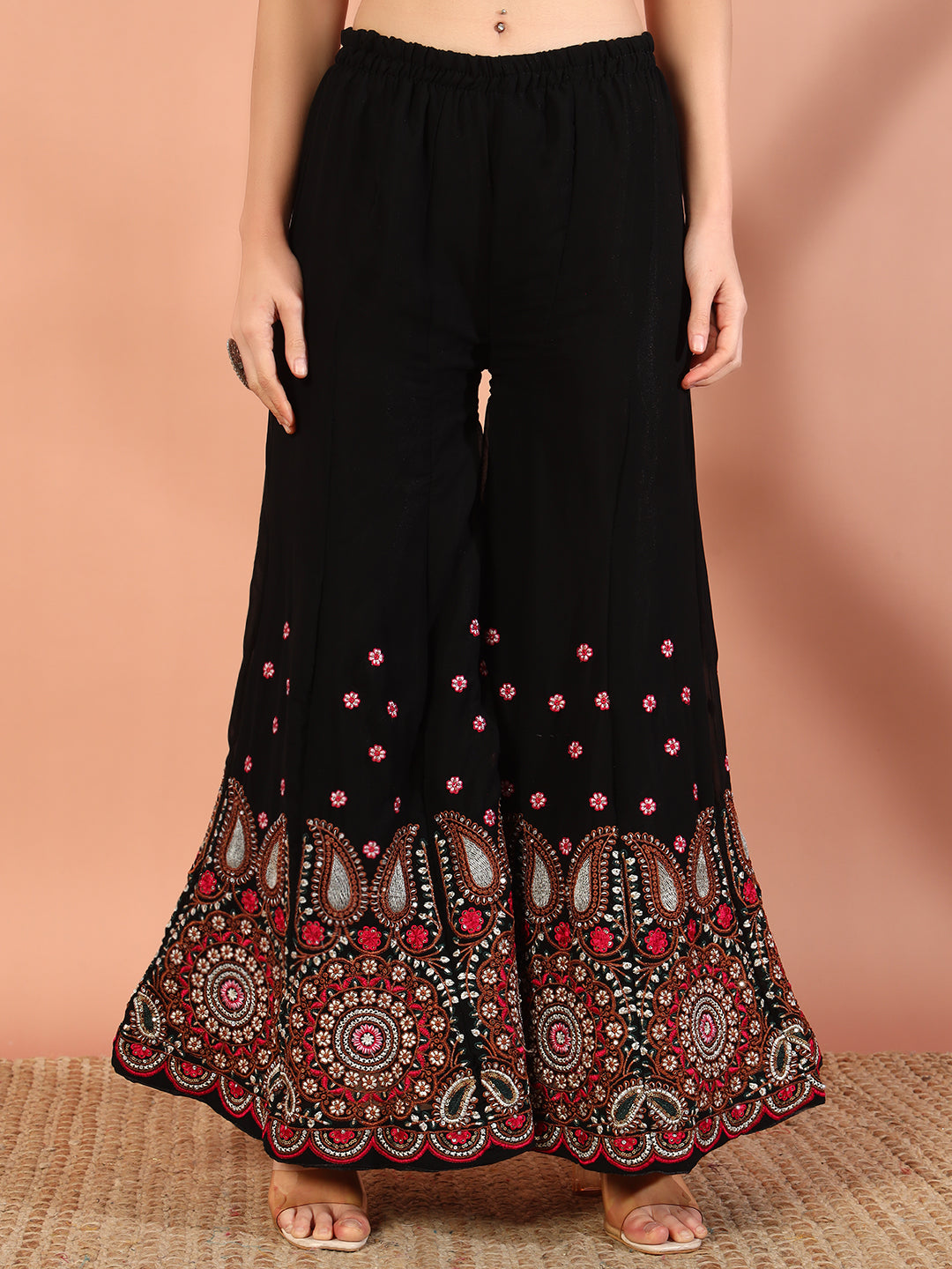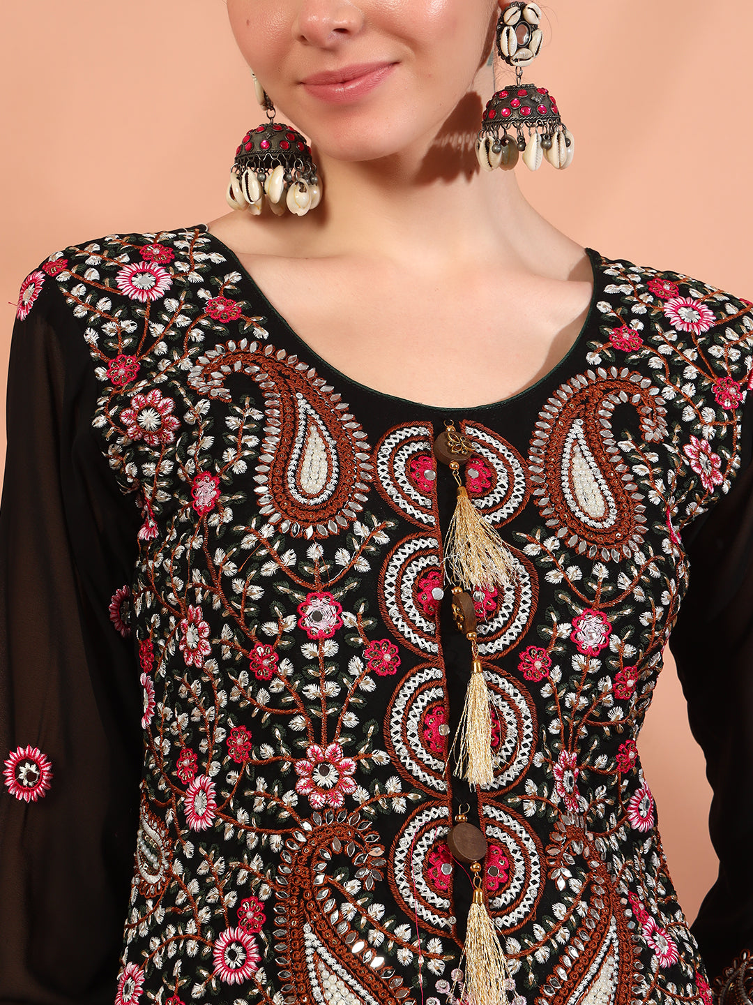 Top Pattern: Embellished floral and paisley motifs with vertical stripe detail.