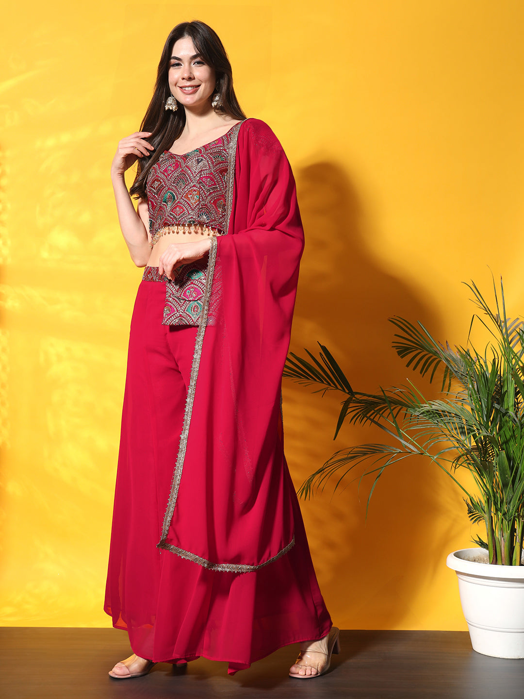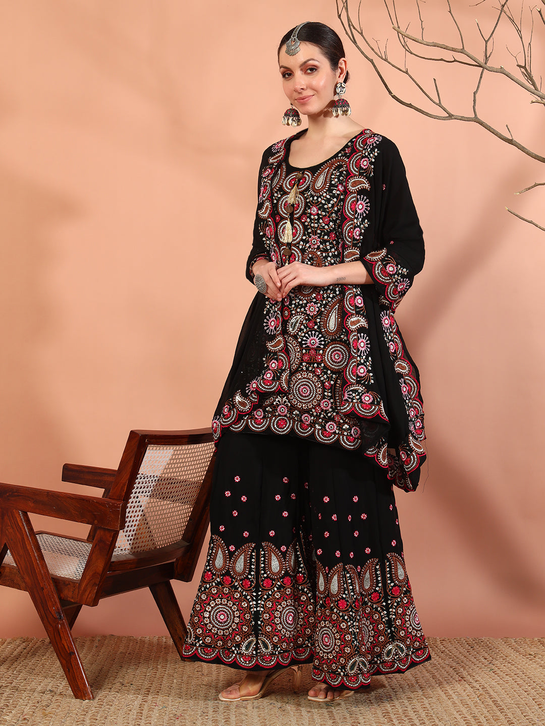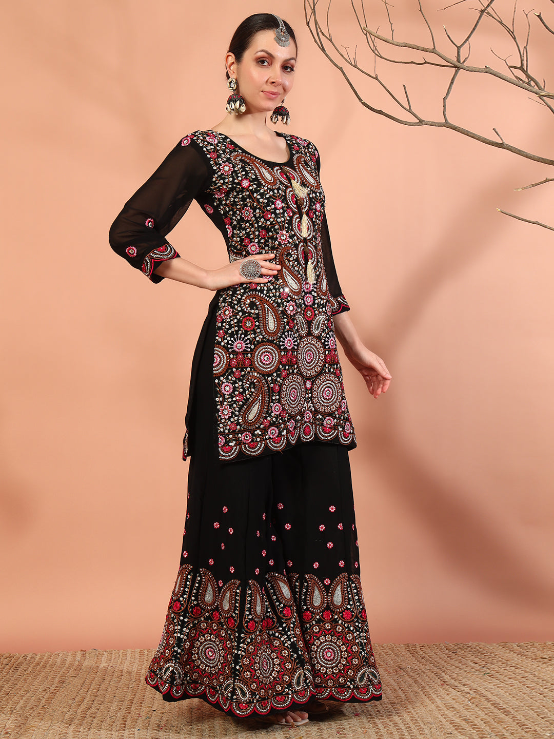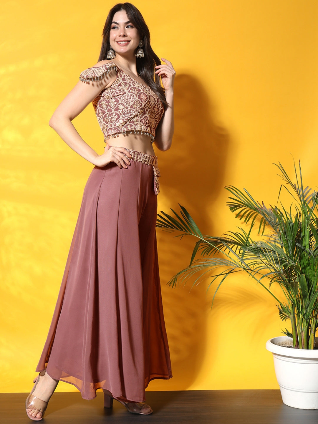Top Pattern: Embellished floral and paisley motifs with vertical stripe detail.