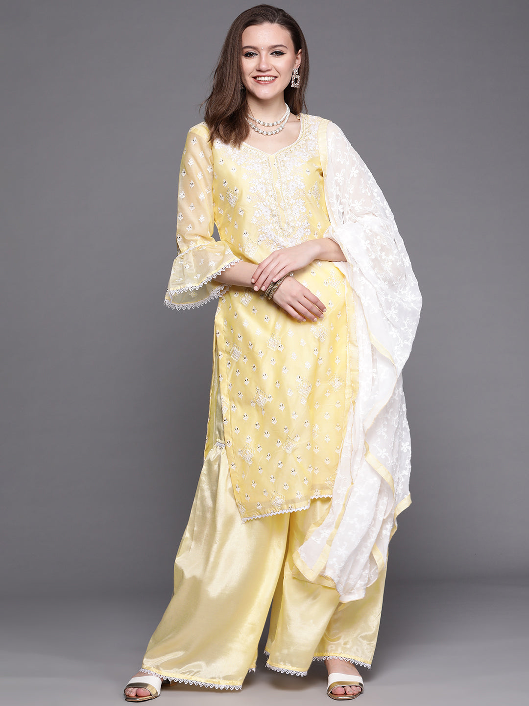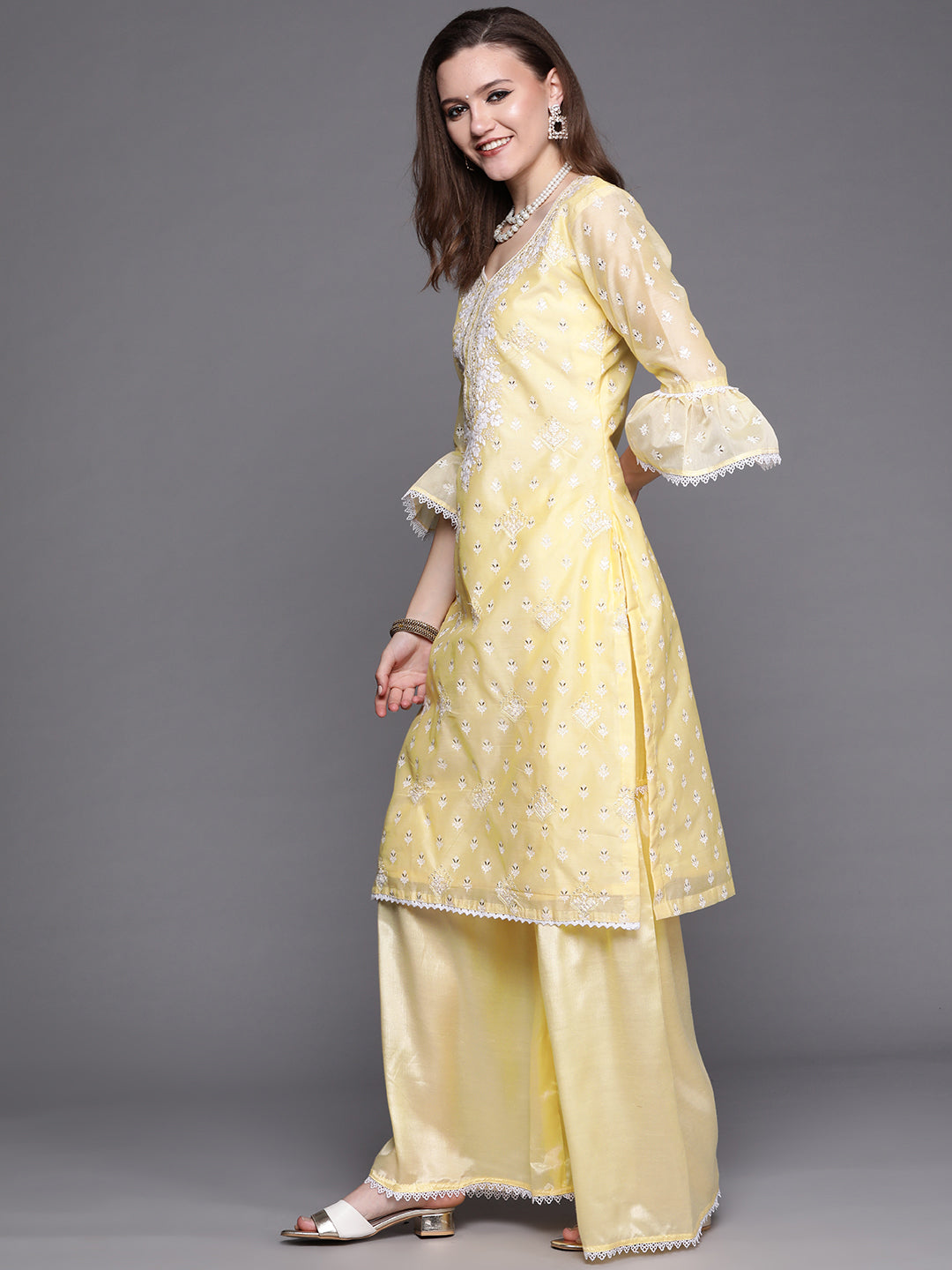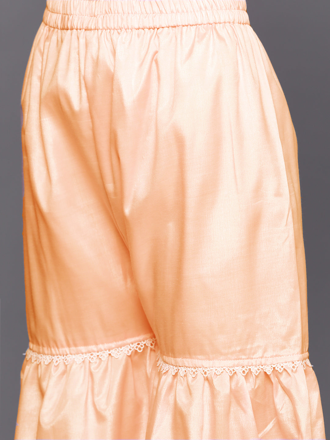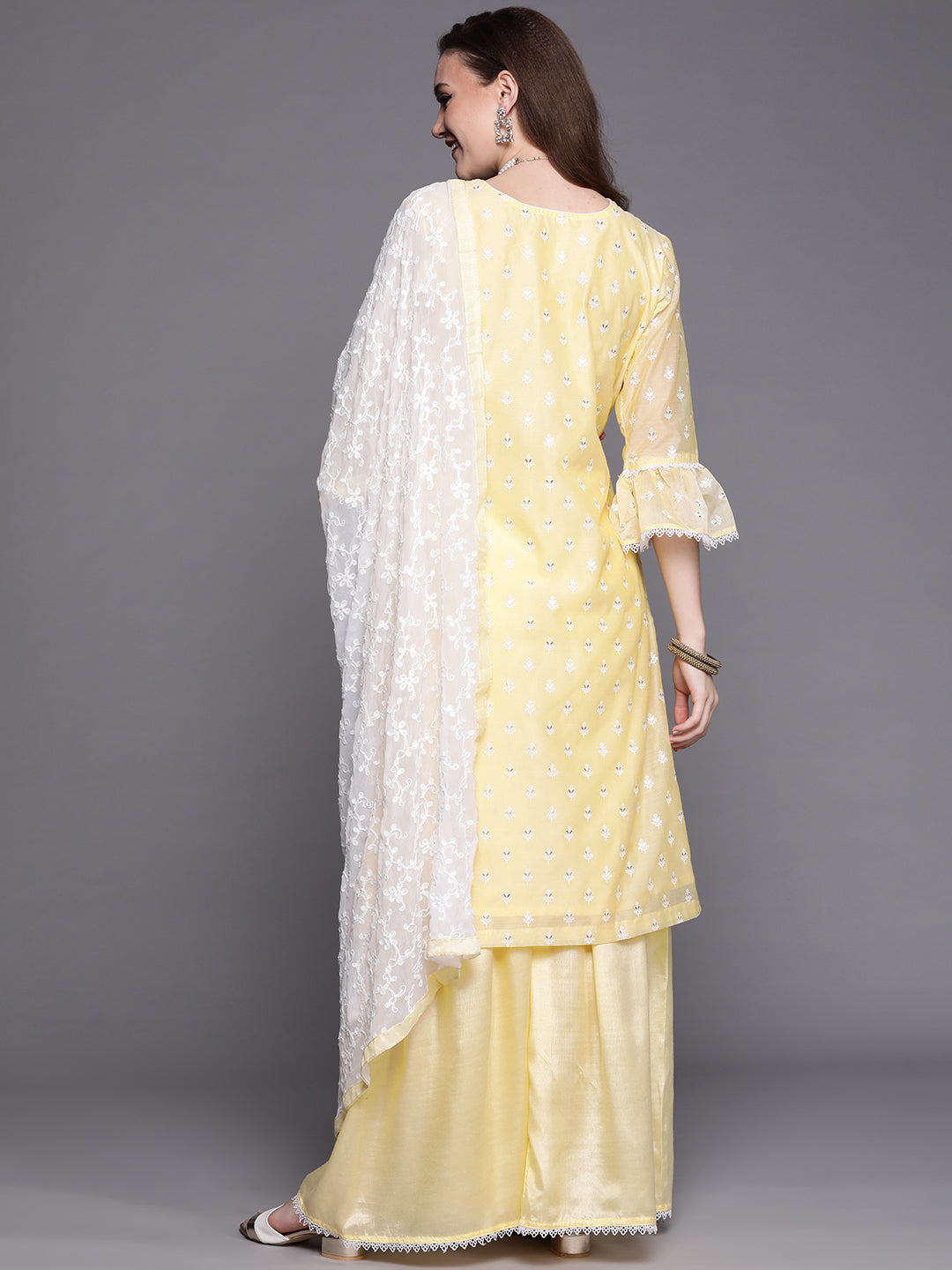 Ikat Inspired Cotton Stitched Kurta Sharara Set With Chiffon Gotta Patti Dupatta