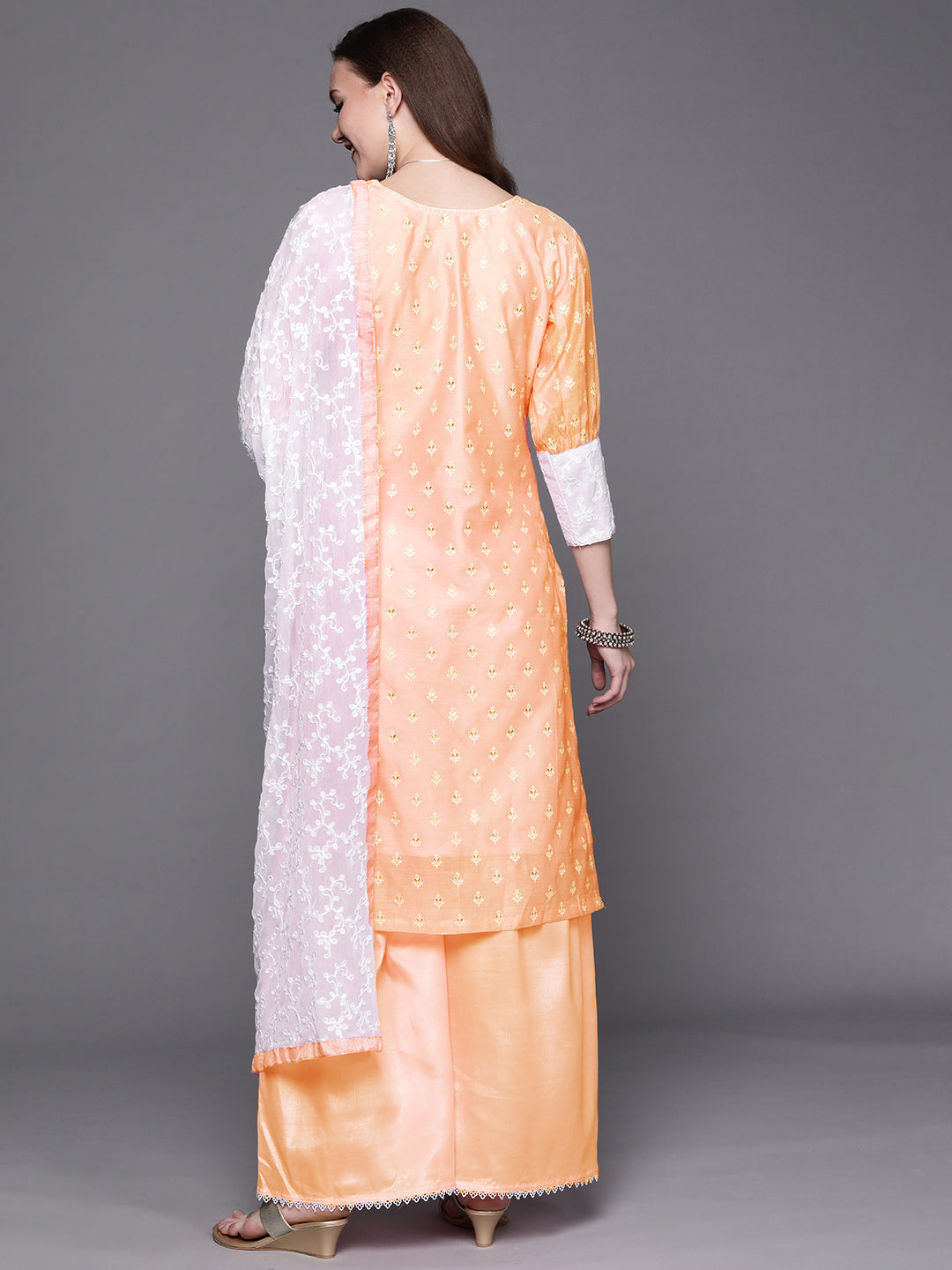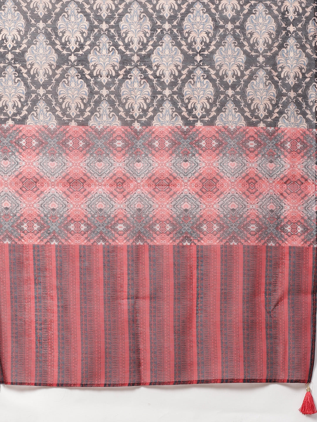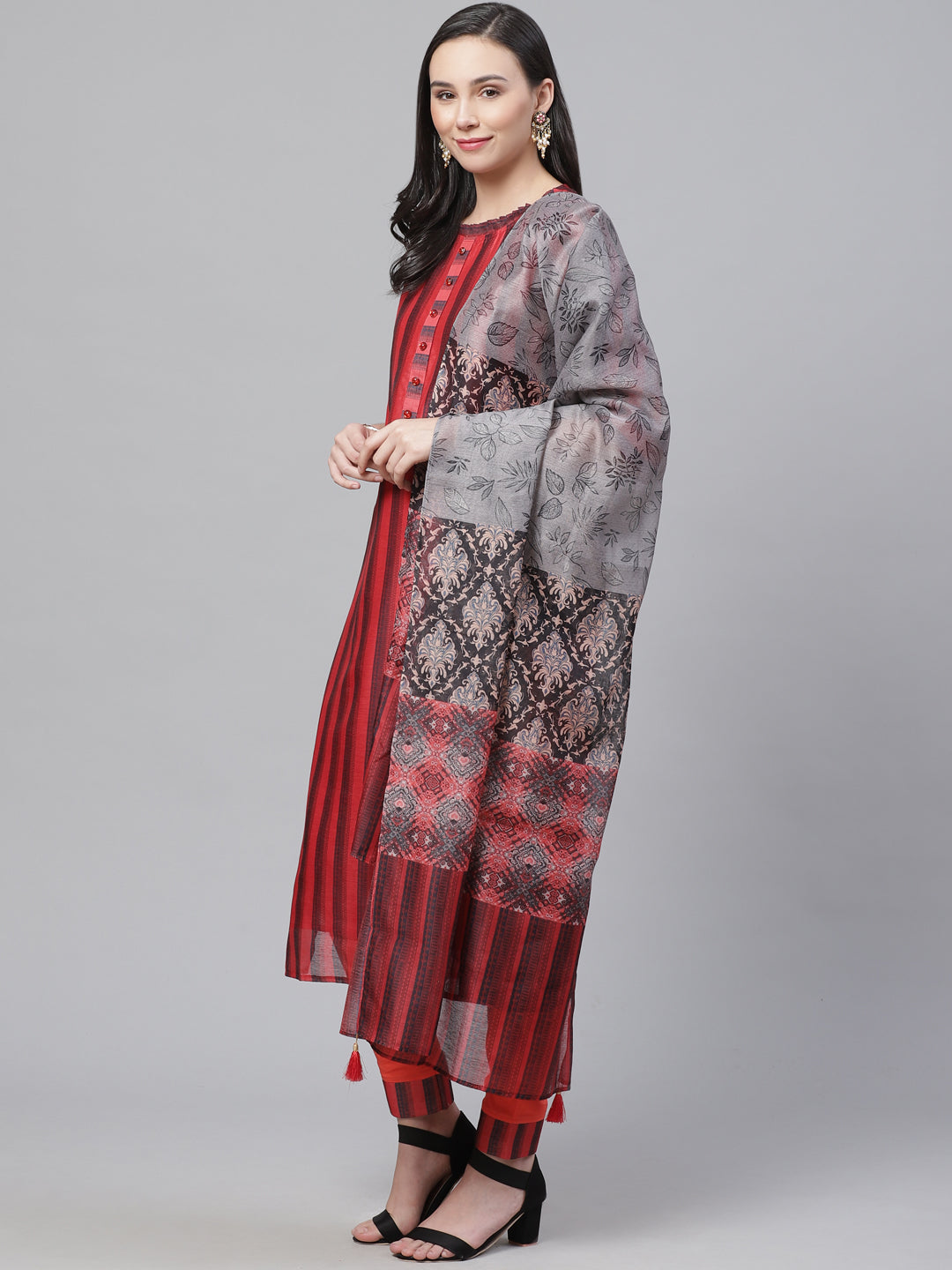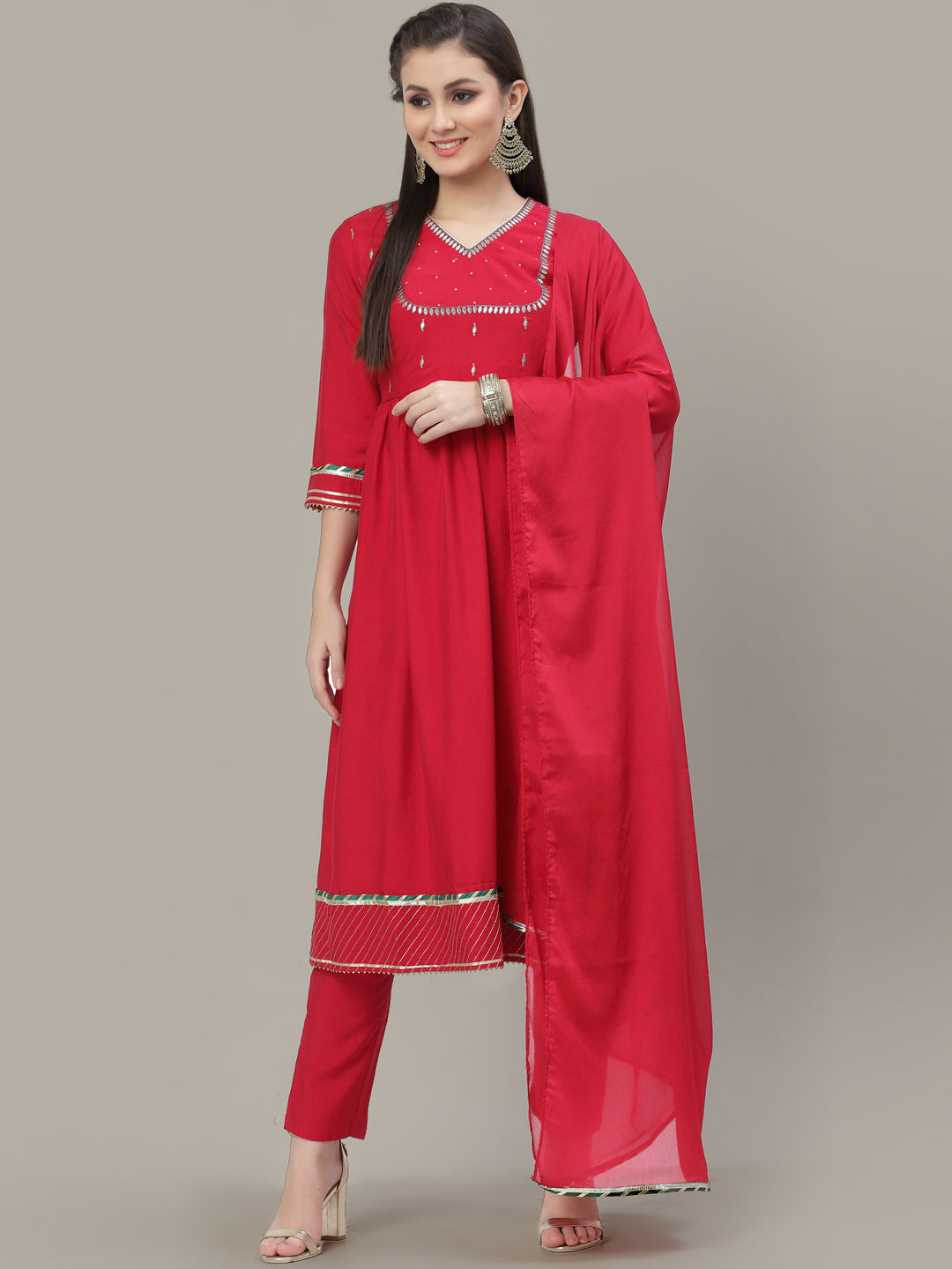 Ikat Inspired Cotton Stitched Kurta Sharara Set With Chiffon Gotta Patti Dupatta