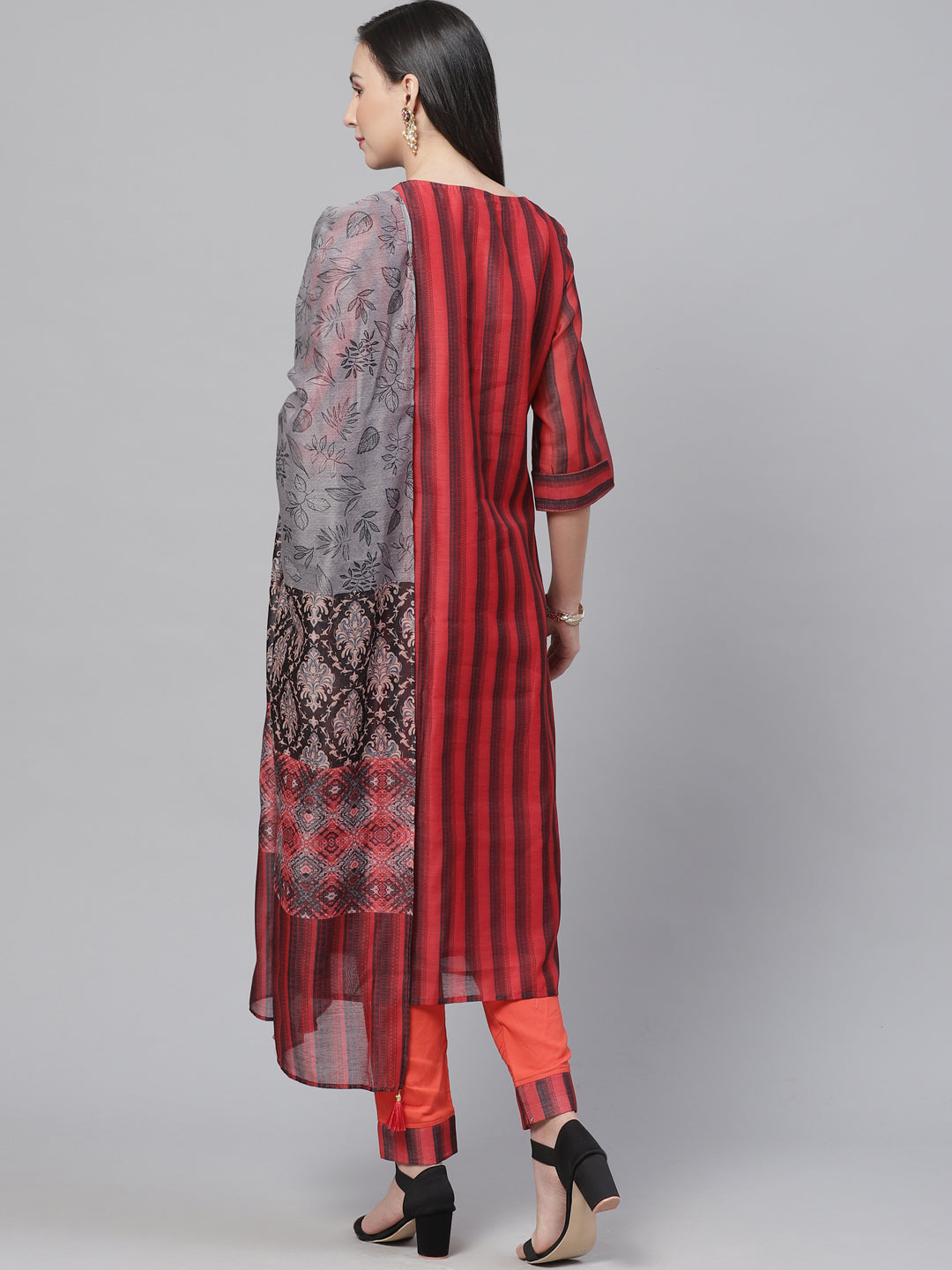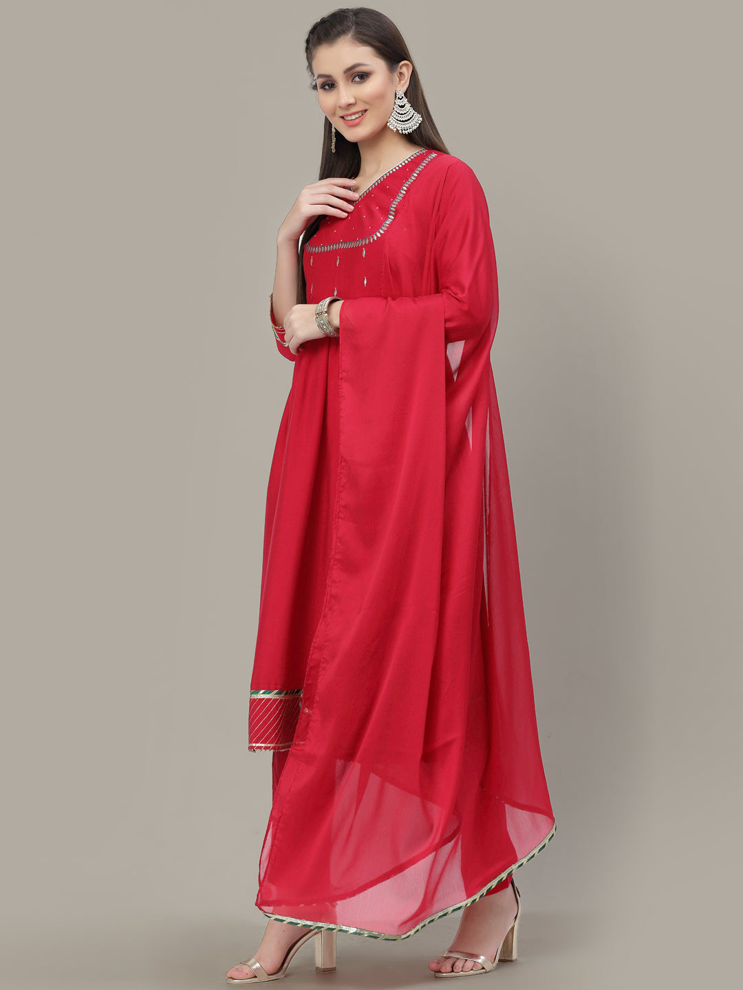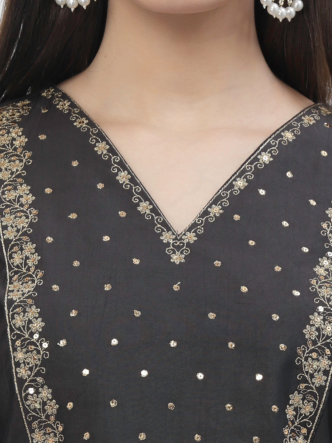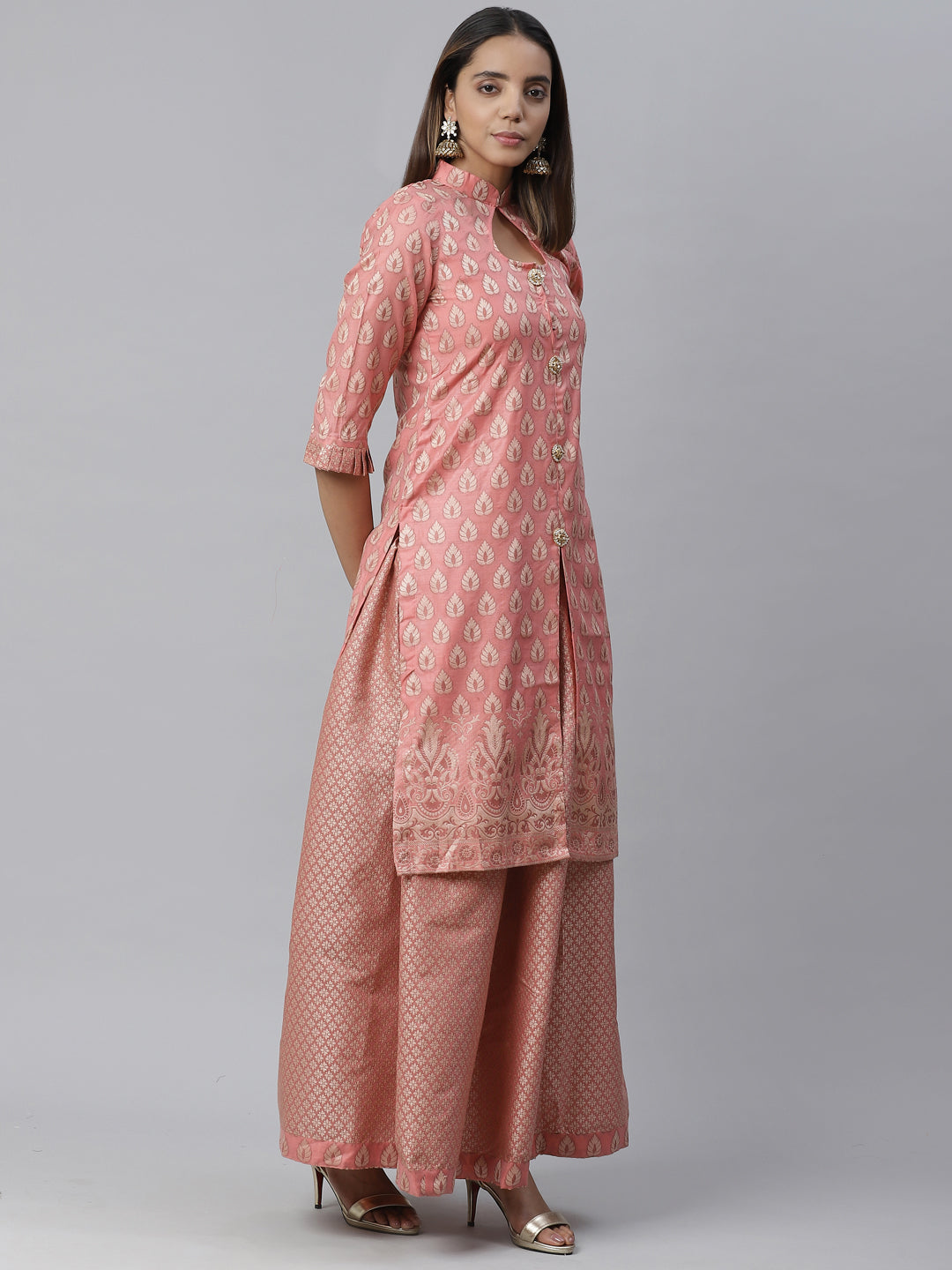 Ikat Inspired Cotton Stitched Kurta Sharara Set With Chiffon Gotta Patti Dupatta