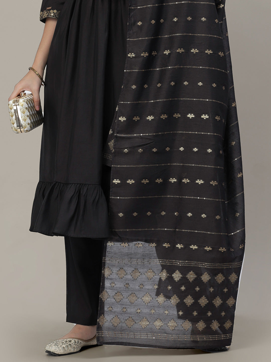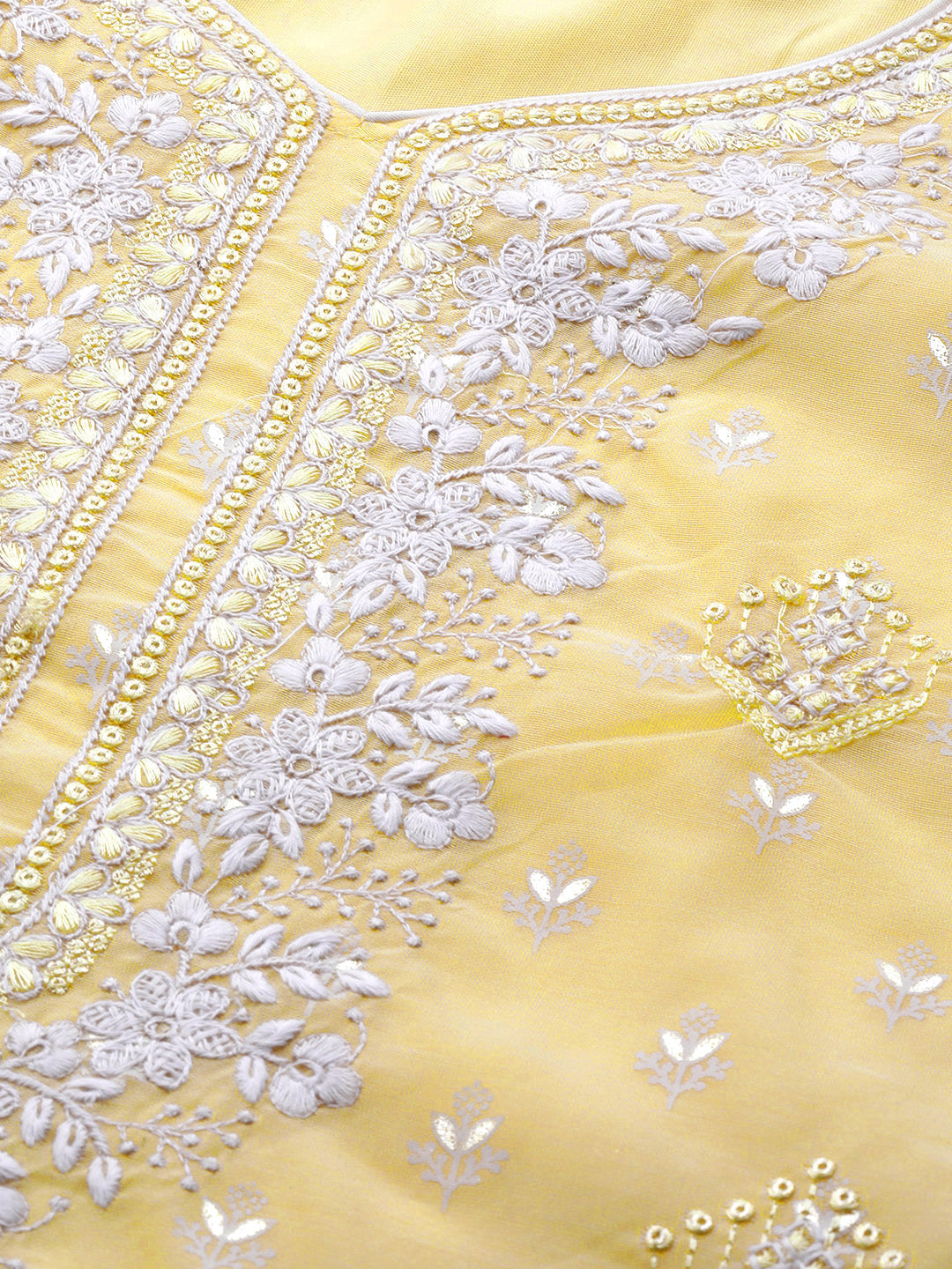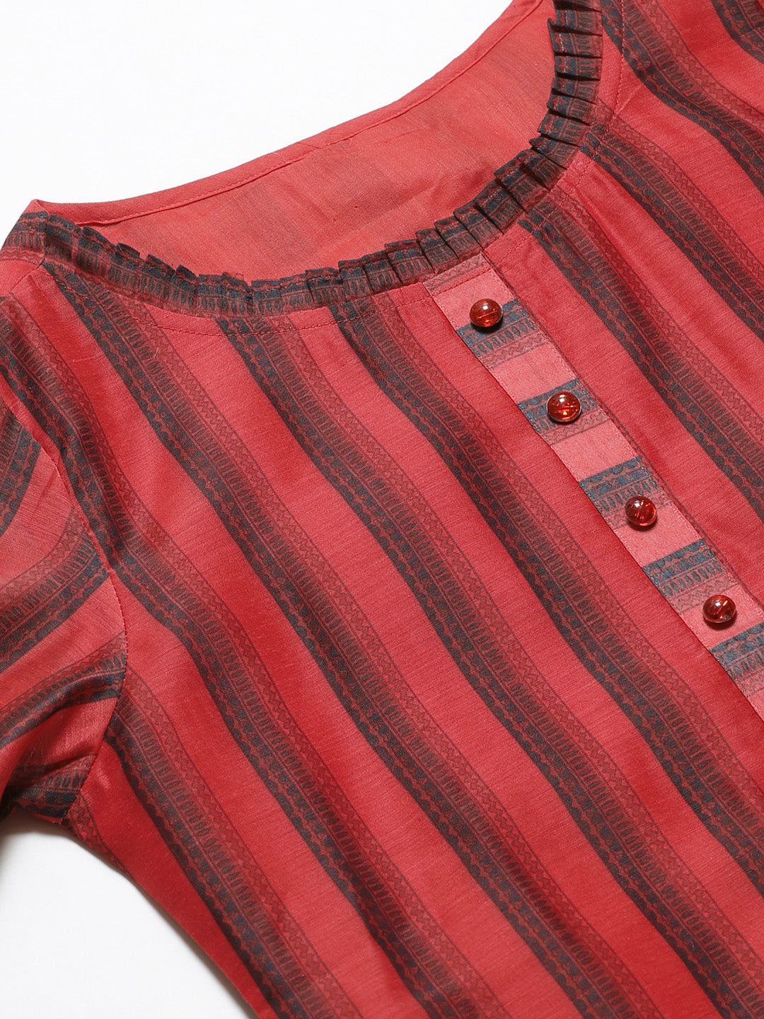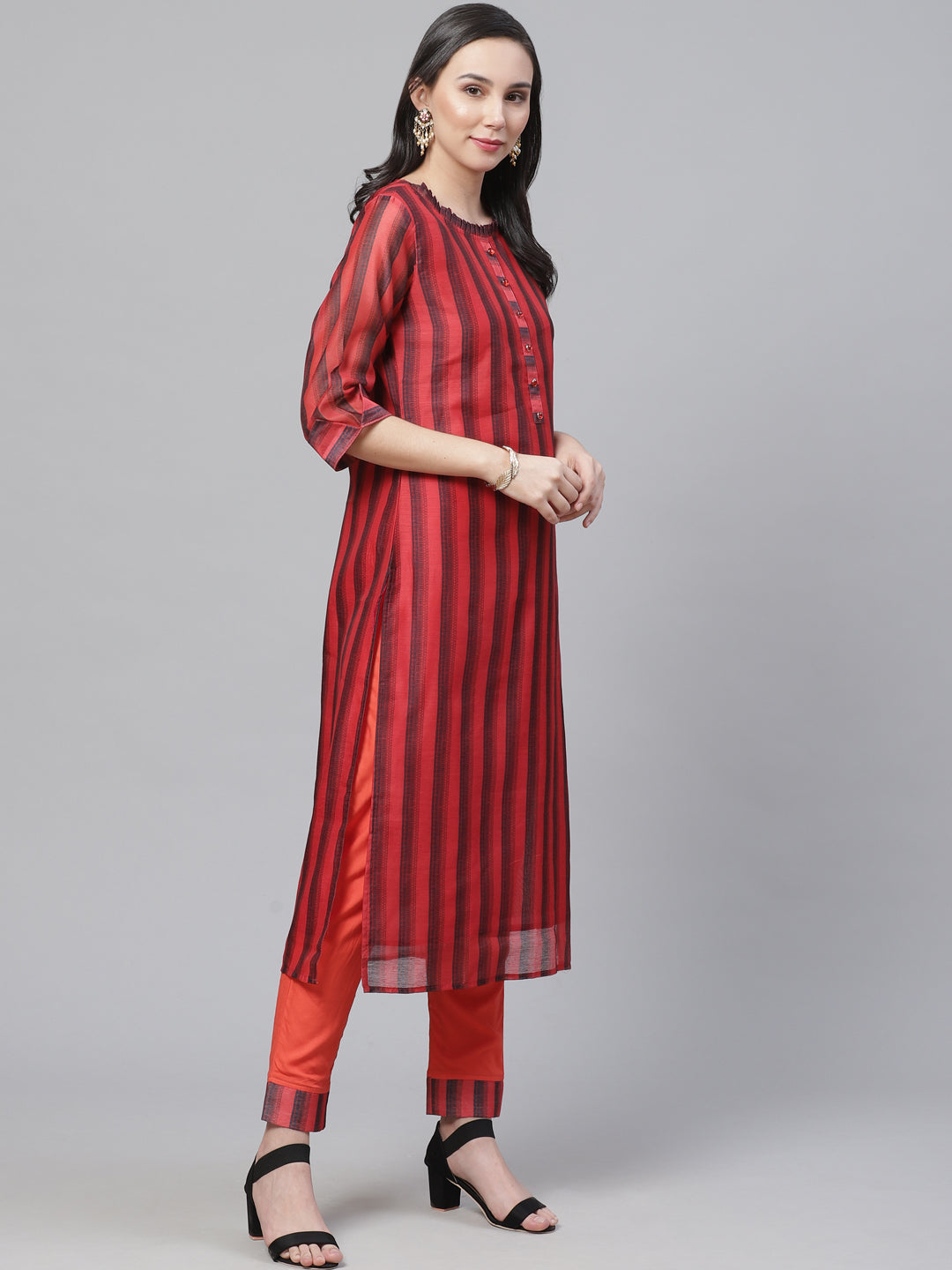 Ikat Inspired Cotton Stitched Kurta Sharara Set With Chiffon Gotta Patti Dupatta