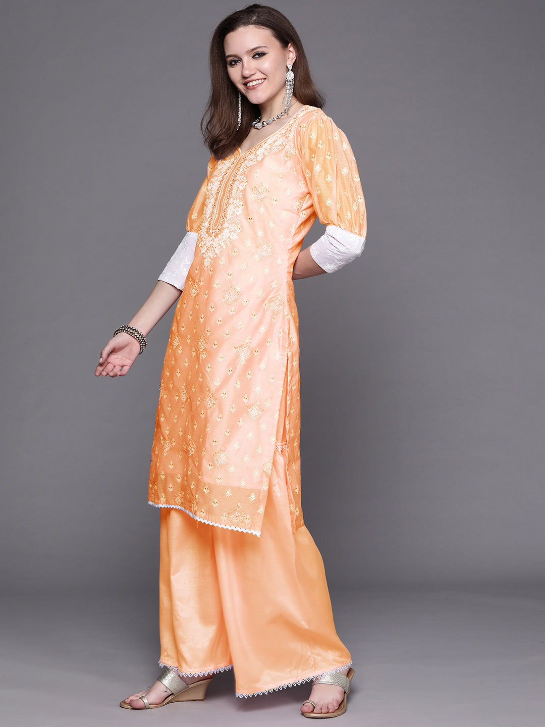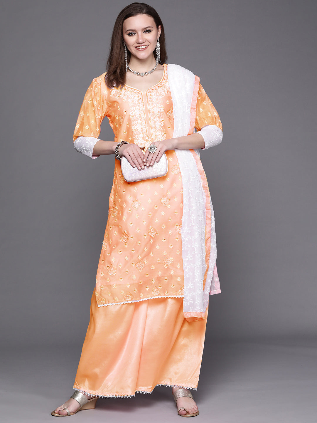 Chhabra 555 Ikat Inspired Cotton Stitched Kurta Sharara Set With Chiffon Gotta Patti Dupatta
