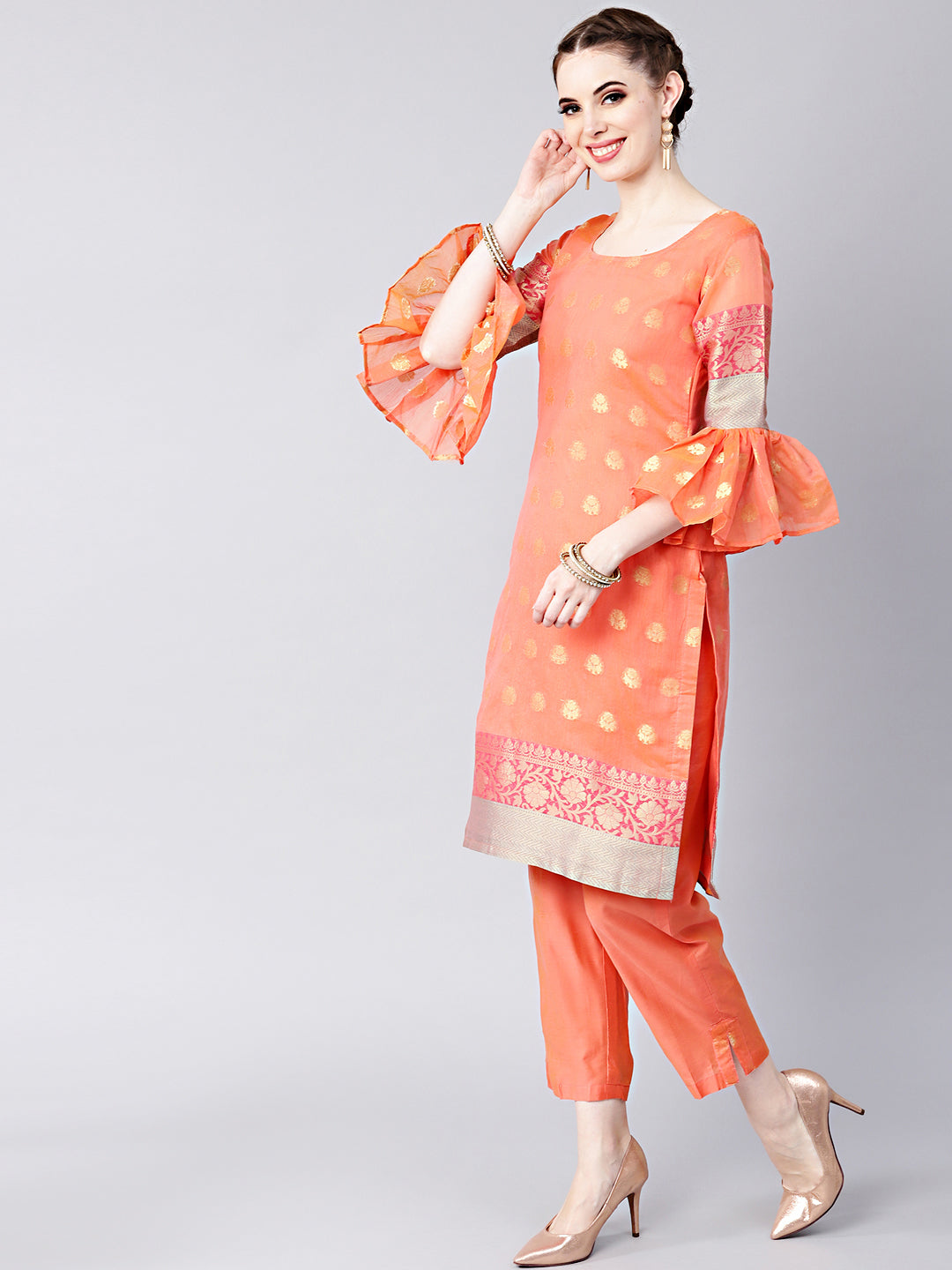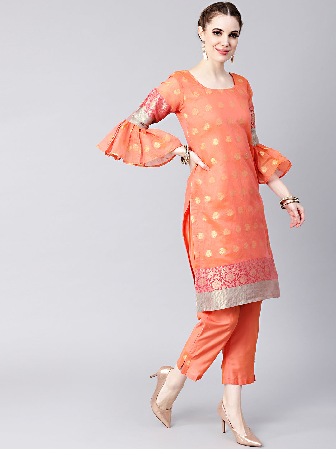 Handloom Banarasi Kurta Pants Set with Zari woven dupatta