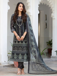 Chhaba 555 Black Printed & Mirror Work Embellished Straight Kurta With Solid Pant & Printed Dupatta