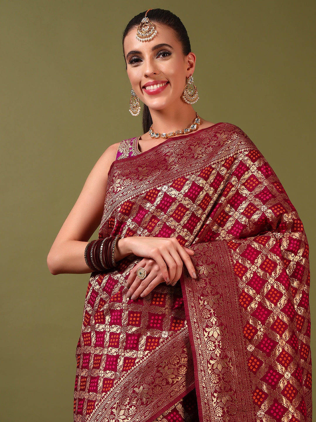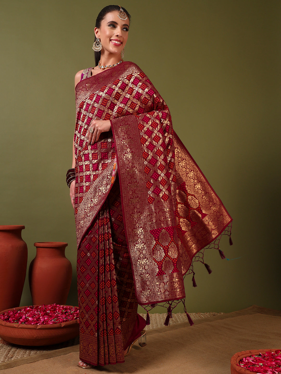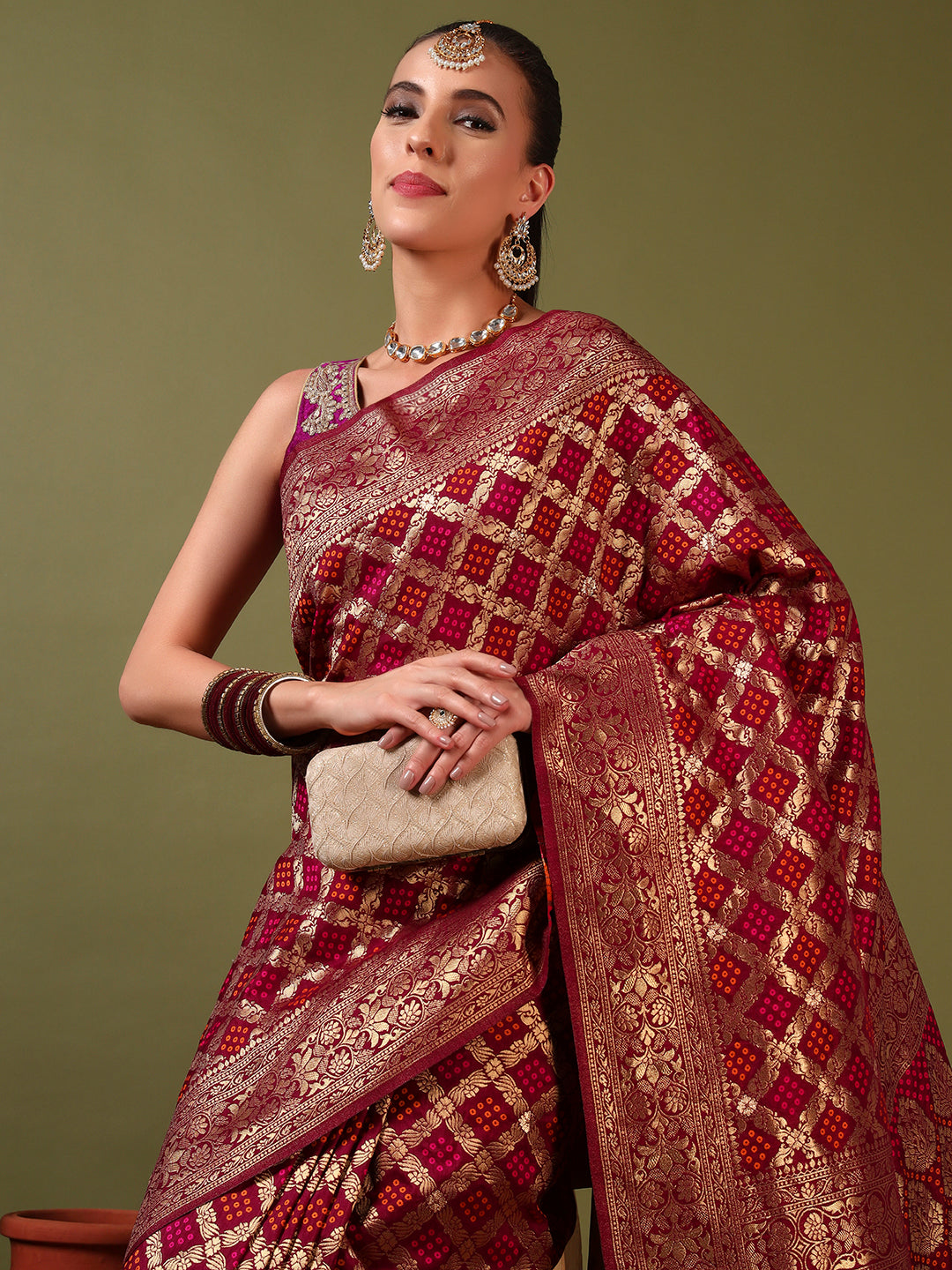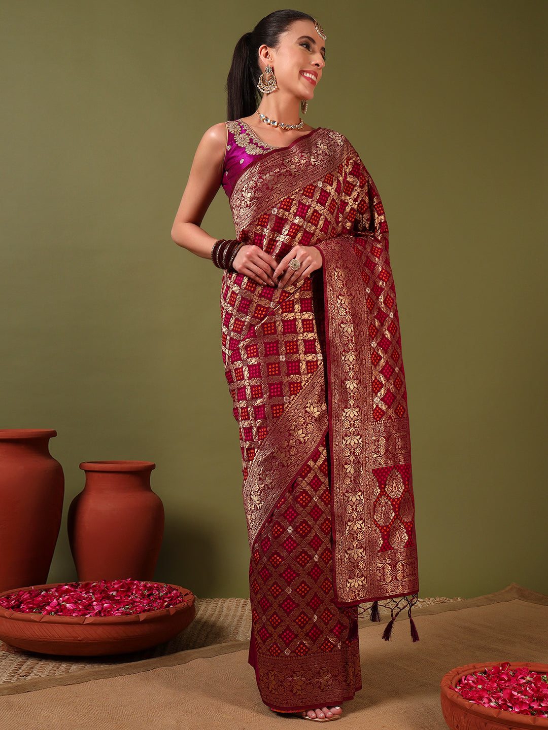 Chhabra 555 Banarasi Handloom saree with Lattice Weaving & Crystal Embellished Heart Motif Border