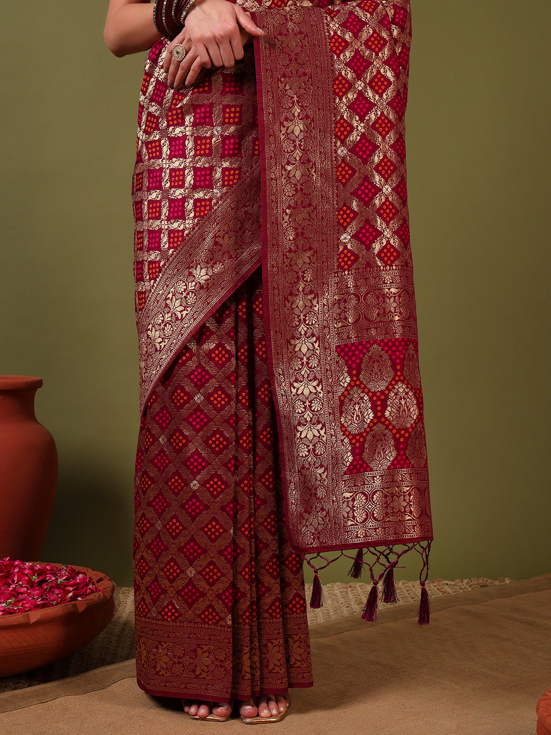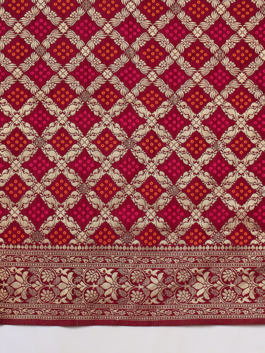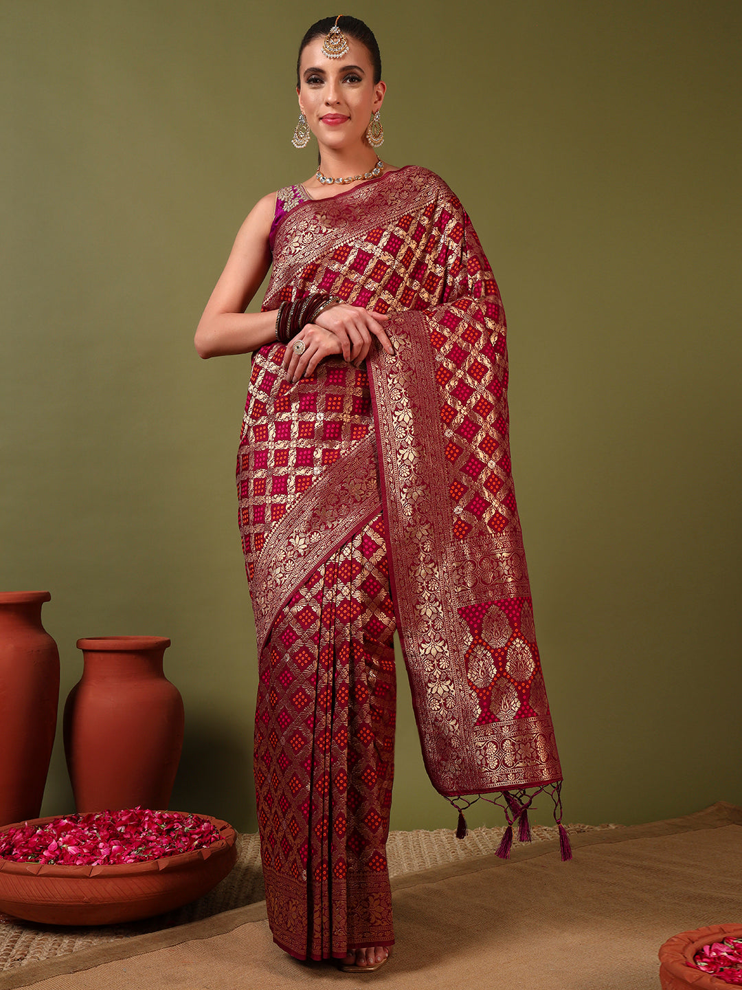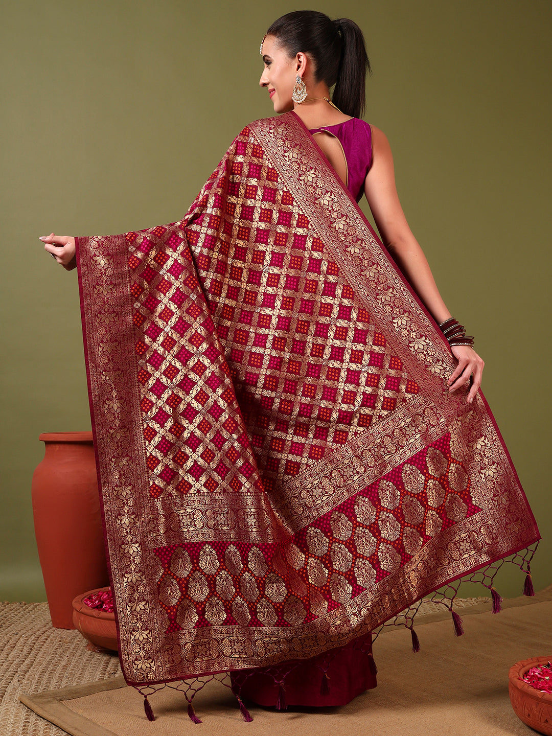 Chhabra 555 Banarasi Handloom saree with Lattice Weaving & Crystal Embellished Heart Motif Border