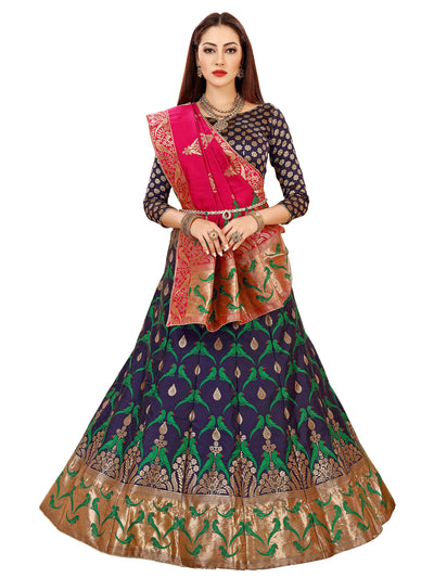 Animal Motif Zari Sequin Embroidered Lehenga with Dupatta