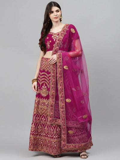 Chhabra 555 Semi-Stitched Ethnic Motif Embroidery Net Pleated Lehenga Set & Velvet Cut-Work Border
