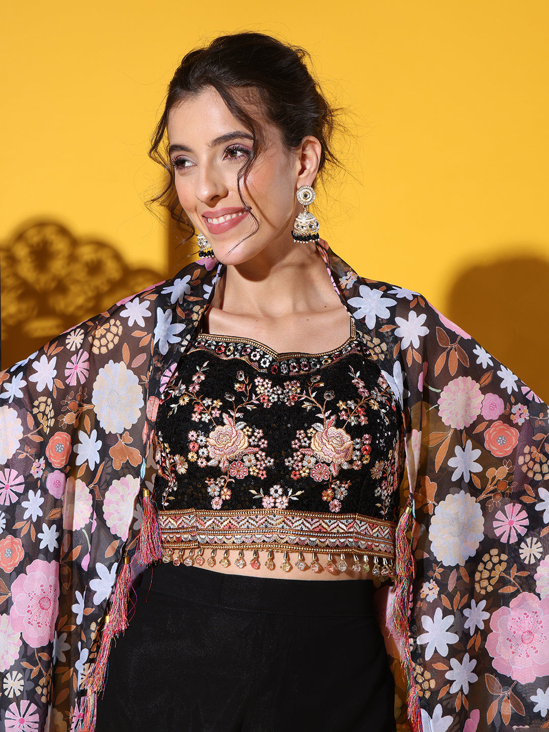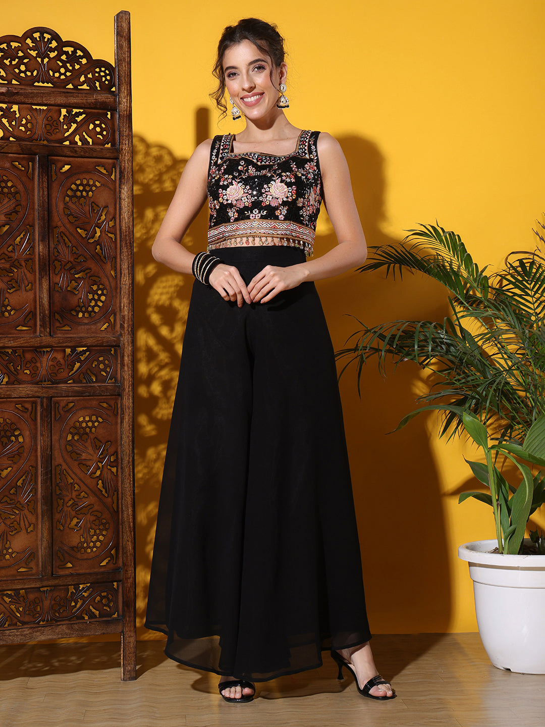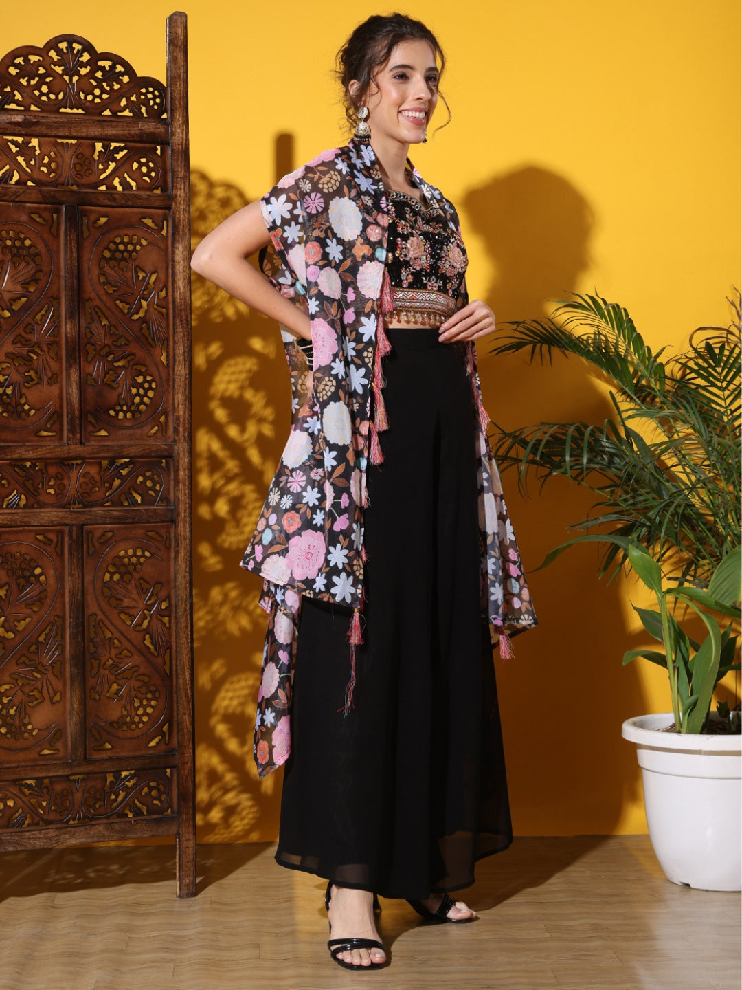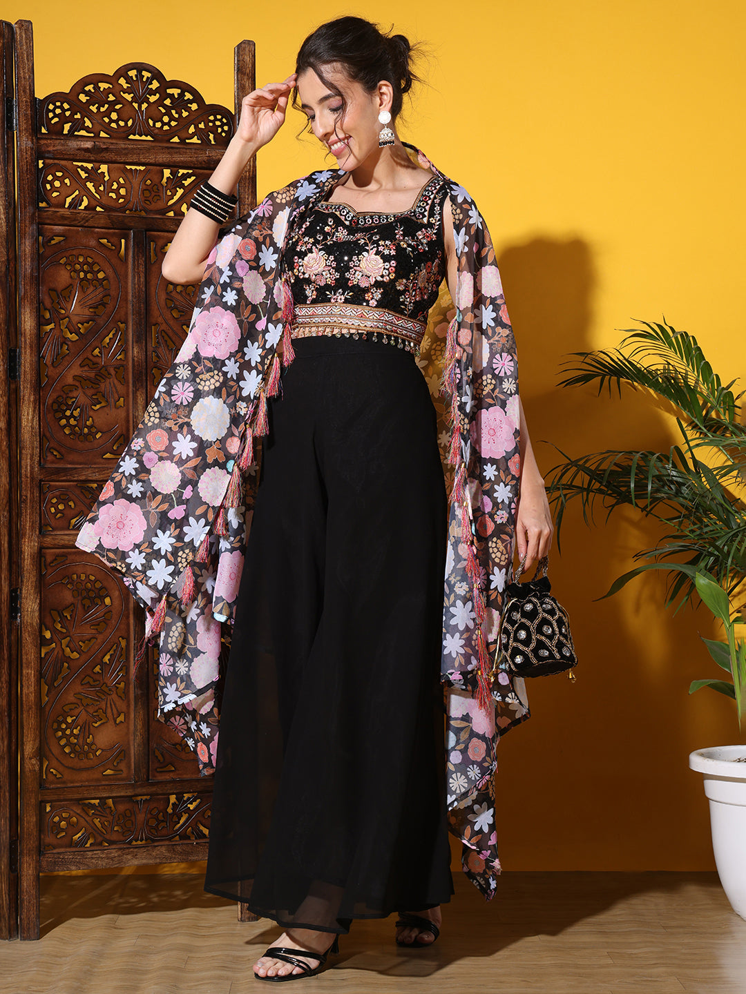 Ikat Inspired Cotton Stitched Kurta Sharara Set With Chiffon Gotta Patti Dupatta
