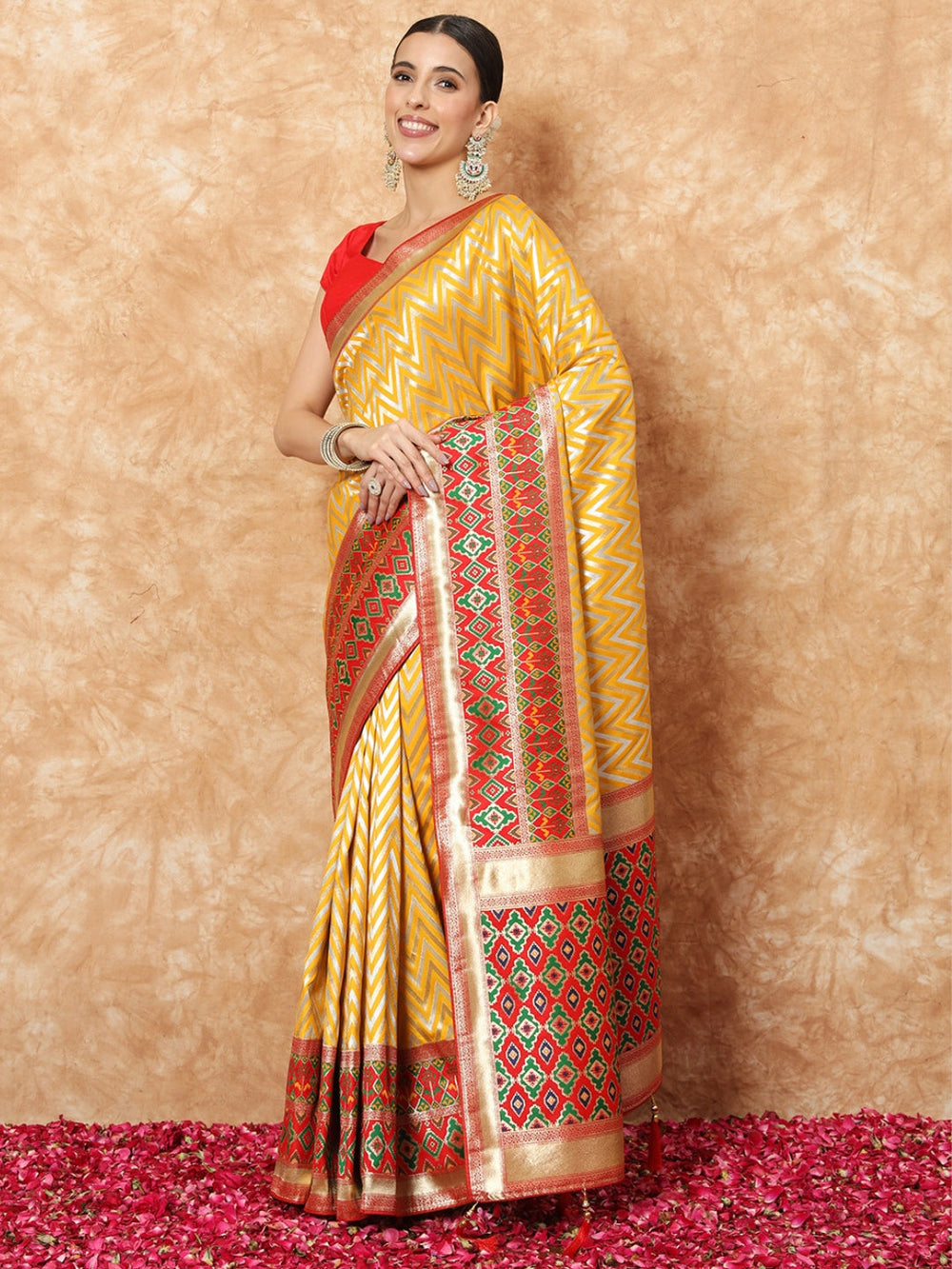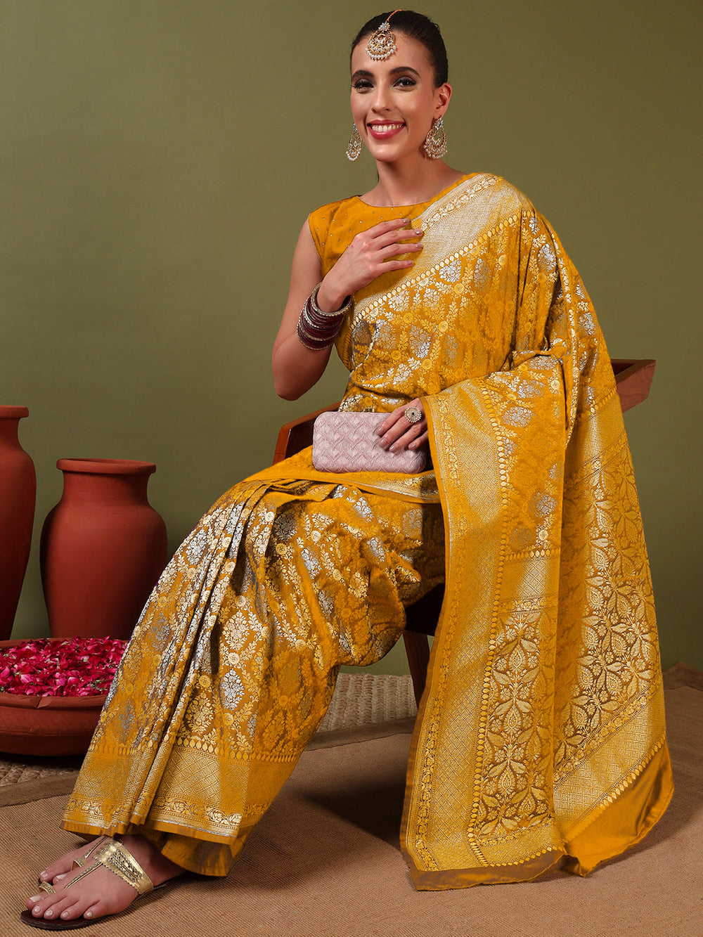 Yellow Jacquard Silk Woven Zari Saree with S…