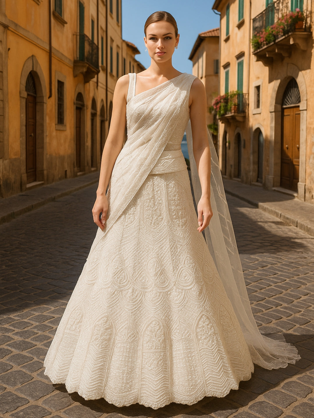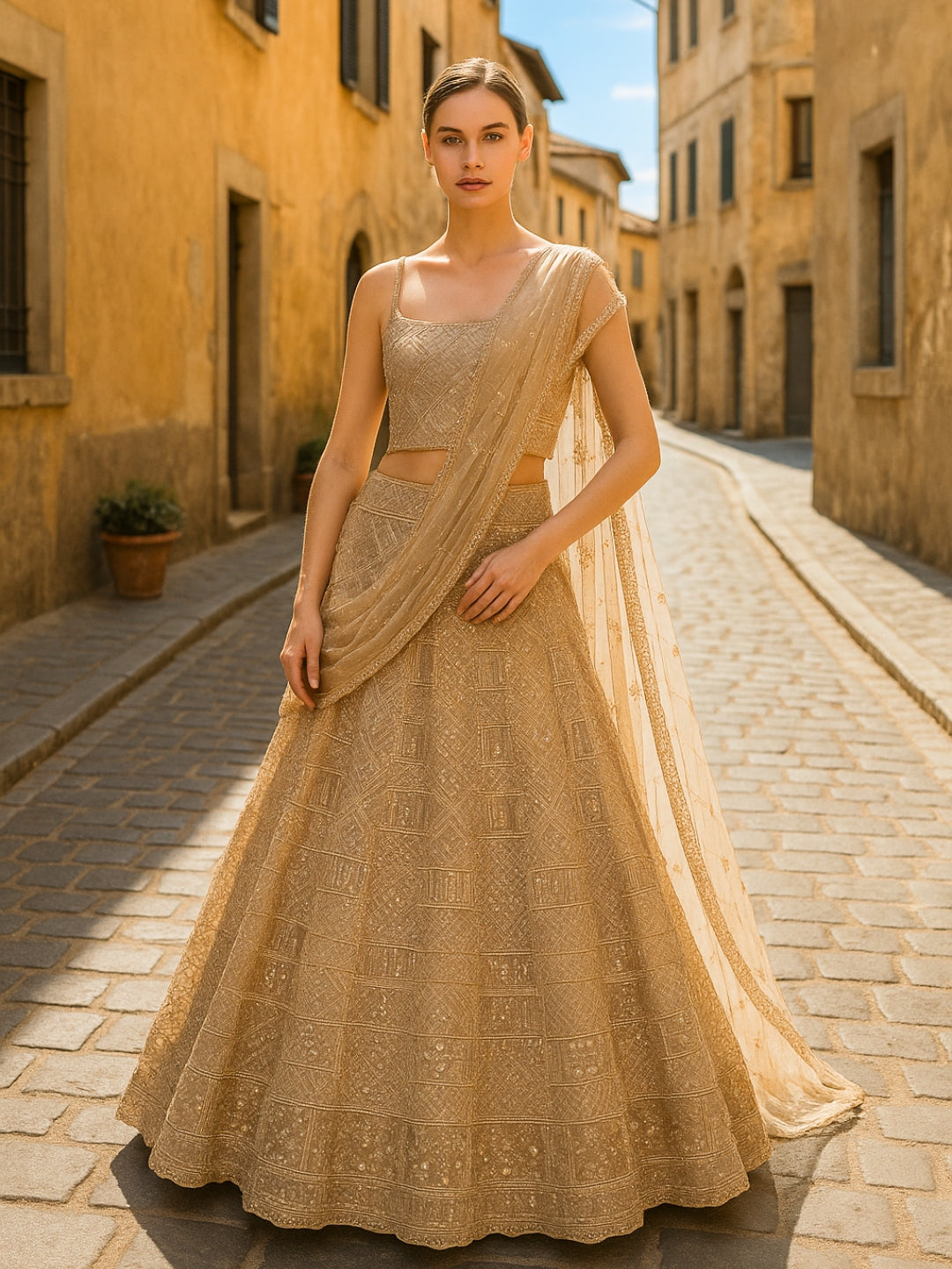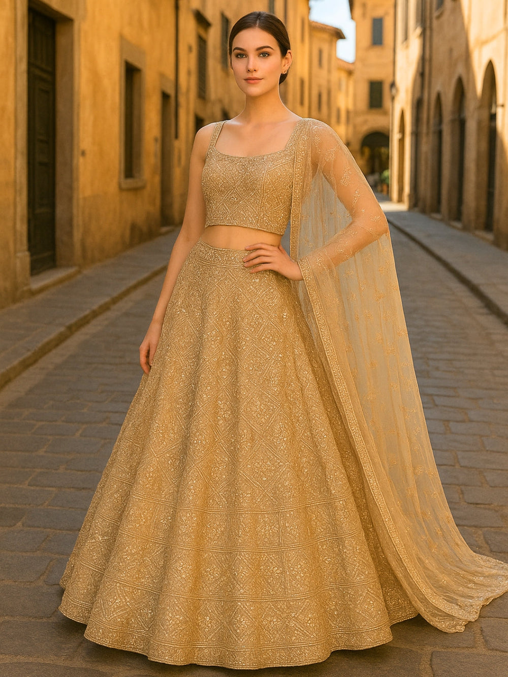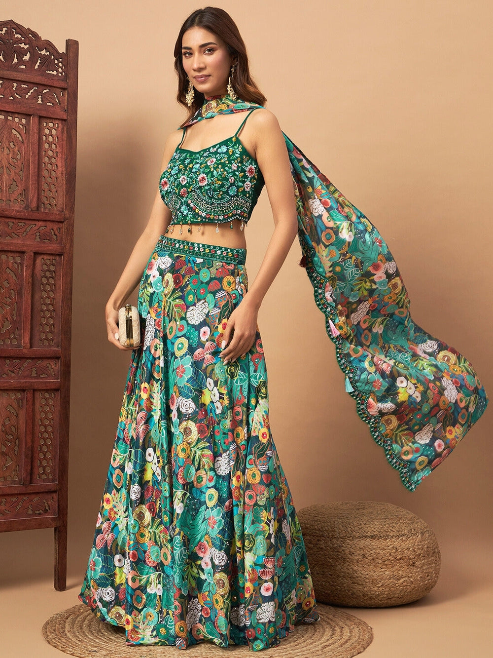 Sequinned Georgette Crop Top Palazzo Set with Shrug