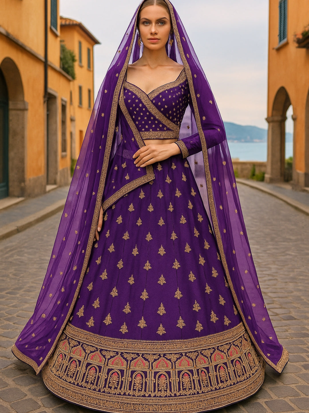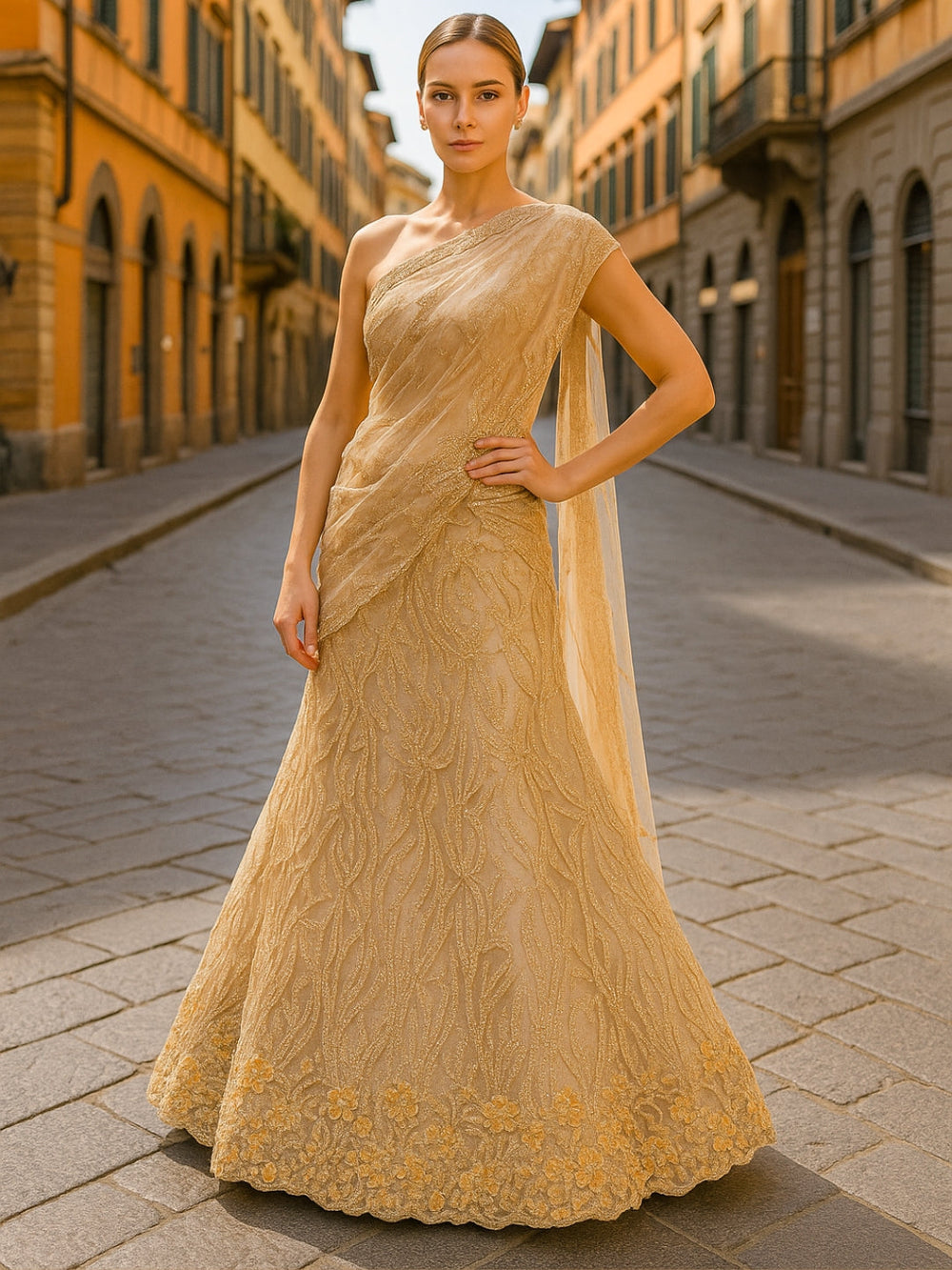 Two- Shade Gold Zari Resham Woven Banarasi Traditional Silk Saree
