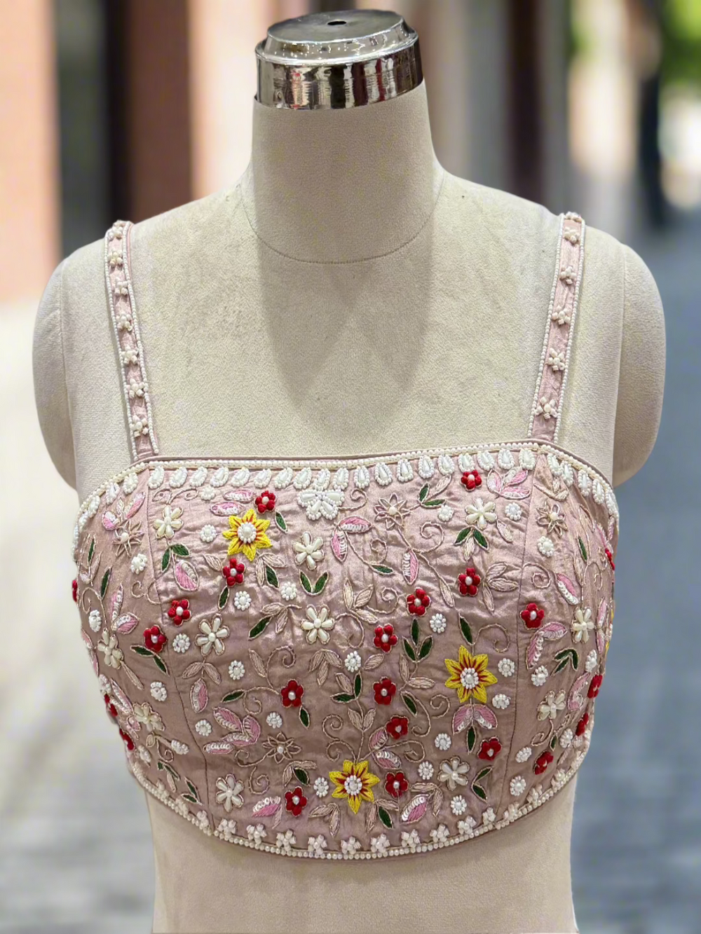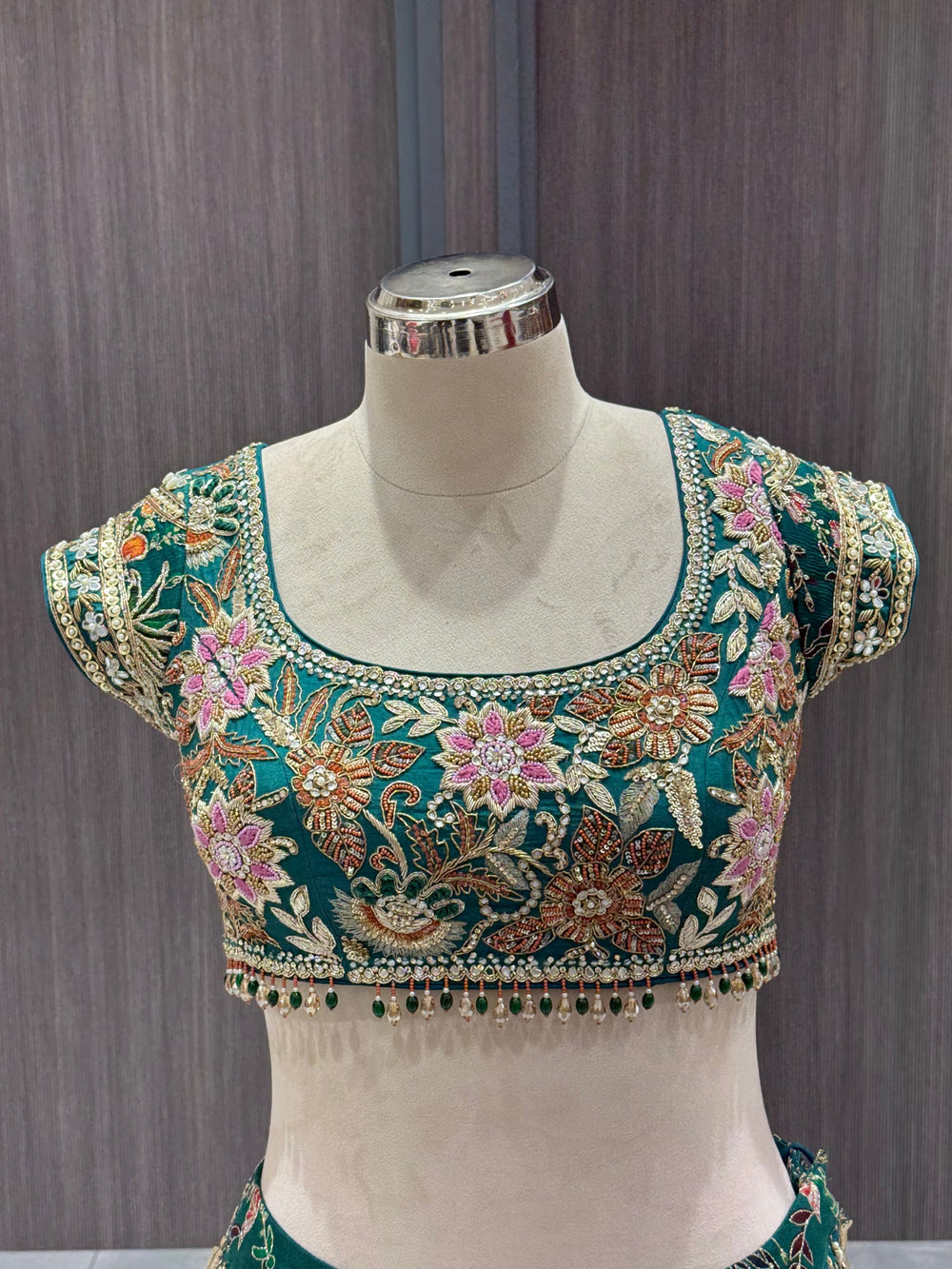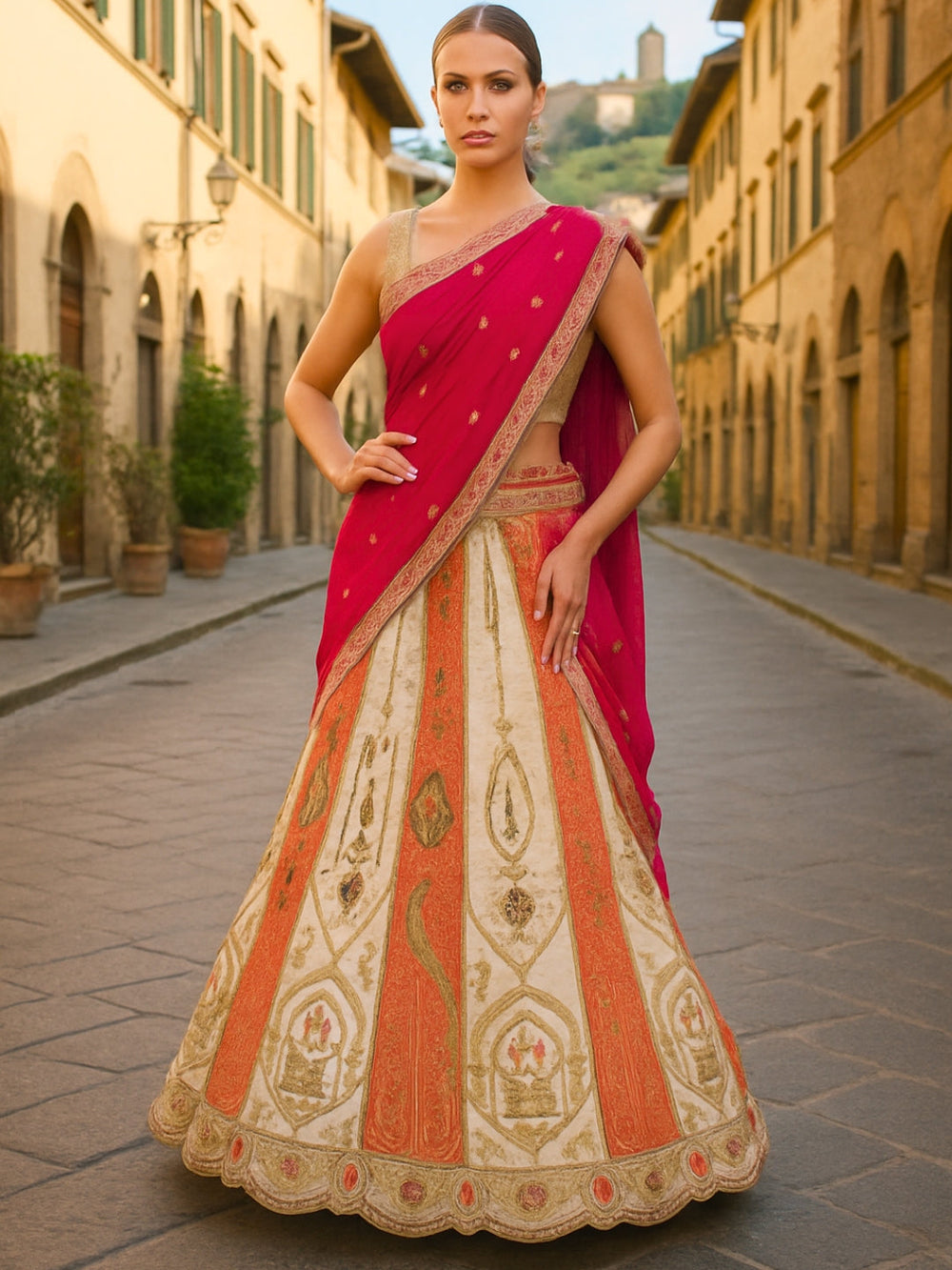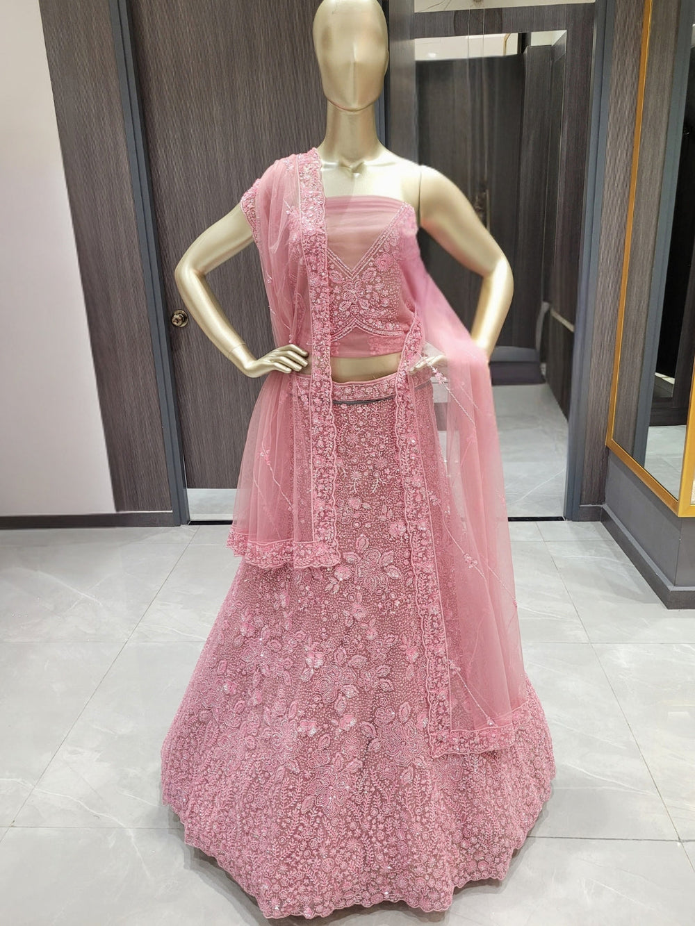 Chhabra 555 Rani Pink Sequin Embellished Crop-Top Palazzo Set with Jasmine style Cape Sleeves