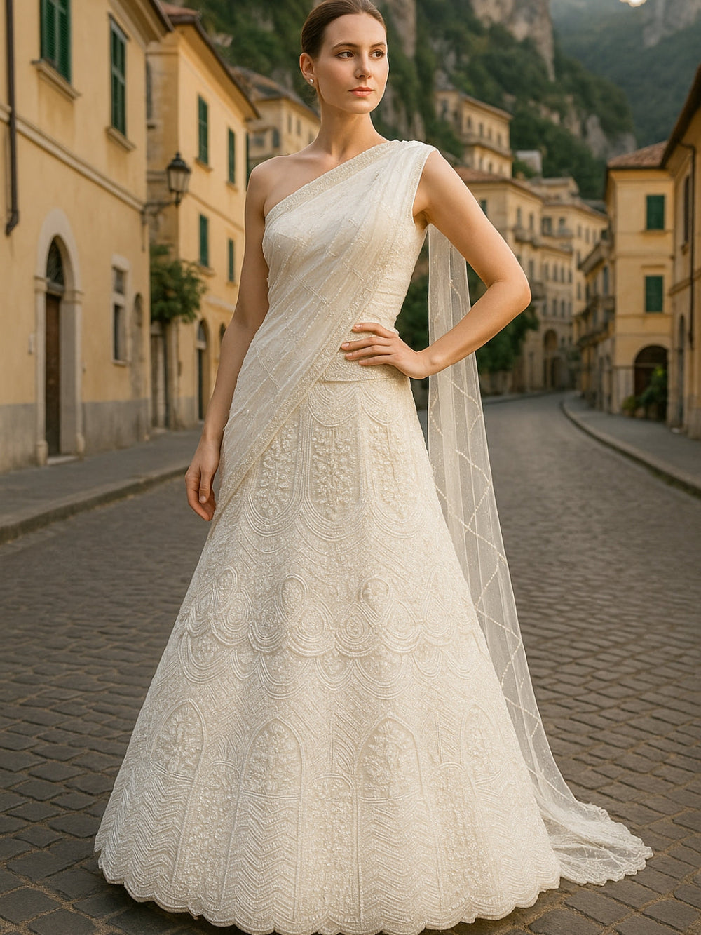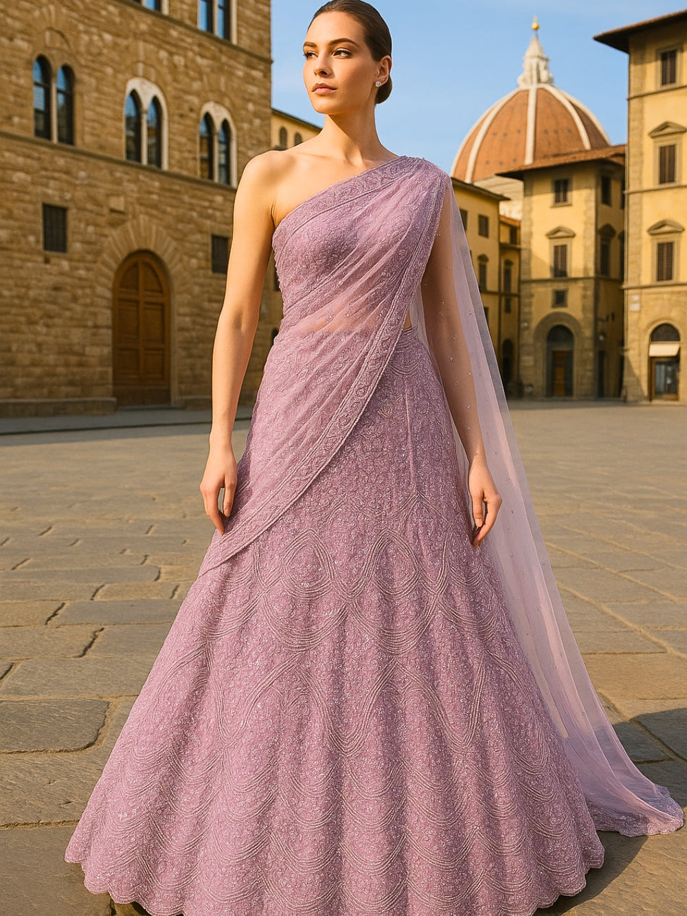 Rani Pink Sequin Embellished Crop-Top Palazzo Set with Jasmine style Cape Sleeves