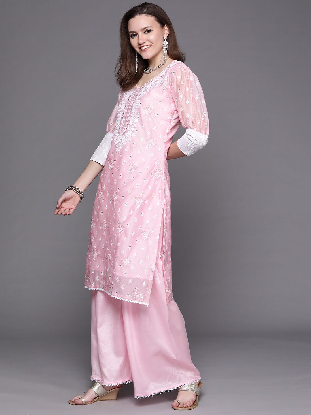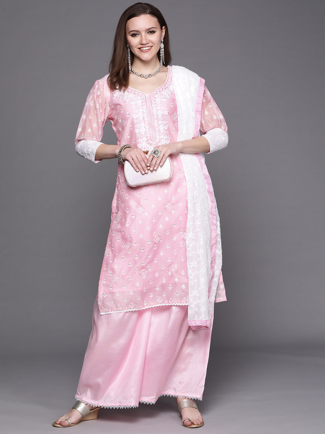 Ikat Inspired Cotton Stitched Kurta Sharara Set With Chiffon Gotta Patti Dupatta