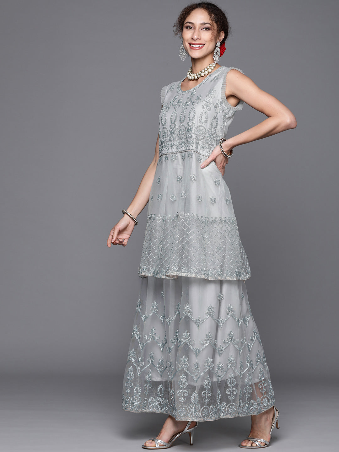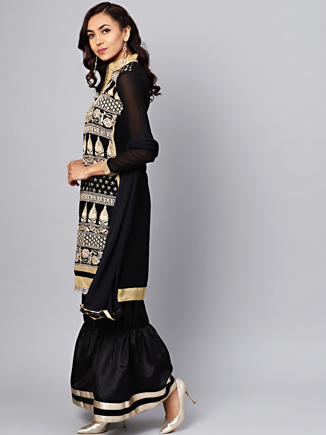 Chhabra 555 Black Embroidered Kurta Set with Crystal Embellishments and Pallazos