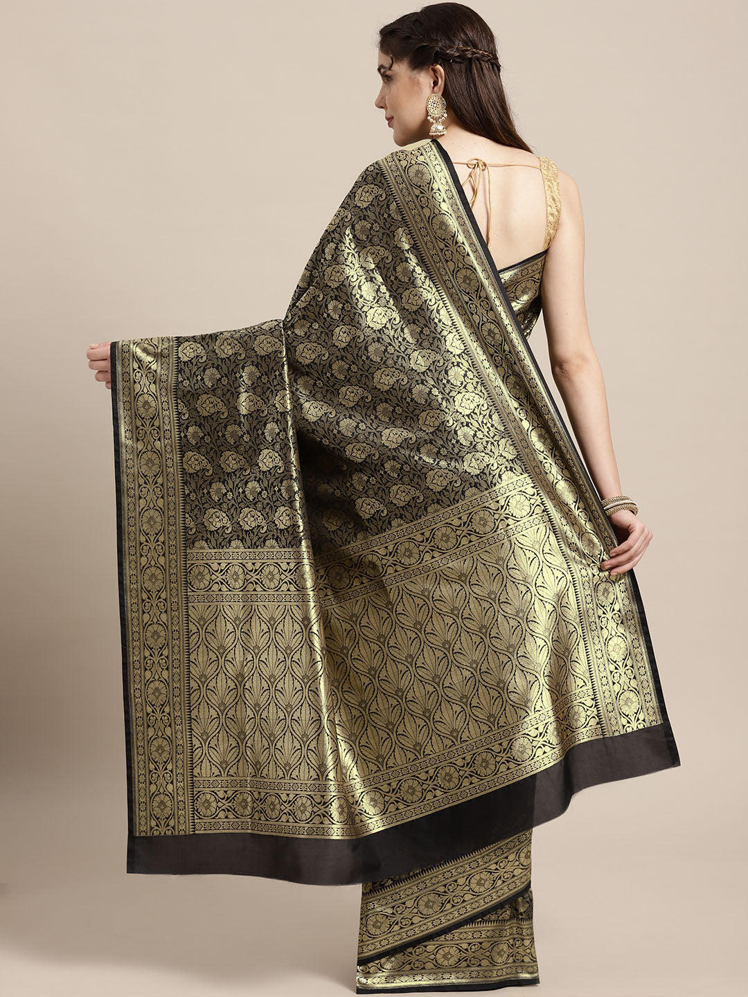 The CAD image gives a detailed look of the actual blouse piece that comes with this saree. The blouse used by the model in the pictures is only for styling purpose.
