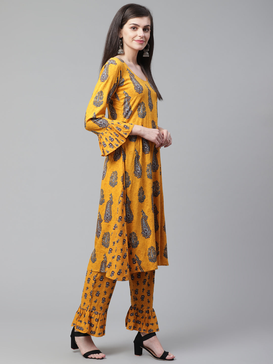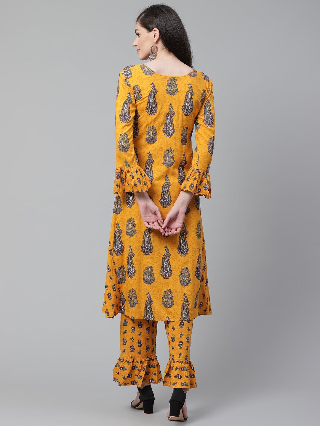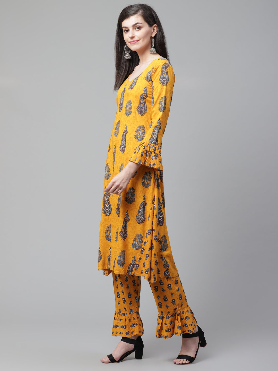 Made to Measure Mustard Banarasi Dhoti Kurta Set With Fabric Buttons, Handloom Dupatta