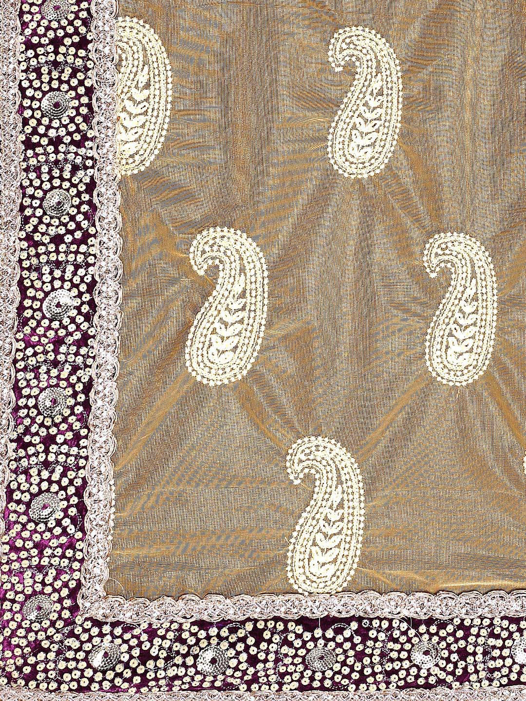 Pattern: Vertical patch panels with floral, paisley, peacock and geometric motifs, paired with floral vine embroidery and lattice sequin work on the dupatta border.