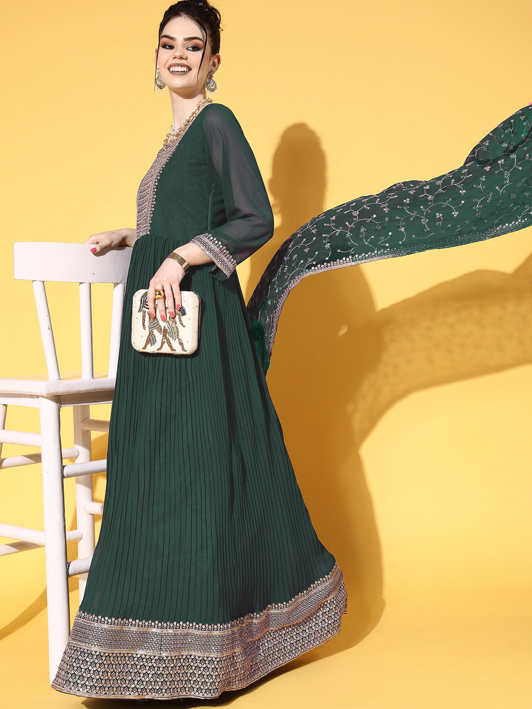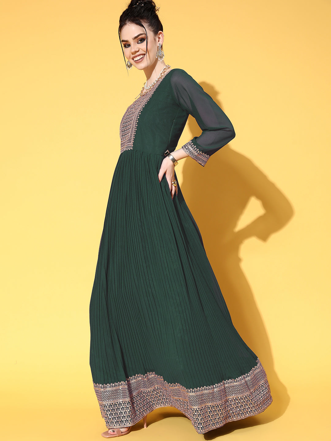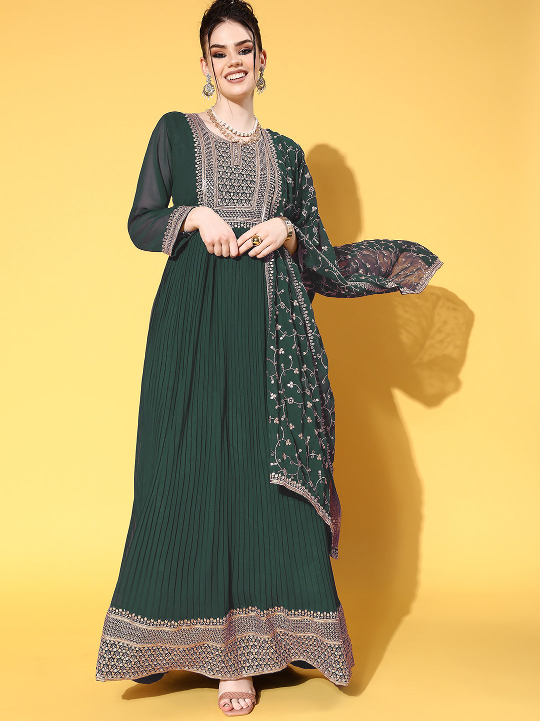 Choose from a wide range of styles including floor-length anarkali gowns, embroidered Indo-western gowns, sequined georgette gowns, and bridal partywear gowns, all crafted to turn heads at any event. Available in vibrant colors, rich embellishments, and sizes that flatter every body type.
