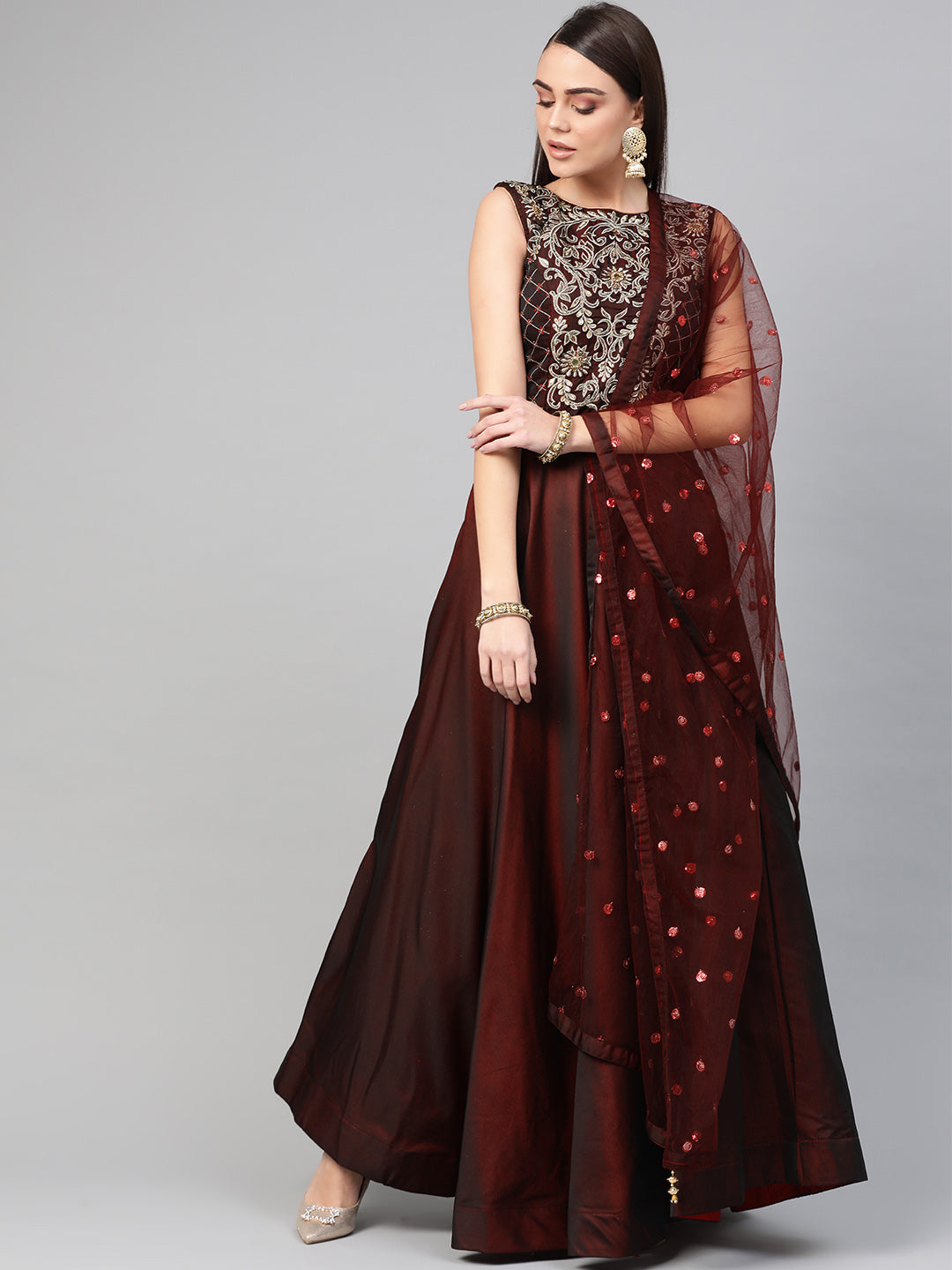 Choose from a wide range of styles including floor-length anarkali gowns, embroidered Indo-western gowns, sequined georgette gowns, and bridal partywear gowns, all crafted to turn heads at any event. Available in vibrant colors, rich embellishments, and sizes that flatter every body type.