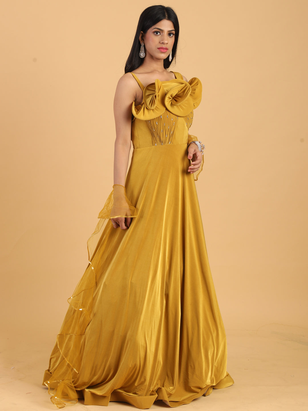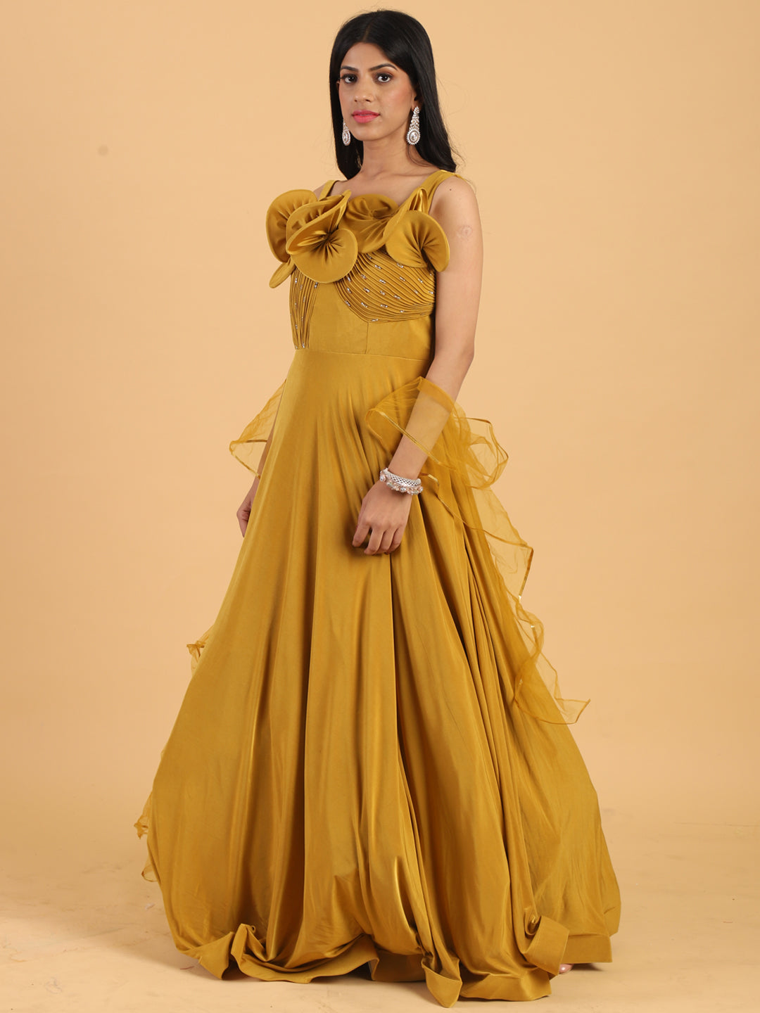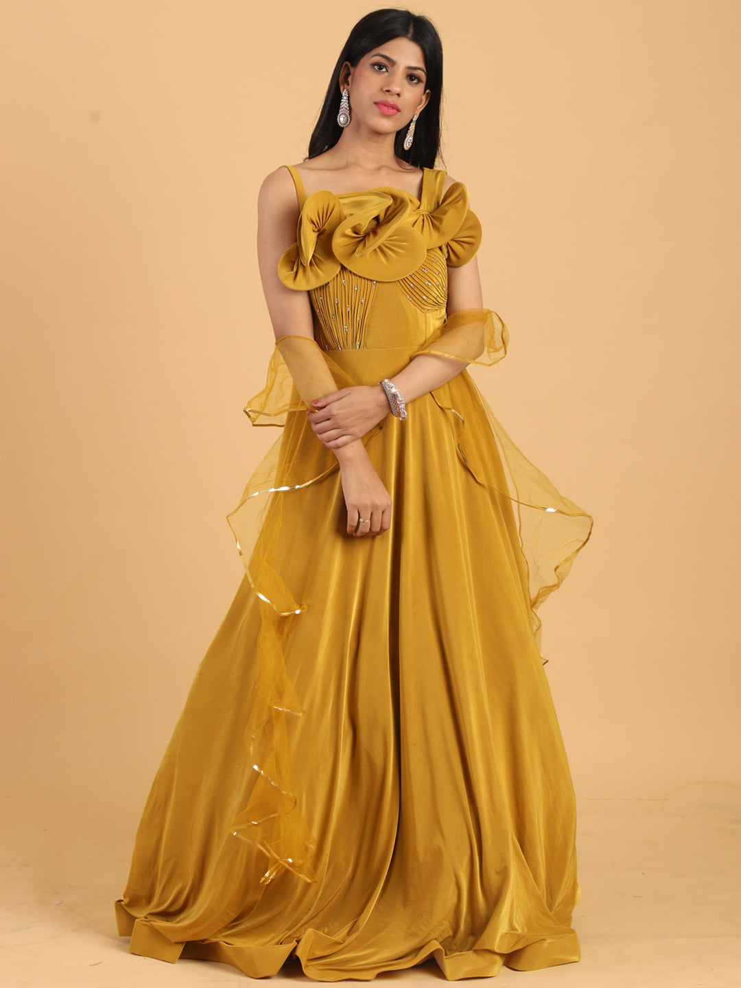 Choose from a wide range of styles including floor-length anarkali gowns, embroidered Indo-western gowns, sequined georgette gowns, and bridal partywear gowns, all crafted to turn heads at any event. Available in vibrant colors, rich embellishments, and sizes that flatter every body type.
