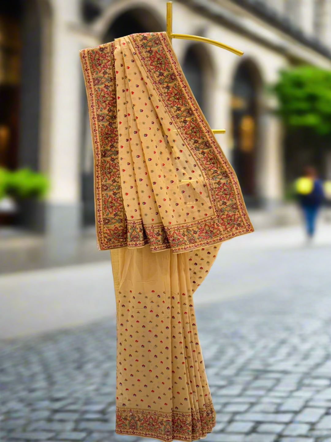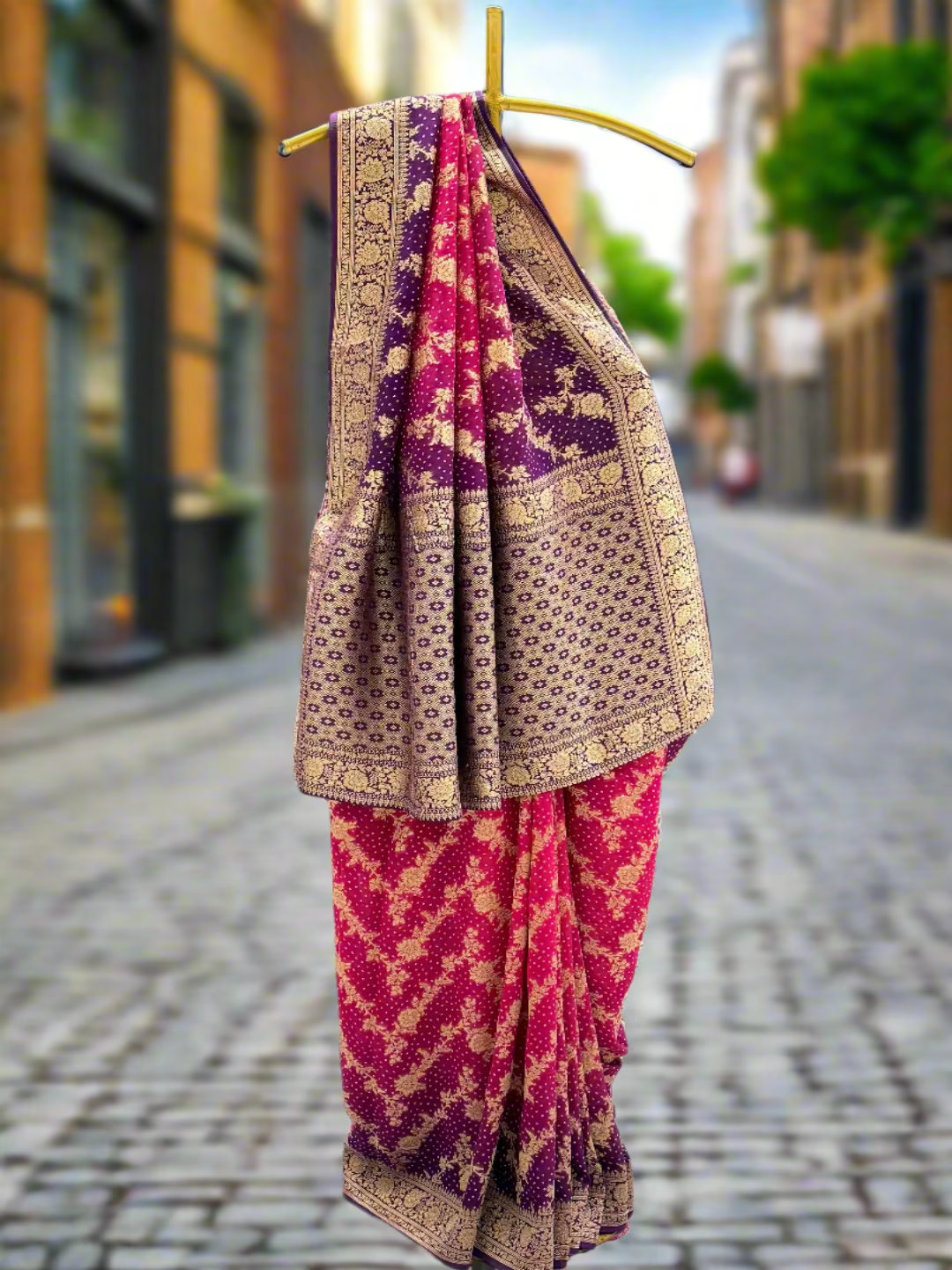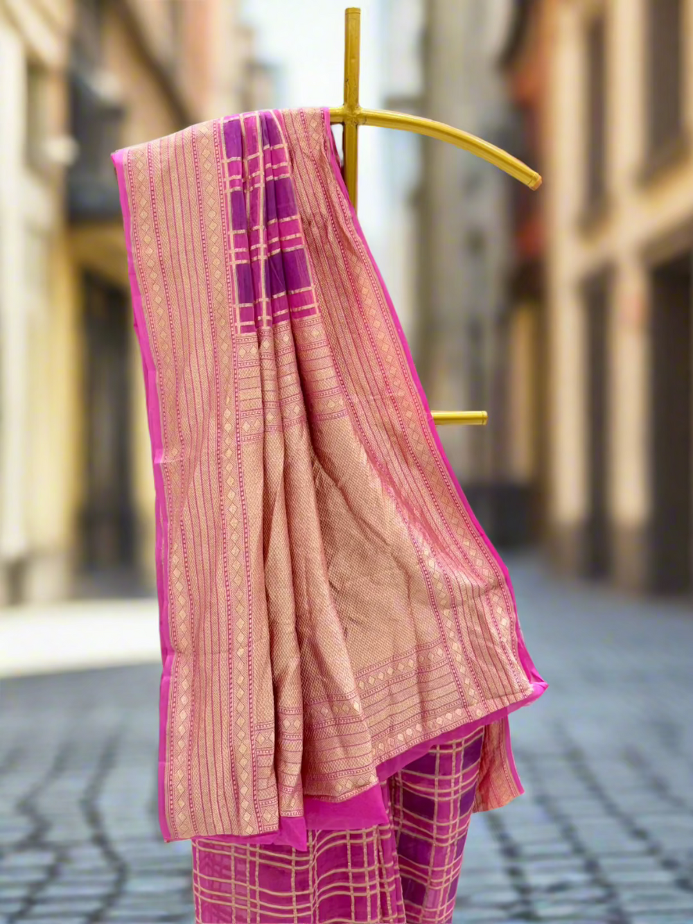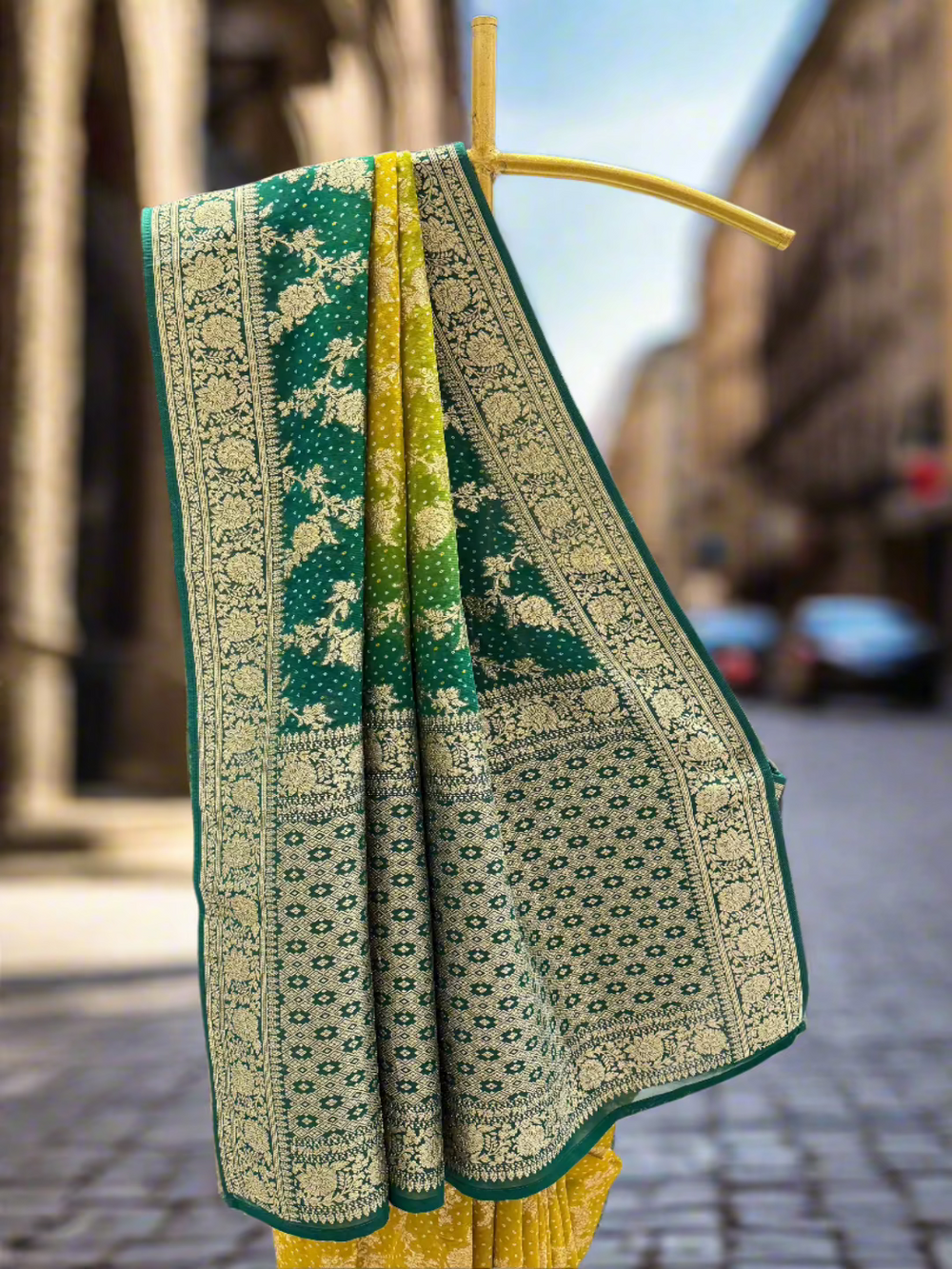 Two- Shade Gold Zari Resham Woven Banarasi Traditional Silk Saree