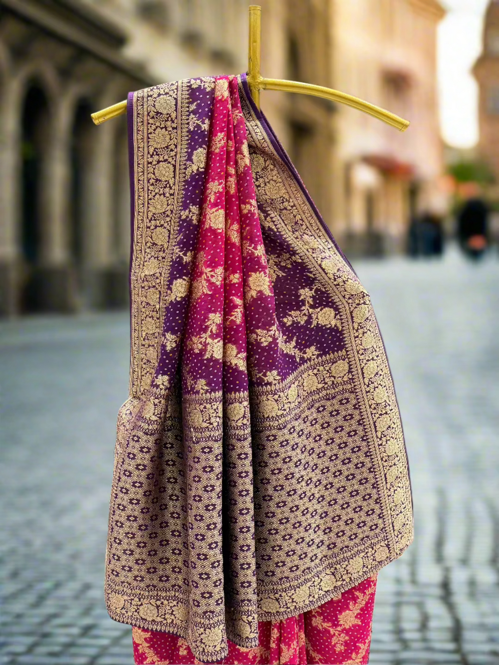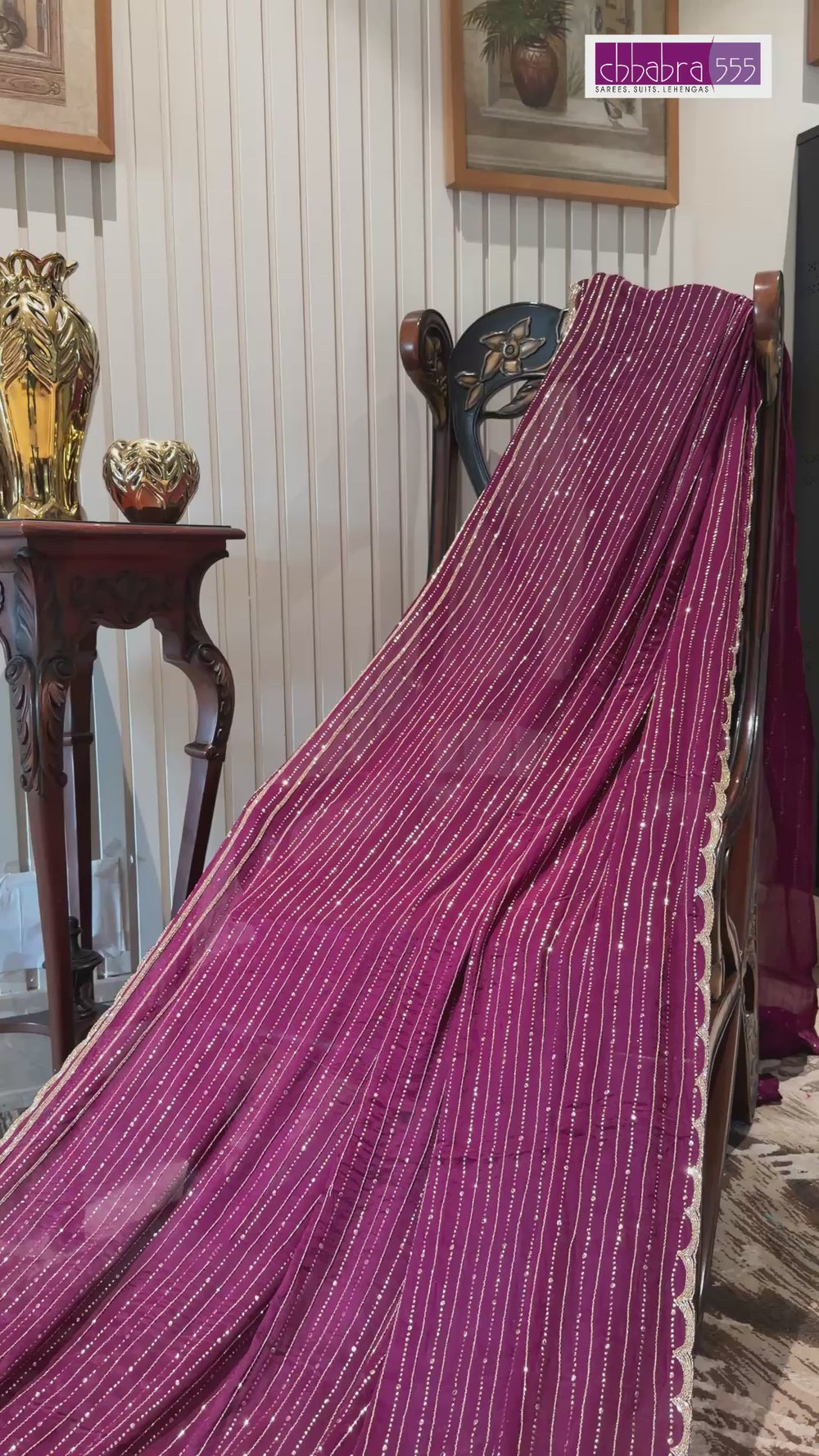 Magenta Pink Embroidered Georgette Kurta Sharara Set with Heavy Thread Zari Work
