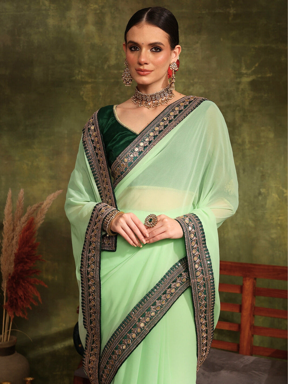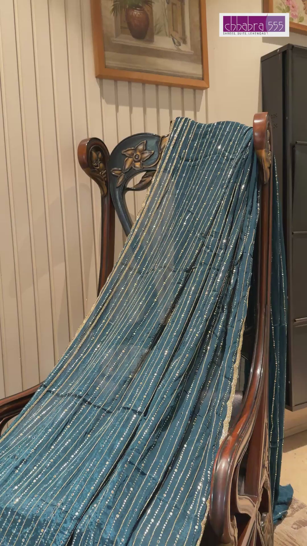 Sequinned Georgette Crop Top Palazzo Set with Shrug