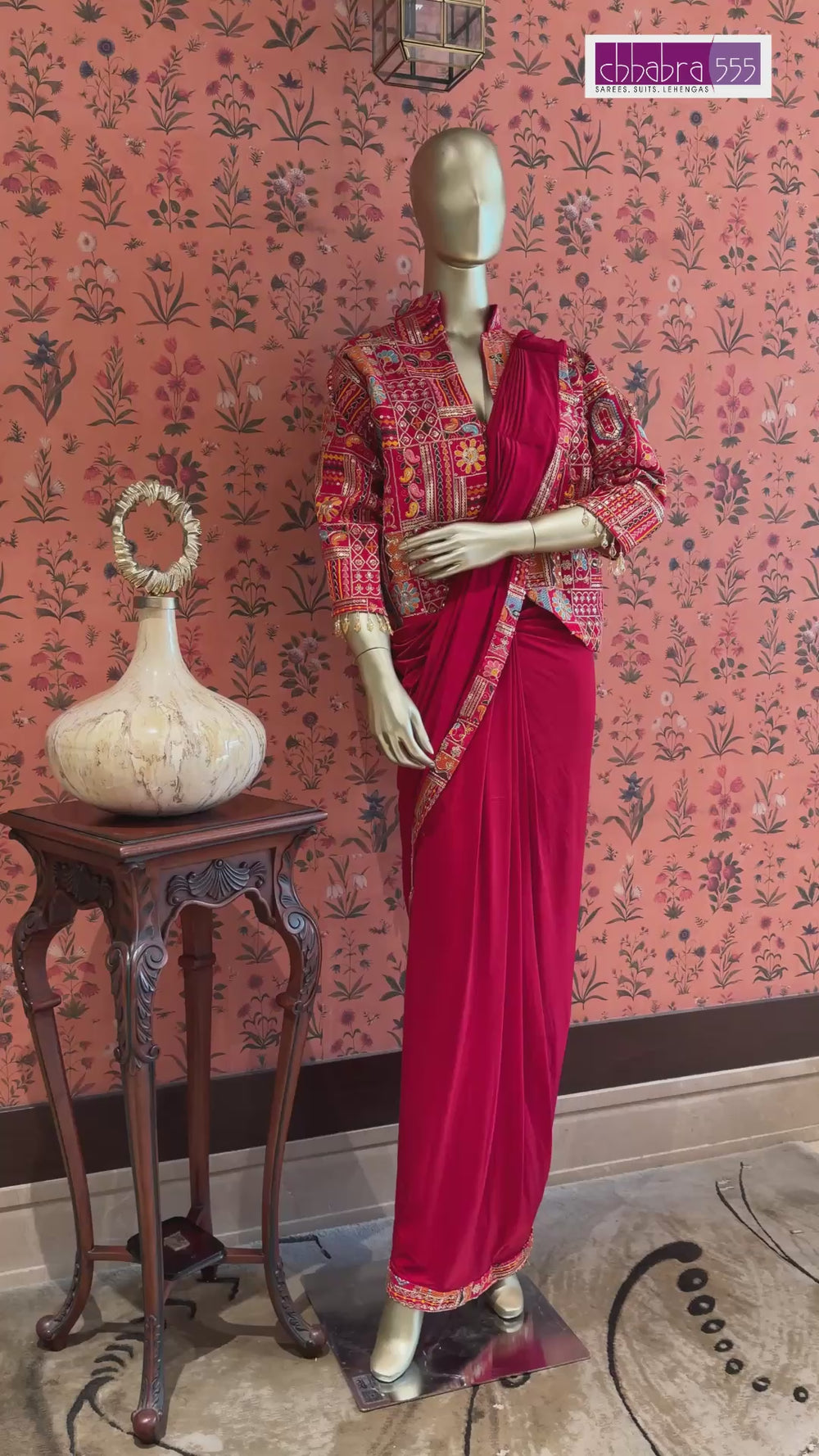 Chhabra 555 Rani Pink Sequin Embellished Crop-Top Palazzo Set with Jasmine style Cape Sleeves