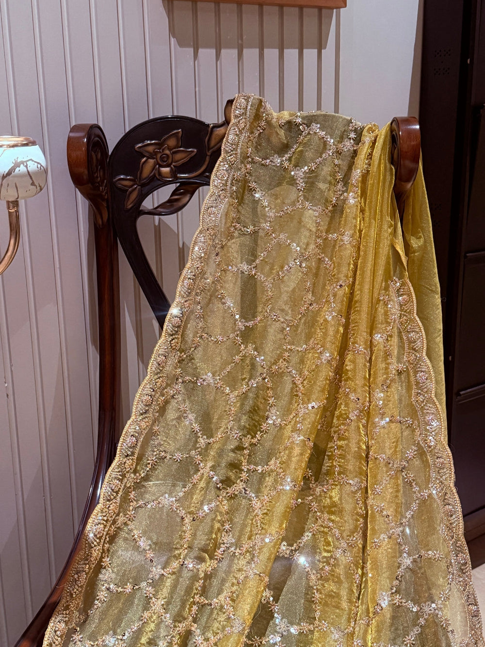 Chhabra 555 Two- Shade Gold Zari Resham Woven Banarasi Traditional Silk Saree in Jaal Pattern