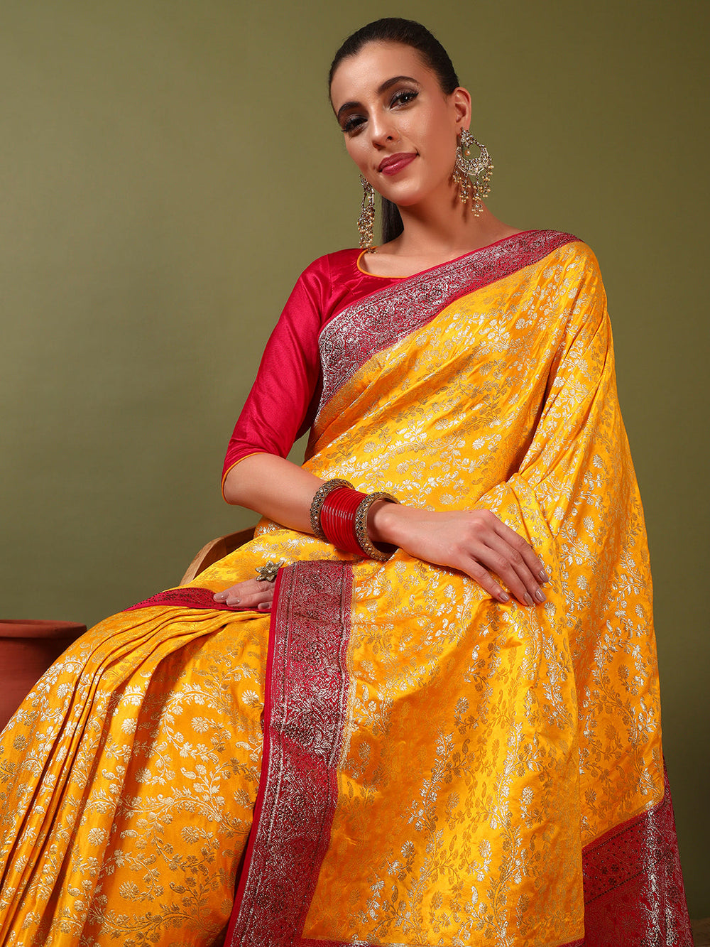 Two- Shade Gold Zari Resham Woven Banarasi Traditional Silk Saree