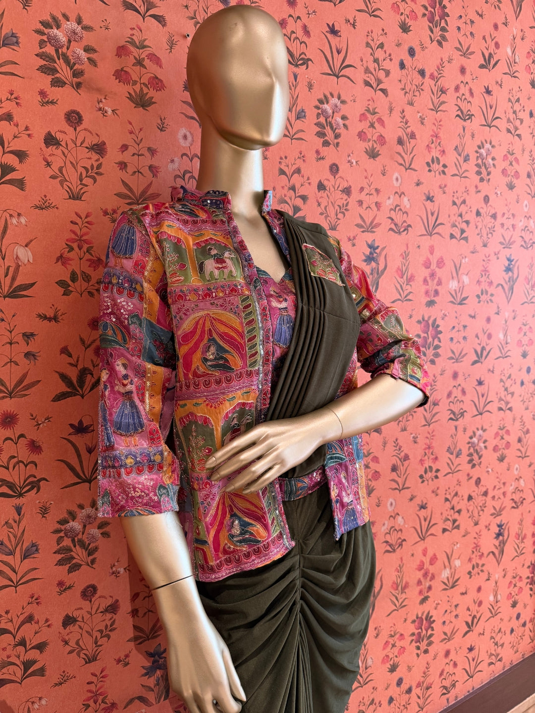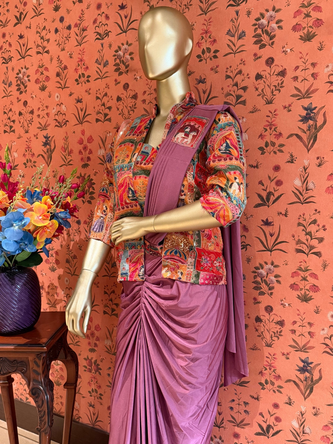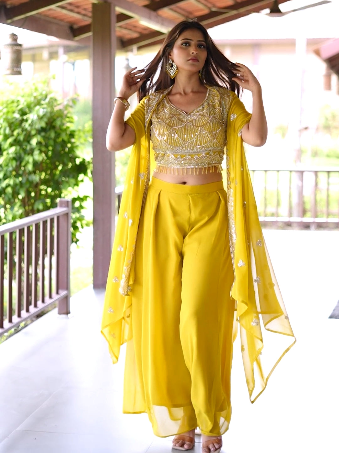Explore our range of Indo-Western jackets, lehenga with jackets, kurta-jacket sets, draped dresses with jackets, and palazzo sets with jackets, all crafted in luxurious fabrics and adorned with embroidery, mirror work, or minimal modern cuts. Perfect for bridesmaids, wedding guests, or anyone wanting to make a style statement with layered elegance.