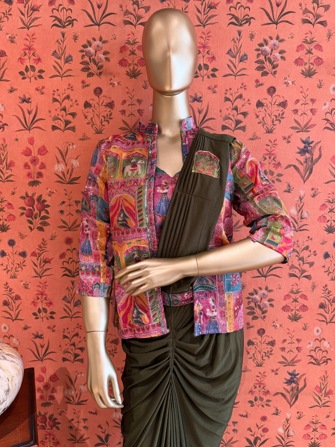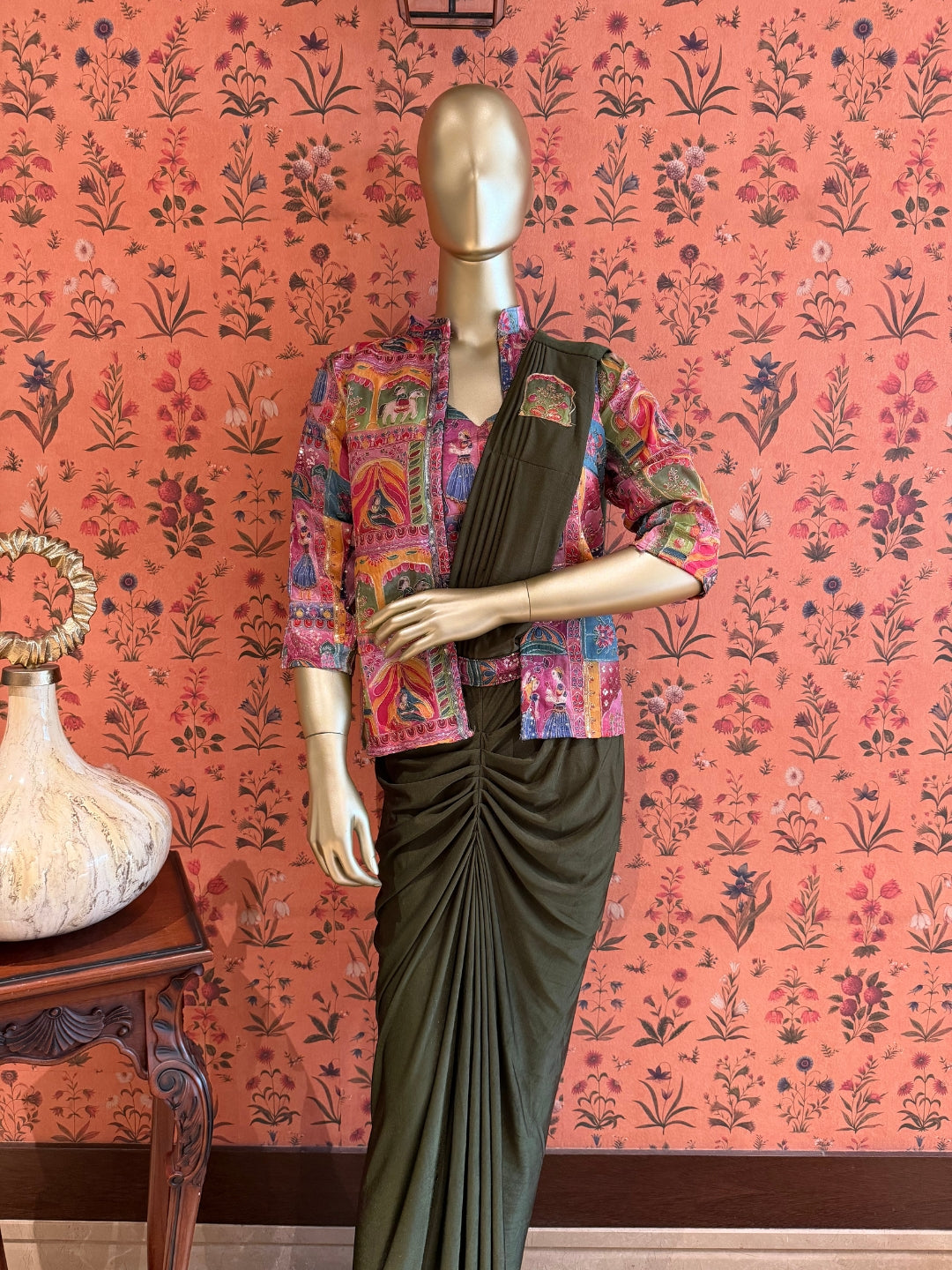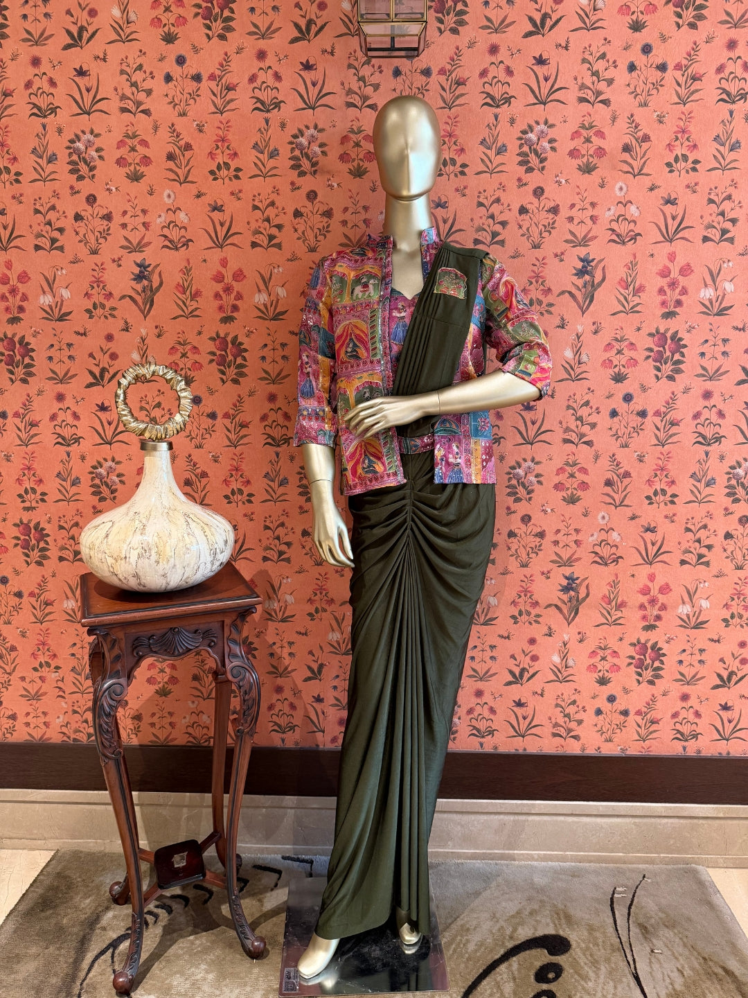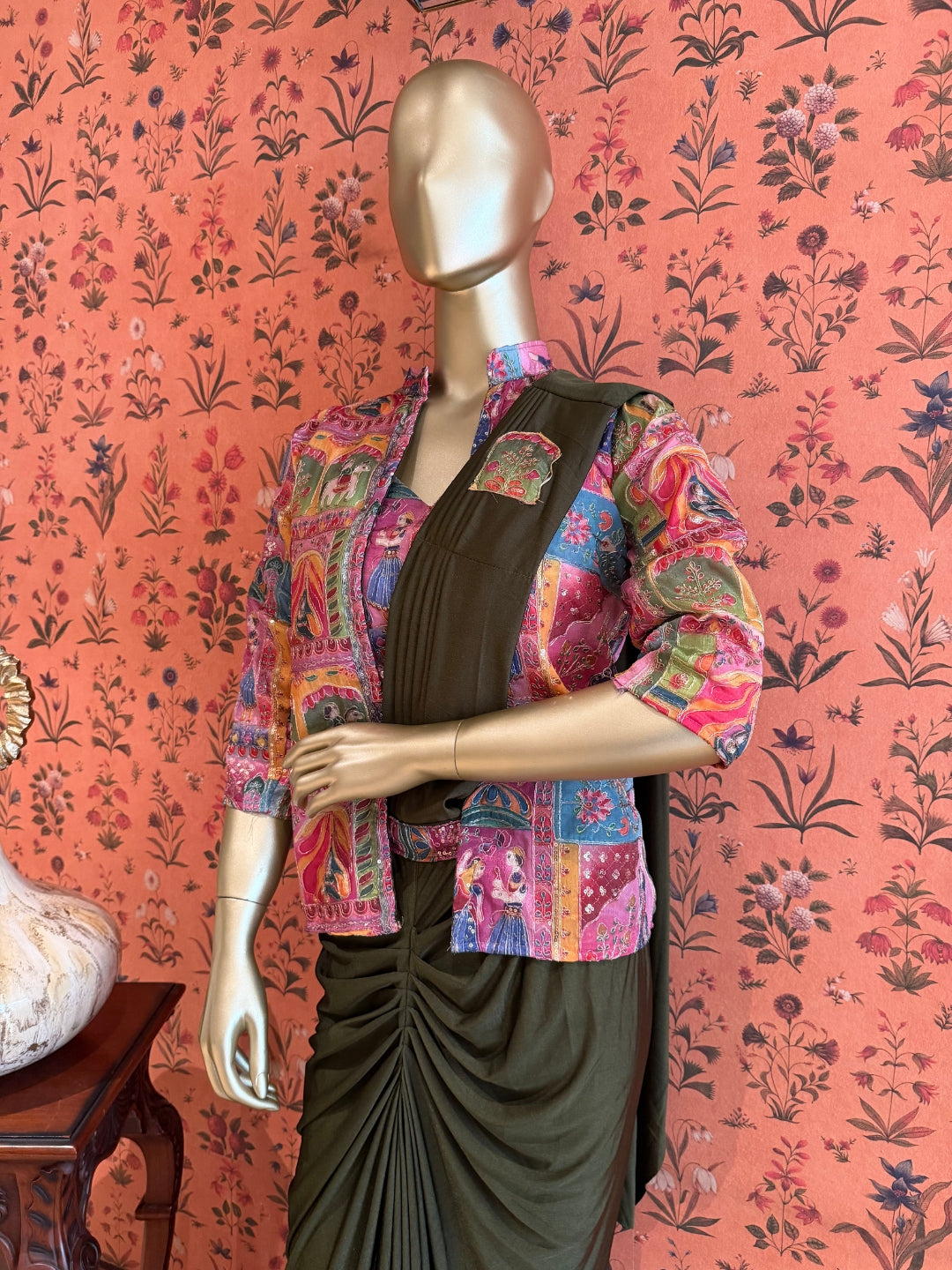 Explore our range of Indo-Western jackets, lehenga with jackets, kurta-jacket sets, draped dresses with jackets, and palazzo sets with jackets, all crafted in luxurious fabrics and adorned with embroidery, mirror work, or minimal modern cuts. Perfect for bridesmaids, wedding guests, or anyone wanting to make a style statement with layered elegance.